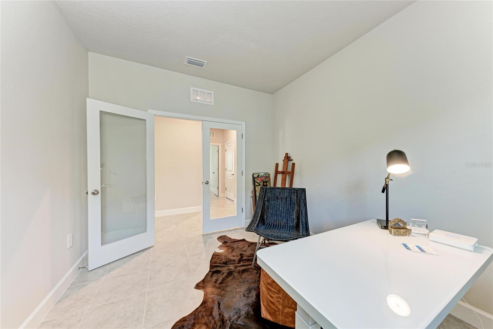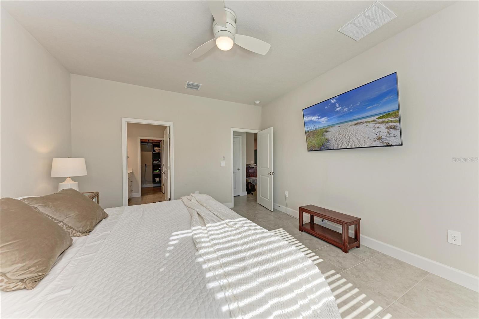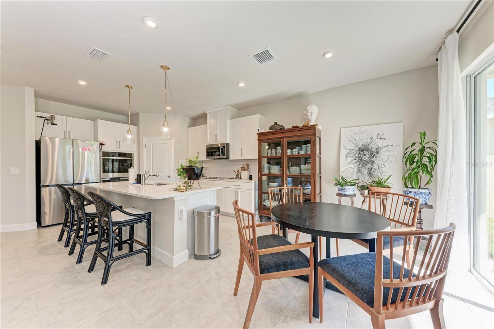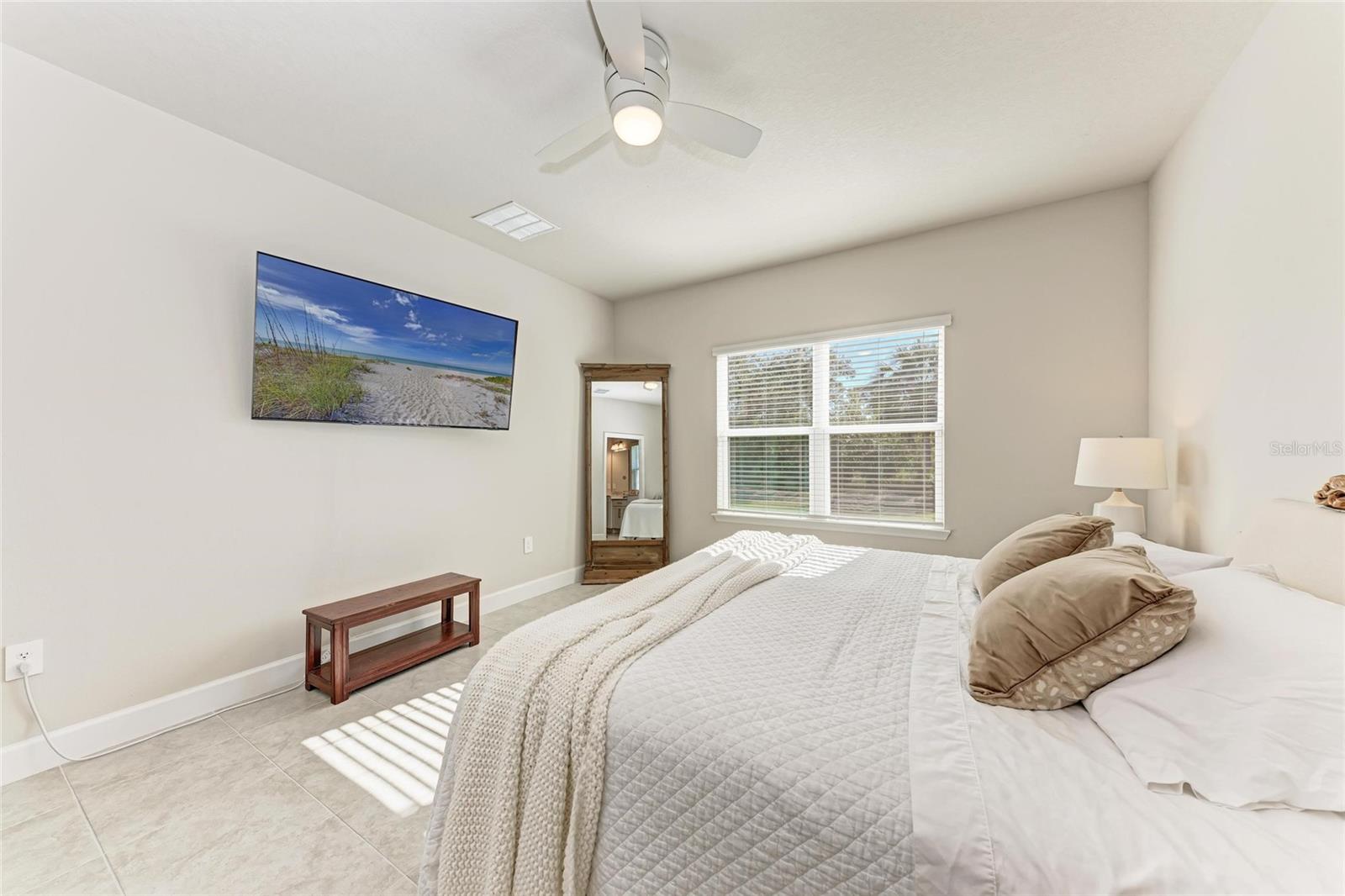 Welcome to this newly built Ryan model home, a perfect blend of modern design and relaxed Florida living in the sought-after West Port community. Constructed in 2024, this meticulously designed 3-bedroom, 2-bathroom residence with a 3-car garage offers all the advantages of new construction, paired with an inviting and functional layout. From the moment you arrive, the home's tasteful design is evident, featuring neutral colors, recessed lighting, and tile flooring throughout. The open-concept living, dining, and kitchen areas provide a seamless flow, all enhanced by recessed lighting for a bright and welcoming ambiance. The kitchen is equipped with modern appliances, including a Samsung refrigerator and a double oven, catering to all culinary needs. A spacious kitchen island adds additional seating and functionality, making it an ideal space for gatherings and everyday convenience. The adjacent dining area offers serene views of the backyard and direct access to the outdoors through sliding glass doors, allowing for effortless indoor-outdoor living. The primary bedroom serves as a tranquil retreat, featuring a generous walk-in closet and an en-suite bathroom with split vanities, ample cabinet space, above-mirror lighting, and a sleek walk-in shower. Two additional bedrooms provide plenty of space for family or guests, complete with upgraded closet storage for added convenience. A second full bathroom, mirroring the refined design of the primary bath, includes a double vanity and a tub with a shower. Additionally, a dedicated office space offers flexibility, easily adaptable to suit personal or professional needs. A separate laundry room, complete with a washer and dryer, enhances daily functionality, while the spacious three-car garage with an epoxy floor adds both modern appeal and practicality. At the back of the home, a covered and paved patio provides a peaceful outdoor space to relax and enjoy the surrounding tranquility. Adding to the appeal, this property is not in a flood zone and features a low HOA fee, offering both peace of mind and affordability. The location places Centennial Park and Recreation Center just minutes away, where residents can enjoy over 100 acres of outdoor and indoor activities, including a 50-meter competition lap pool, multi-purpose gymnasium with basketball and volleyball courts, pickleball, soccer fields, an 18-hole disc golf course, a fishing lake, playgrounds, and scenic nature trails. With Charlotte Harbor just a short drive away, along with nearby parks, shopping at Port Charlotte Town Center just three miles from home, and easy access to beautiful Gulf beaches, this exceptional property offers the perfect balance of convenience and embodies the best of Florida living.
