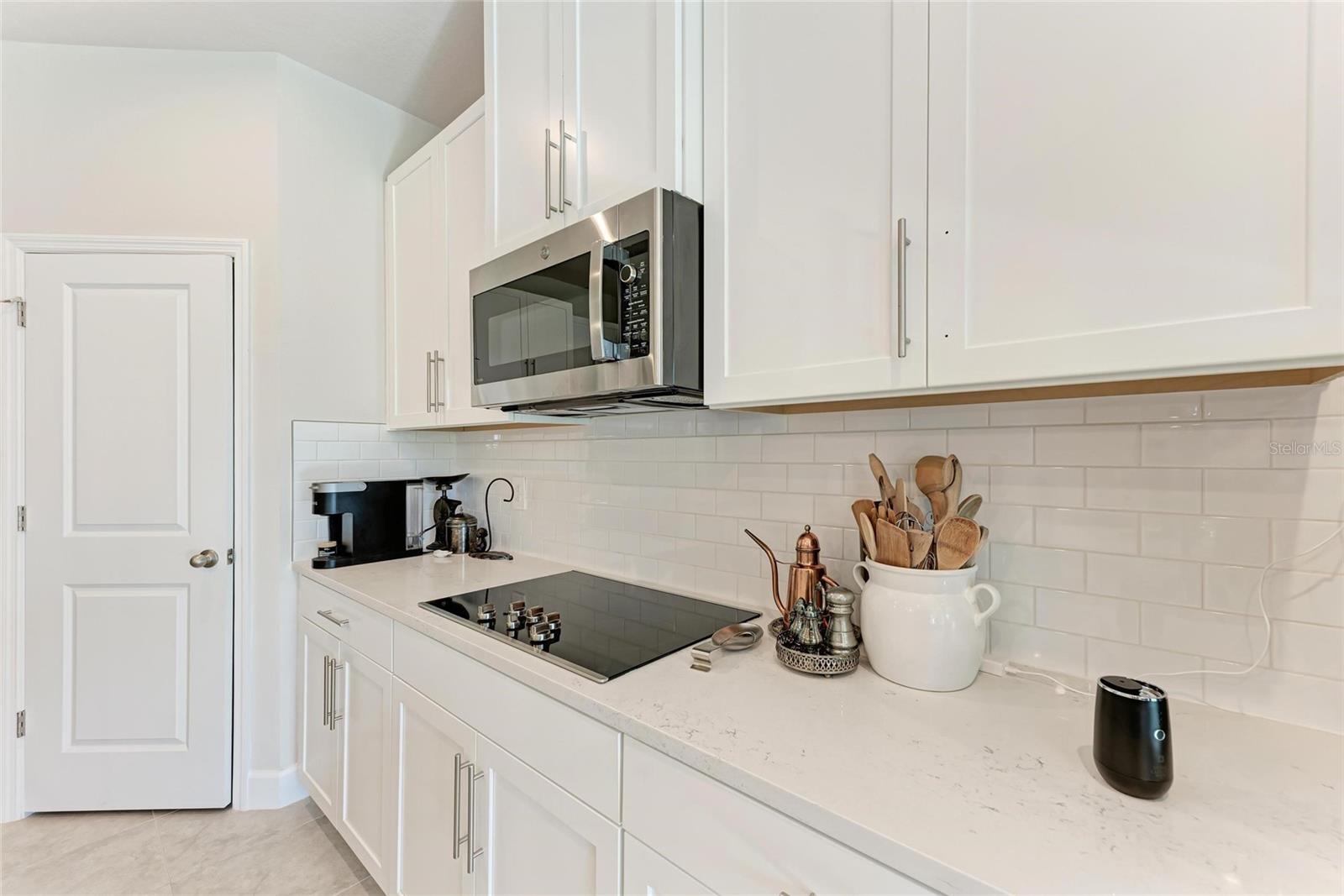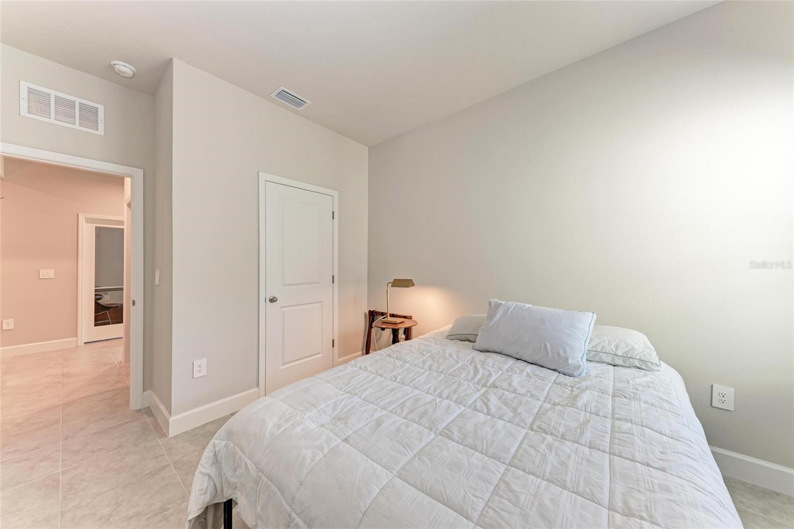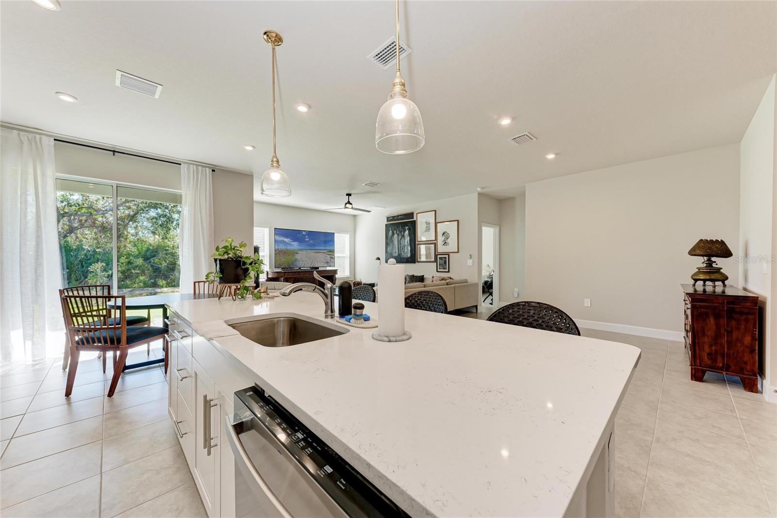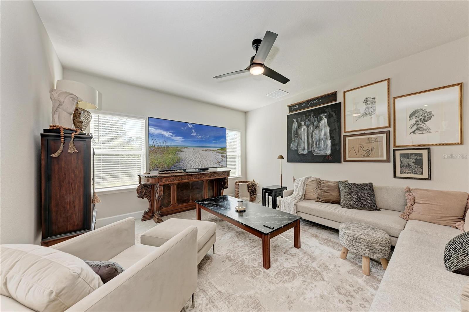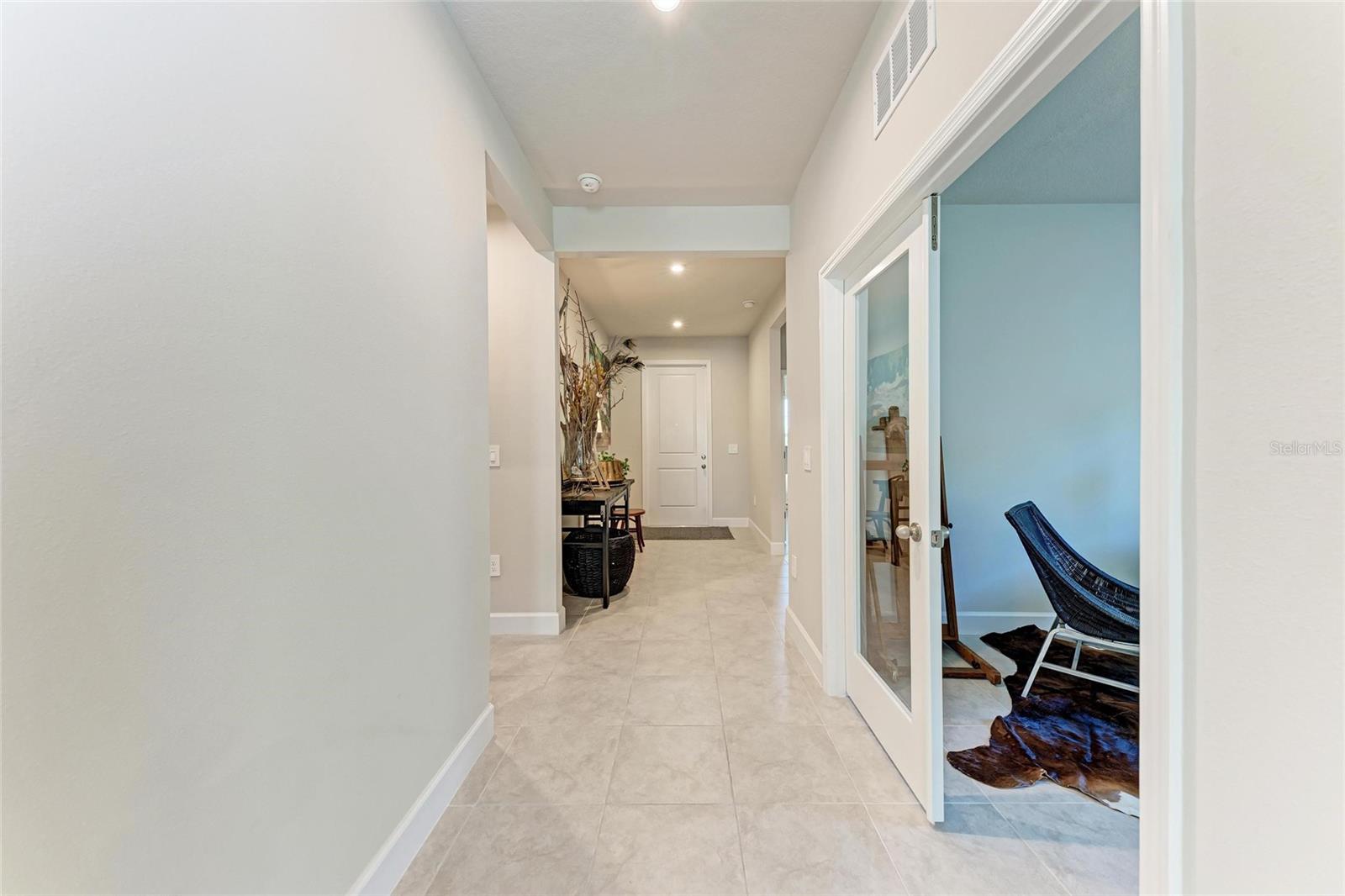 Welcome to this newly built Ryan model home, a perfect blend of modern design and relaxed Florida living in the sought-after West Port community. Constructed in 2024, this meticulously designed 3-bedroom, 2-bathroom residence with a 3-car garage offers all the advantages of new construction, paired with an inviting and functional layout. From the moment you arrive, the home's tasteful design is evident, featuring neutral colors, recessed lighting, and tile flooring throughout. The open-concept living, dining, and kitchen areas provide a seamless flow, all enhanced by recessed lighting for a bright and welcoming ambiance. The kitchen is equipped with modern appliances, including a Samsung refrigerator and a double oven, catering to all culinary needs. A spacious kitchen island adds additional seating and functionality, making it an ideal space for gatherings and everyday convenience. The adjacent dining area offers serene views of the backyard and direct access to the outdoors through sliding glass doors, allowing for effortless indoor-outdoor living. The primary bedroom serves as a tranquil retreat, featuring a generous walk-in closet and an en-suite bathroom with split vanities, ample cabinet space, above-mirror lighting, and a sleek walk-in shower. Two additional bedrooms provide plenty of space for family or guests, complete with upgraded closet storage for added convenience. A second full bathroom, mirroring the refined design of the primary bath, includes a double vanity and a tub with a shower. Additionally, a dedicated office space offers flexibility, easily adaptable to suit personal or professional needs. A separate laundry room, complete with a washer and dryer, enhances daily functionality, while the spacious three-car garage with an epoxy floor adds both modern appeal and practicality. At the back of the home, a covered and paved patio provides a peaceful outdoor space to relax and enjoy the surrounding tranquility. Adding to the appeal, this property is not in a flood zone and features a low HOA fee, offering both peace of mind and affordability. The location places Centennial Park and Recreation Center just minutes away, where residents can enjoy over 100 acres of outdoor and indoor activities, including a 50-meter competition lap pool, multi-purpose gymnasium with basketball and volleyball courts, pickleball, soccer fields, an 18-hole disc golf course, a fishing lake, playgrounds, and scenic nature trails. With Charlotte Harbor just a short drive away, along with nearby parks, shopping at Port Charlotte Town Center just three miles from home, and easy access to beautiful Gulf beaches, this exceptional property offers the perfect balance of convenience and embodies the best of Florida living.