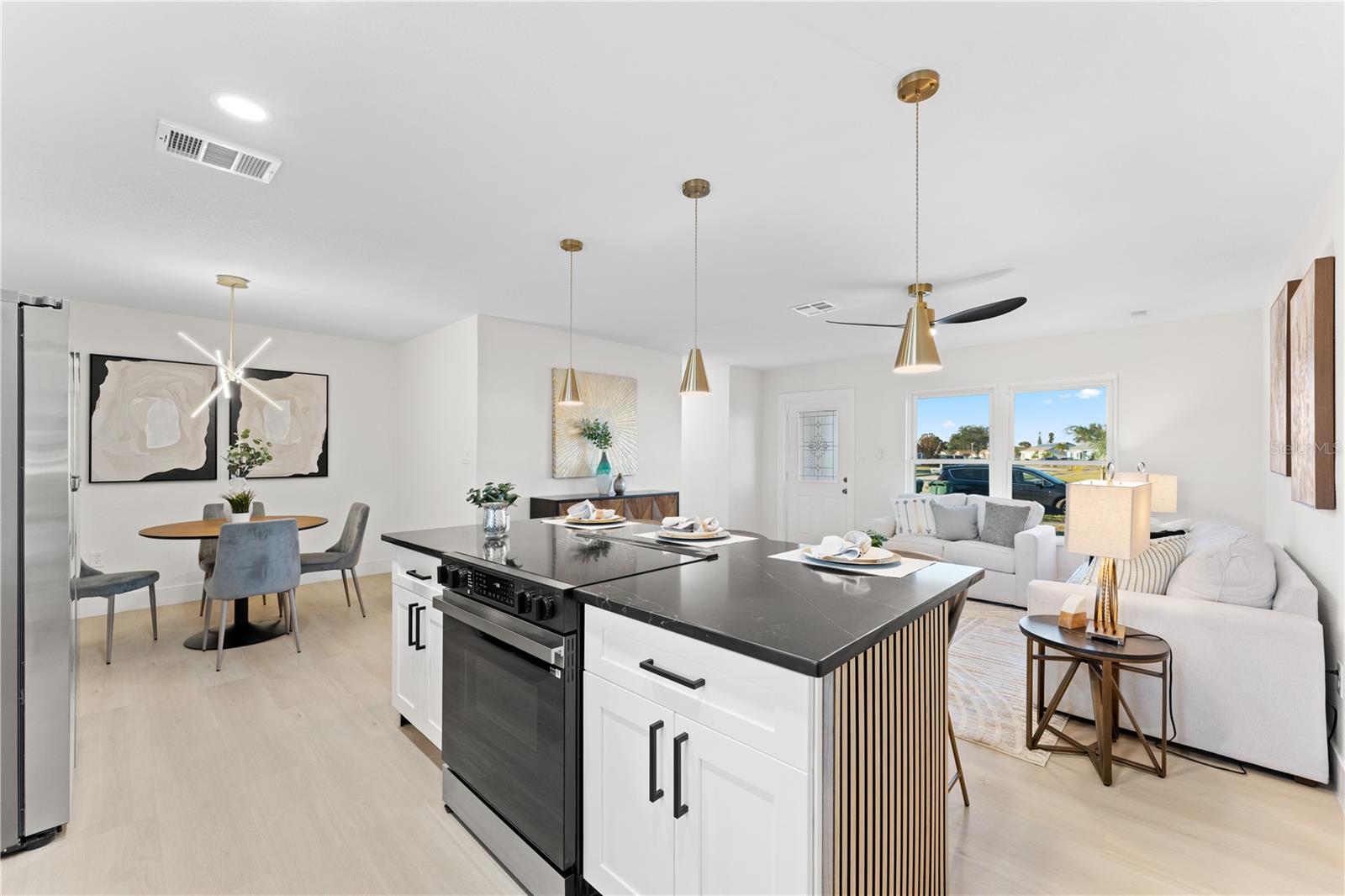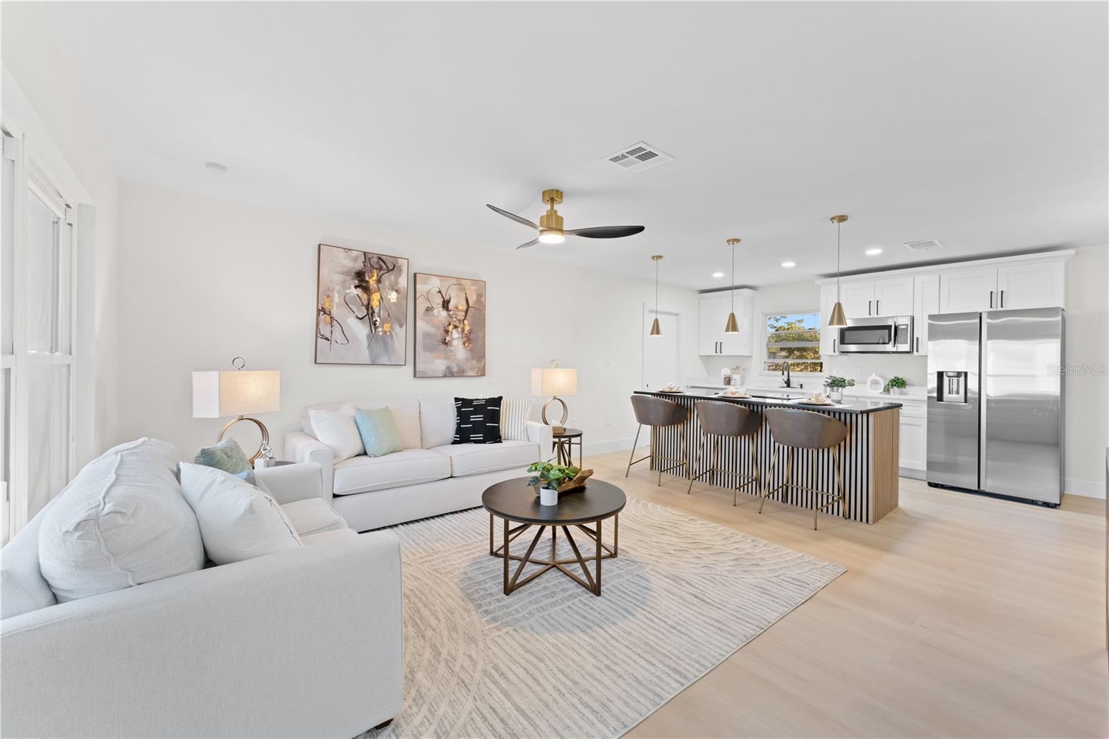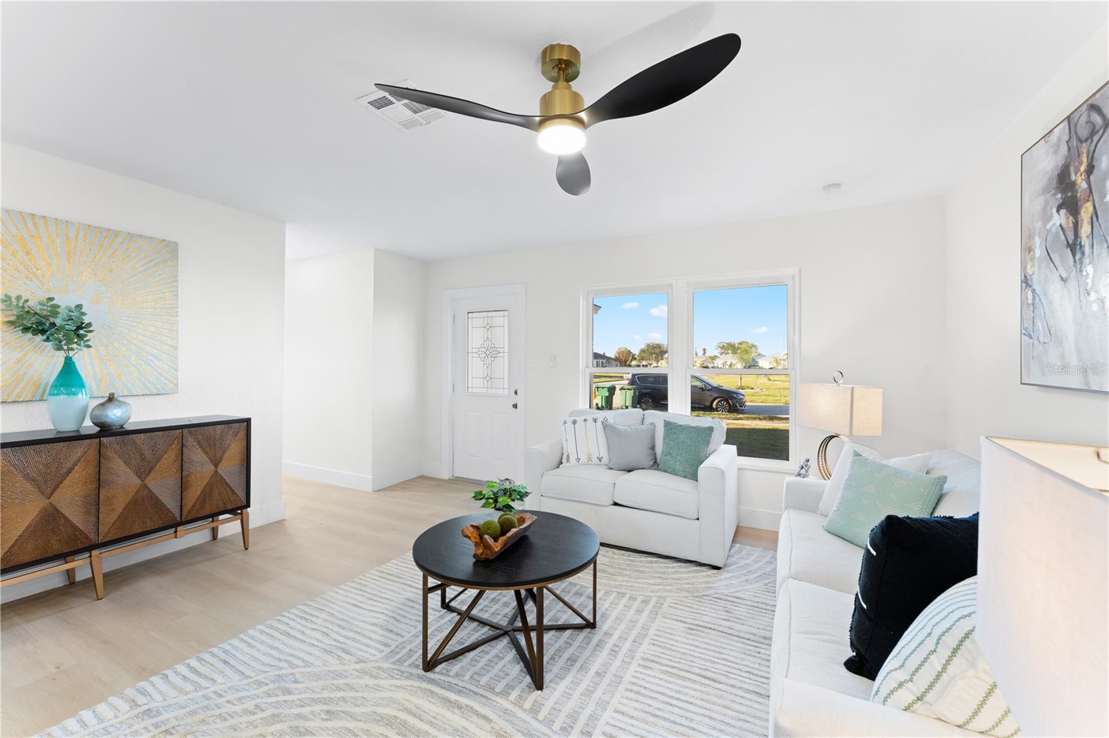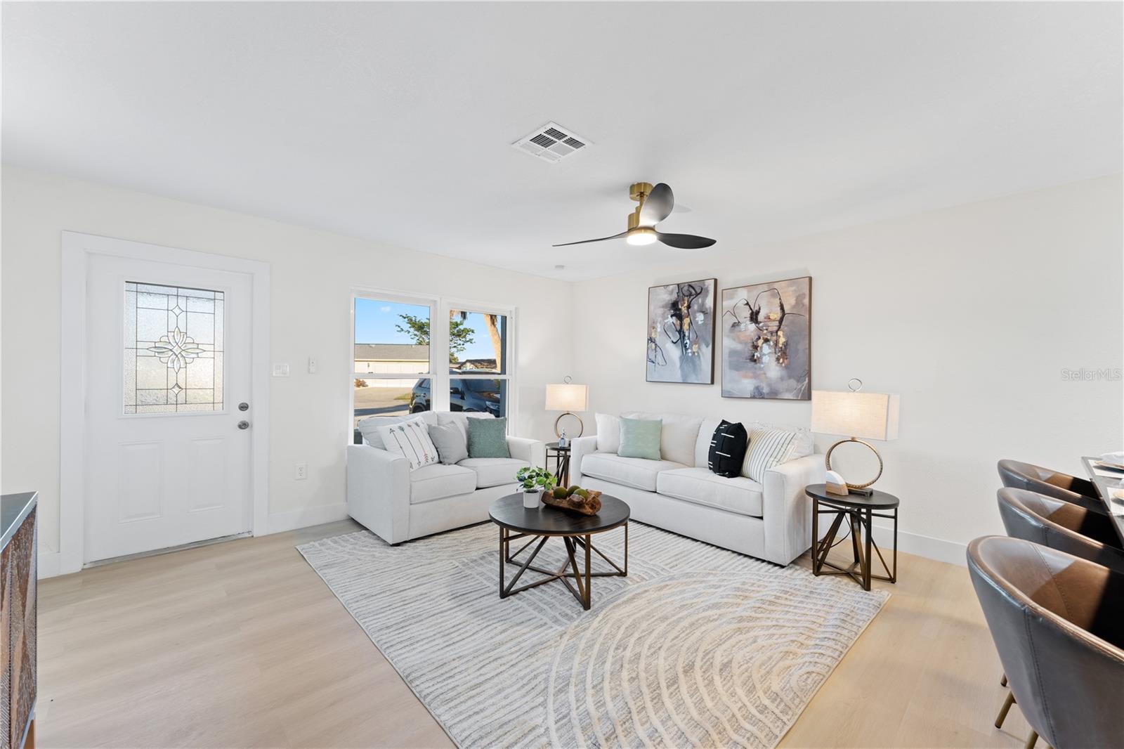 Welcome to your Florida dream home—where style meets comfort in every corner! This stunning, renovated 3-bedroom, 2-bathroom gem with flex space is ready for you to move in and start living your best life! With brand-new upgrades throughout, this home radiates modern luxury and style. Step inside to discover sleek, luxury vinyl flooring that flows through every room, accented by fresh baseboards and a coastal NEW interior paint scheme. Modern lighting, contemporary ceiling fans, and abundant recessed lights create a bright, inviting atmosphere that feels like new construction! The heart of the home and a chef’s dream kitchen that wows with all-new, high-end appliances, a spacious sink, and efficient disposal. Enjoy sleek countertops, custom cabinetry, that ties the whole look together! Even the garage is fresh and ready with epoxy flooring and newly painted interiors, a perfect combination of form and function. This home goes beyond aesthetics, featuring a NEW HVAC 2023. With a newer 2-year-old roof and many details inside freshened up. Updated windows (some impact) you can look forward to years of easy maintenance. Finally, step outside to a tastefully landscaped fenced yard with mature large trees and refreshed new exterior paint with a charming, eye-catching front door. This home is more than just move-in ready; it’s a modern sanctuary waiting for you to call it your own! Within minutes of grocery store, home improvement, restaurants and 15 minutes from the beach.