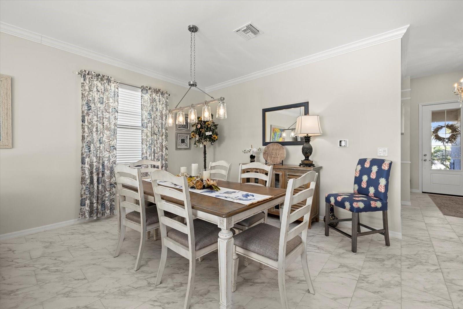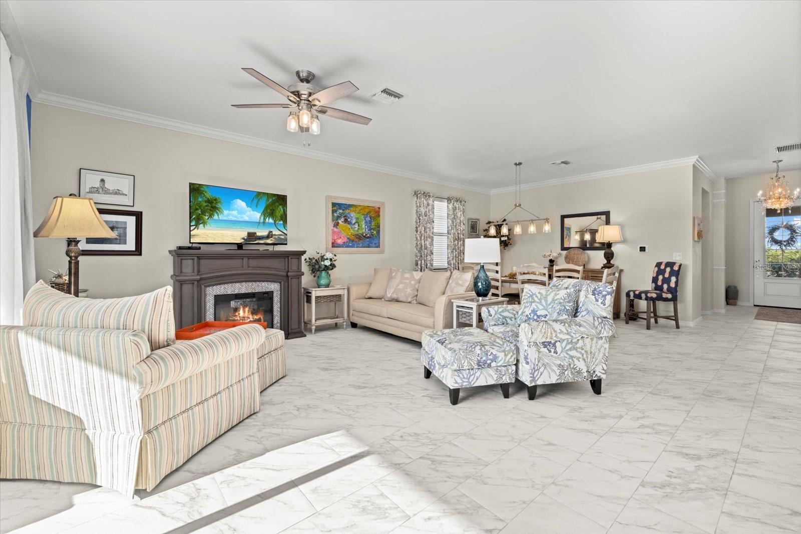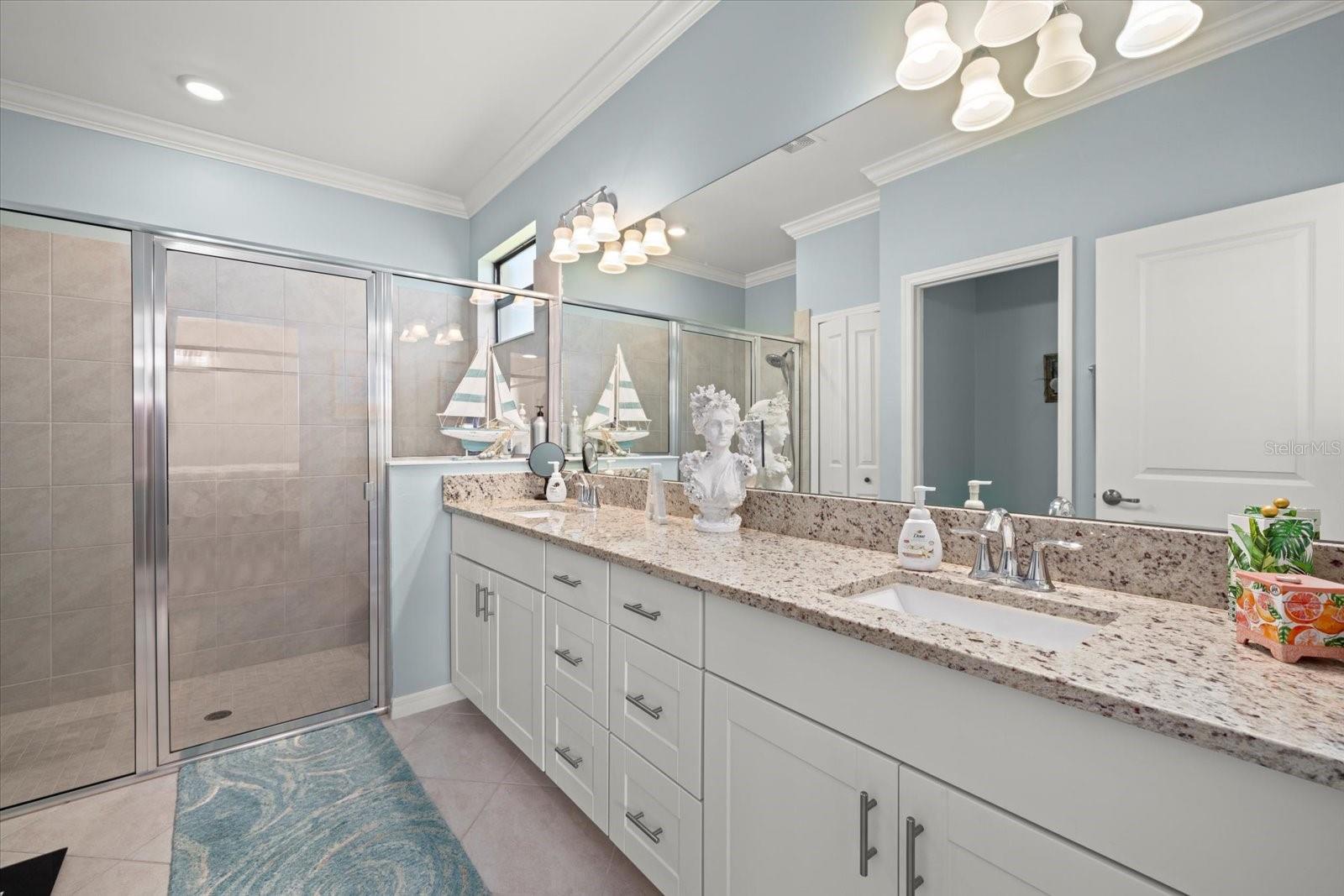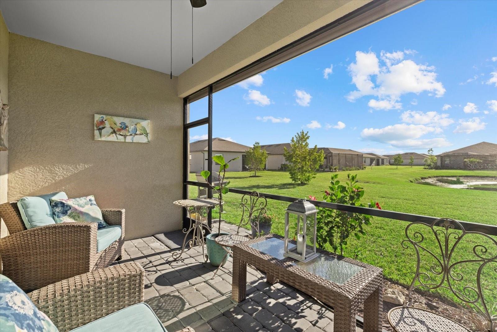 PRICE ADJUSTMENT!!! Beautifully update and upgraded newer 3 bedroom, 3 full baths home located in the desirable gated community of Biscayne Landing. This home is located on a wider, open side yard lot with lake water views behind. Approaching the covered entrance way, upon entering the foyer, you recognize the attention to detail and the light, bright feeling welcome you in. The home has an upgraded porcelain tile throughout the home except for the primary bedroom. The main living area of living, dining and kitchen all have high ceilings, crown molding and custom woodwork. The living area opens on to the screened and covered lanai by way of sliders that provide warm light and water views. The kitchen has an island dividing the area that offers a great sitting space for breakfast or a quick meal. The countertops are all granite and has an upgraded backsplash. The kitchen has a corner pantry, accent high cabinet lighting, ample prep and cooking space, custom lighting over the island, and to top it all off, an under counter (built-in) wine cooler. Perfect for the family chef. The home has a large primary bedroom and an ensuite bathroom. The bedroom has two walk-in closets, luxury carpet, crown molding and custom woodwork. The ensuite bath has a large double sink vanity with granite countertop and a spacious walk-in tiled shower, a commode closet and a linen closet. The split floor plan has two bedrooms and two full baths. The second bedroom has an ensuite bath with a single sink vanity and a tub/shower combination. The third bedroom has a full bath with single sink vanity and a tub/shower combination right outside of the room. The home has a laundry room with full size washer and dryer and overhead cabinets. The laundry room exits to the two-car garage with a deep well sink for those messy projects. The home has installed hurricane protection with accordion shutters on the windows and remote operated roll down shutters on the front door and the lanai. The front door has pull slide screen door for allowing those FL breezes to flow through. The community has a clubhouse with a fitness room, a heated swimming pool with sun deck, tennis and pickleball courts. The HOA does lawn care and basic cable and internet are provided. No CDD. No Flood Zone. The community is located close to shopping, restaurants, golf courses, local beaches and world class fishing, baseball spring training facilities, and entertainment venues. And convenient to multiple airports for travel. You need to see this home to appreciate all its beauty.