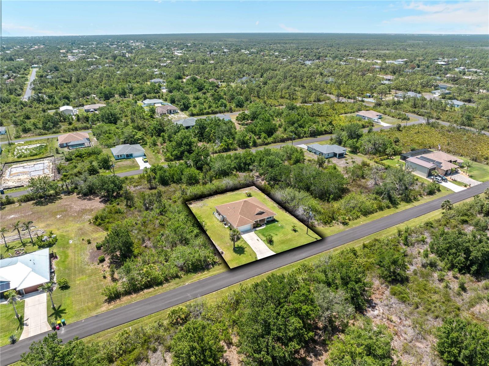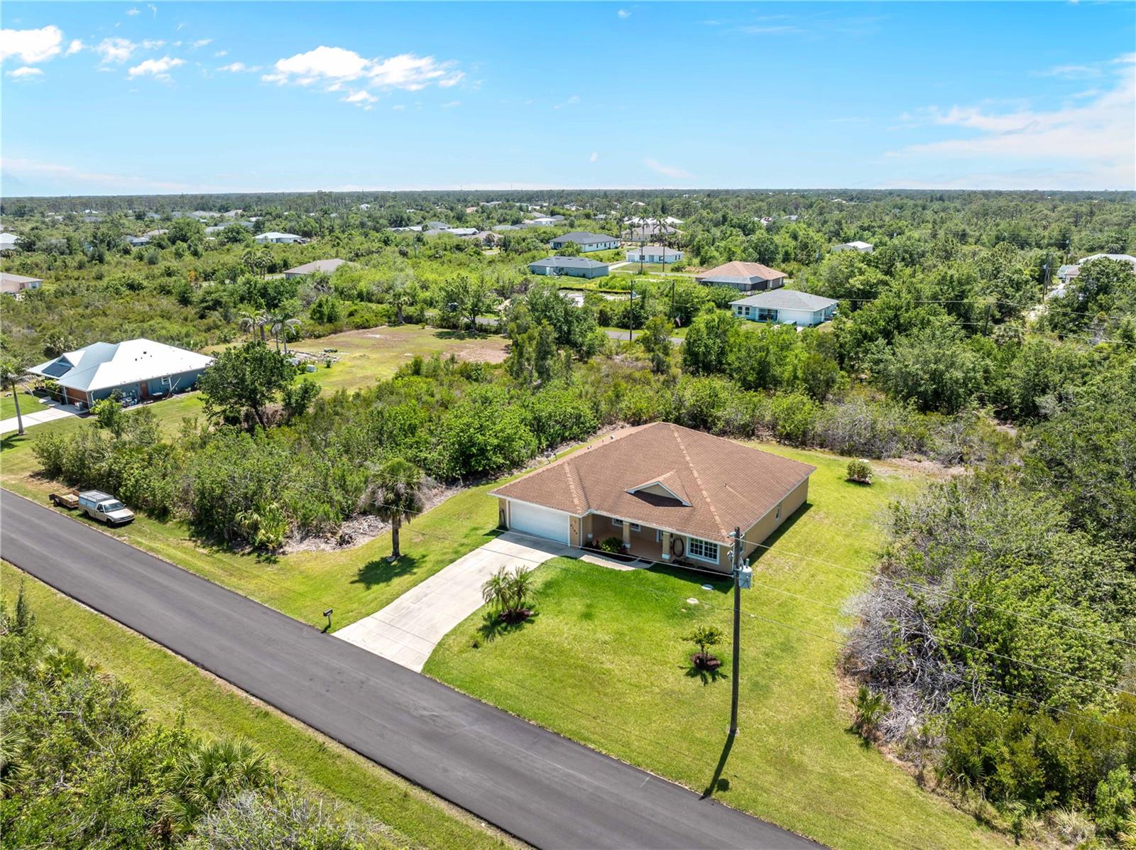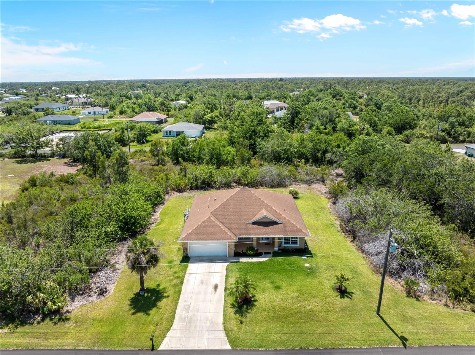 Welcome to 6199 Stamp Street in sunny Port Charlotte. Where privacy, space, and proximity to coastal charm come together beautifully. Step inside and you’ll immediately notice the wide-open floor plan, where the kitchen flows seamlessly into the living room, perfect for entertaining, gathering with family, or simply enjoying the openness of your space. This inviting home features three bedrooms plus a very large additional flex space, offering endless possibilities, whether you need a home office, guest room, media space, or creative studio, this room is ready to adapt to your lifestyle. You'll love the gorgeous front and back porches, both rare gems in Florida homes. Enjoy your morning coffee on the front porch watching sunrise or relax in the privacy of your back porch, surrounded by nature as you watch the sunset, with no homes directly built around you, the peaceful setting adds to the charm and comfort of this property. Ideally located just 15 to 20 minutes from the stunning Gulf of Mexico beaches, including Englewood Beach, Stump Pass Beach State Park, and the world-renowned shores of Boca Grande. Sports fans will appreciate being near CoolToday Park, home to the Atlanta Braves’ Spring Training, and Charlotte Sports Park, where the Tampa Bay Rays train, all just a short drive away. Whether you're looking for a full-time home, a seasonal retreat, or an investment opportunity, this property offers the space, privacy, and prime location you’ve been searching for.