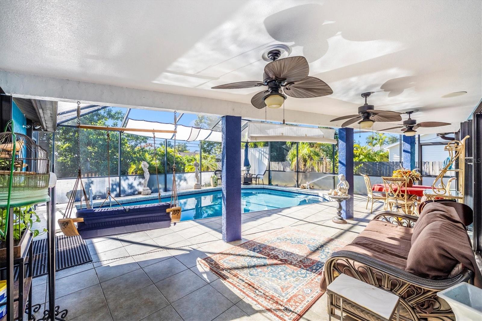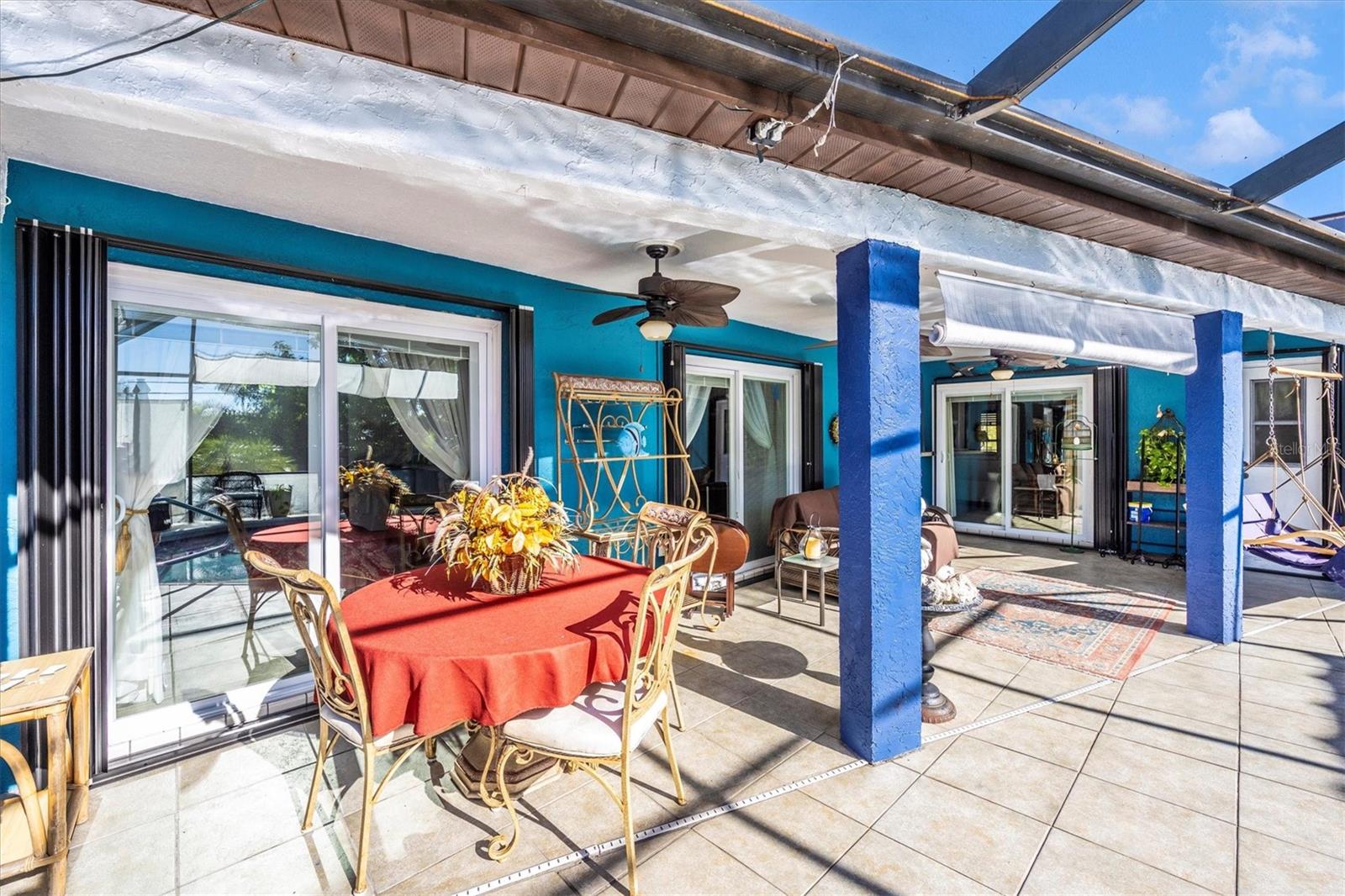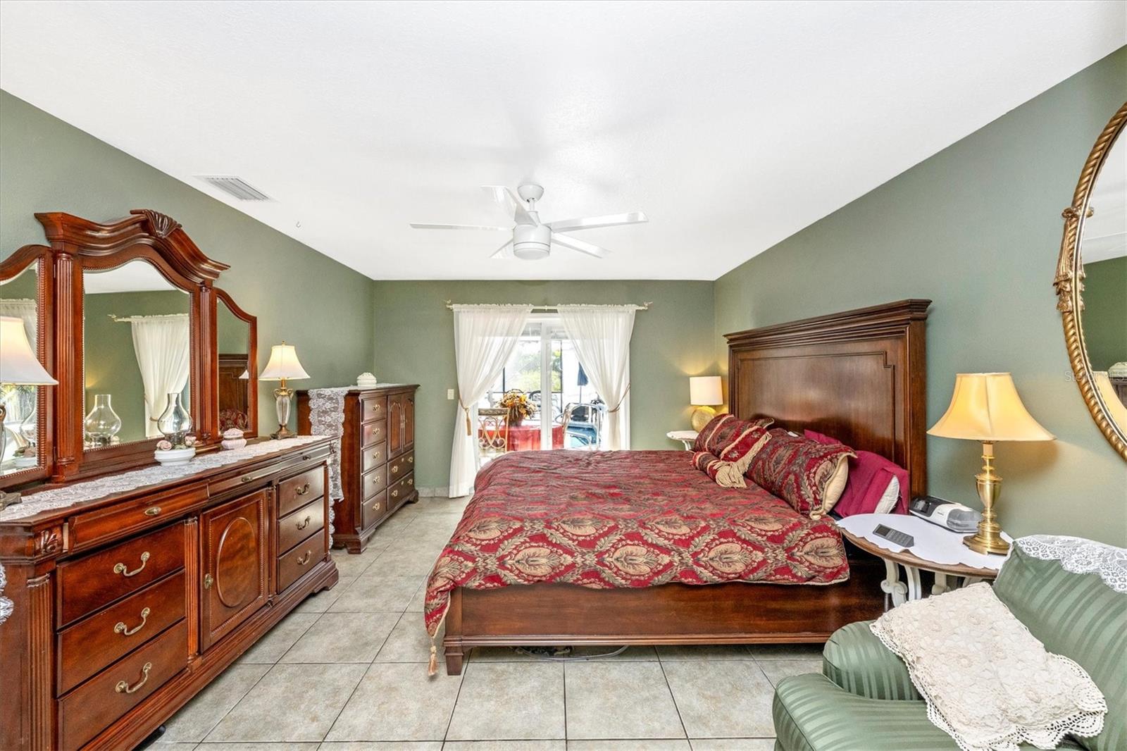 Step into this beautifully remodeled 3-bedroom, 2-bath, pool home that truly has it all! Major upgrades include: 50-Year Roof (installed June 2019), 3-Ton AC Unit, Double-Pane Windows & Sliding Glass Doors (2018), Fully Resurfaced Pool (2023), Hurricane Shutters (2023), Hurricane Rated Garage Door (2023), Surround Sound System (inside and in lanai), Fresh Exterior Paint (2025), and Solar Panels (2021). Inside, you'll find 18" tile flooring throughout, separate living spaces (east & west wing) with large owner's suite, kitchen has stainless steel appliances (dishwasher 2025) & granite counter tops. Access from pool area directly to primary suite, great room and hallway bathroom. Outside, enjoy your own private oasis a 20x15 Shed (equipped with electricity), sprinkler irrigation system, security cameras, and professional landscaping, epoxy garage floor. Convenient Location, close to schools and shopping! Don’t miss this move-in ready home—designed for comfort, style, and true Florida living!