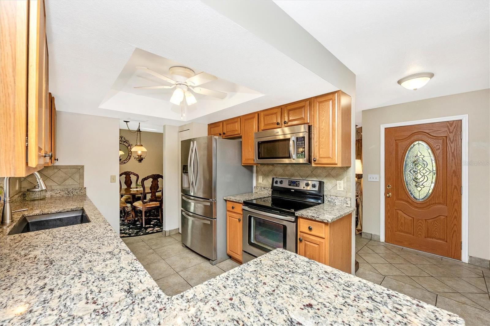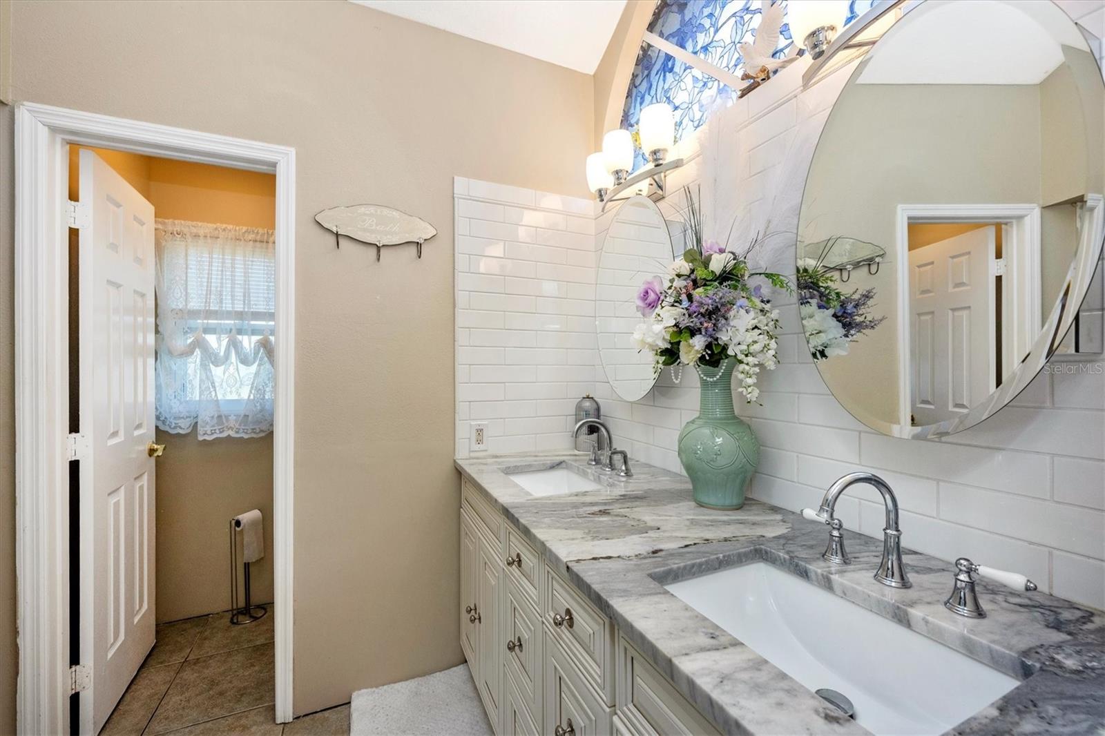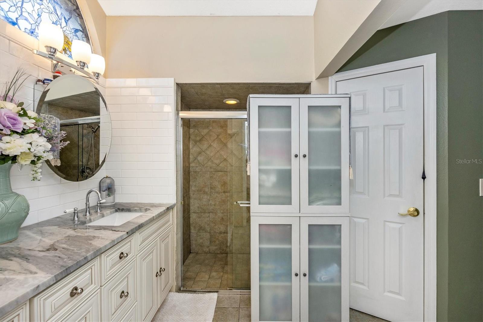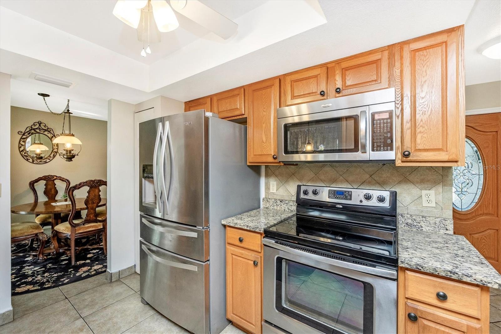 Step into this beautifully remodeled 3-bedroom, 2-bath, pool home that truly has it all! Major upgrades include: 50-Year Roof (installed June 2019), 3-Ton AC Unit, Double-Pane Windows & Sliding Glass Doors (2018), Fully Resurfaced Pool (2023), Hurricane Shutters (2023), Hurricane Rated Garage Door (2023), Surround Sound System (inside and in lanai), Fresh Exterior Paint (2025), and Solar Panels (2021). Inside, you'll find 18" tile flooring throughout, separate living spaces (east & west wing) with large owner's suite, kitchen has stainless steel appliances (dishwasher 2025) & granite counter tops. Access from pool area directly to primary suite, great room and hallway bathroom. Outside, enjoy your own private oasis a 20x15 Shed (equipped with electricity), sprinkler irrigation system, security cameras, and professional landscaping, epoxy garage floor. Convenient Location, close to schools and shopping! Don’t miss this move-in ready home—designed for comfort, style, and true Florida living!