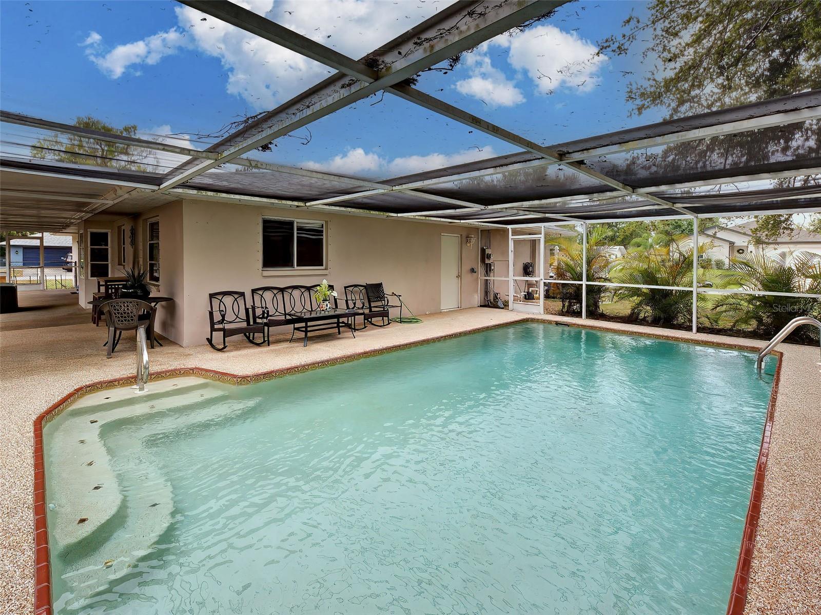 Lovely 2-bedroom, 2-bath, 2 CAR GARAGE and POOL home located in vibrant Port Charlotte, Florida! Situated on a desirable CORNER LOT, this well-maintained SPLIT FLOOR PLAN home offers added privacy and includes a FENCED-IN DOG RUN—perfect for your furry friend. Enjoy peace of mind with a new ROOF INSTALLED in 2023 and the whole-house was REPLUMBED in 2019. There is new LVP flooring, STAINLESS STEEL APPLIANCES in the updated kitchen and the both bathrooms have been updated. Have lots of fun basking in the sun in your large pool. Best of all, This home is in an X ZONE and there are NO HOA or CDD fees! Whether you’re looking for a full-time residence or a seasonal retreat, this home is a wonderful place to enjoy the Florida lifestyle. Call today to schedule your private showing! Sold turn key furnished.