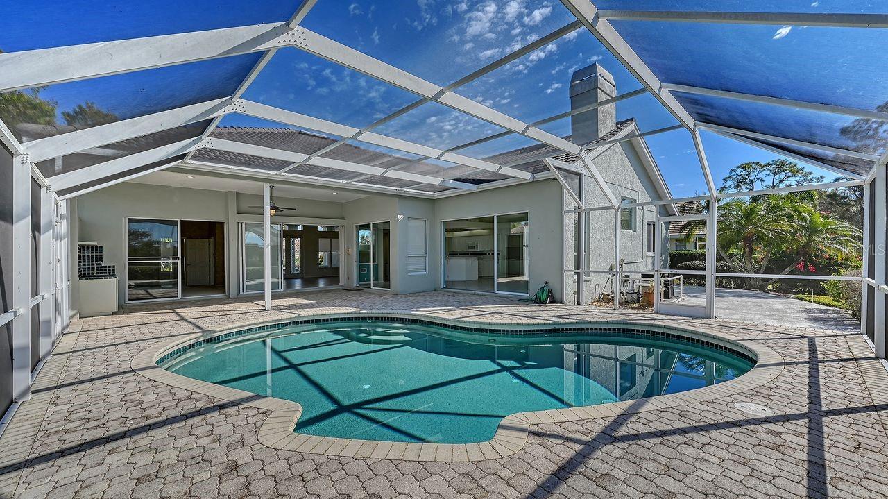 Located in the RESORT-STYLE COMMUNITY of Riverwood, this CUSTOM-BUILT ARTHUR RUTENBERG HOME offers a standout combination of quality craftsmanship, relaxed elegance and true Florida living. Positioned on a PEACEFUL CUL-DE-SAC with a PRIVATE AND QUIET setting, the home welcomes you with classic FRENCH DOORS, HIGH CEILINGS THROUGHOUT and an open design filled with BEAUTIFUL NATURAL LIGHT. Thoughtfully designed for both everyday comfort and effortless entertaining, the living space features a warm PROPANE GAS FIREPLACE and easy flow to the outdoor retreat complete with a HEATED POOL and OUTDOOR KITCHEN, creating the perfect place to gather with friends or simply unwind in your own backyard oasis. Major improvements are already taken care of including a NEW ROOF, TRANE HVAC SYSTEM and WATER HEATER all replaced in 2019, providing modern efficiency and long-term peace of mind. The location delivers a calm, established neighborhood feel surrounded by mature landscaping while being just moments from the acclaimed Riverwood Golf Course. The RIVERWOOD GOLF CLUB has been honored as a TOP 50 US COURSE by GOLF ADVISOR in 2018 and recognized as the #1 FLORIDA CHOICE in 2021, making this community a destination for those who appreciate an active and social lifestyle. Residents enjoy a NEWLY RENOVATED ACTIVITY CENTER completed in May 2019 featuring LAP AND RESORT STYLE POOLS, a STATE-OF-THE-ART FITNESS CENTER, PICKLEBALL COURTS, TENNIS COURTS, LAWN CROQUET, BOCCE COURTS, CRAFT ROOM, LIBRARY, SOCIAL ACTIVITIES and both SMALL AND LARGE DOG PARKS. This is a WELL-ESTABLISHED, MATURE COMMUNITY with a VERY LOW HOA and AMENITIES that rival luxury developments at a fraction of the cost. Riverwood is perfectly positioned near scenic NATURAL WATERWAYS for boating and fishing, along with convenient access to DINING, SHOPPING and STUNNING GULF BEACHES, giving you the ideal balance of recreation and everyday convenience. Whether you envision a full-time residence or a seasonal escape, this home delivers timeless design, lasting value and an exceptional Florida lifestyle ready to be enjoyed.