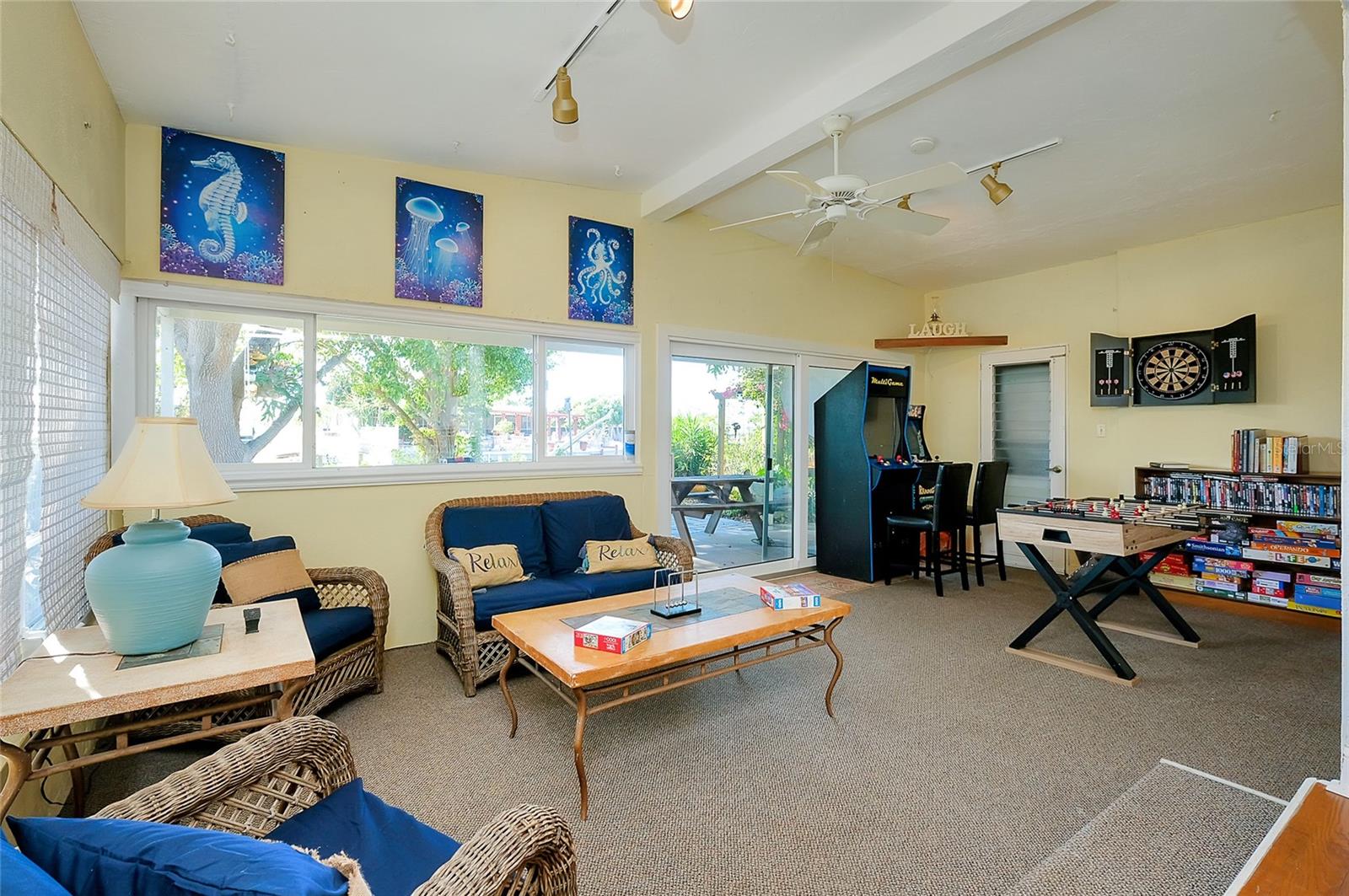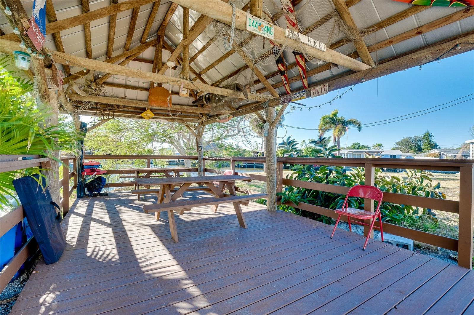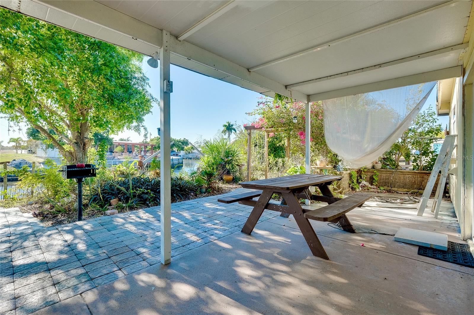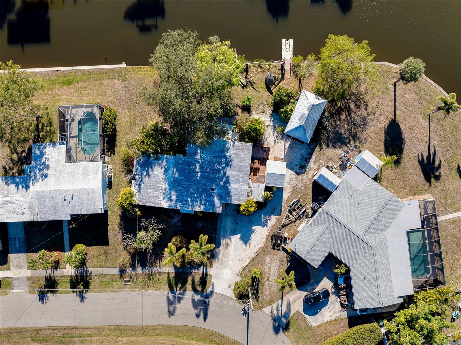 TURNKEY WATERFRONT HOME WITH BONUS MOTHER-IN-LAW SUITE AND QUICK HARBOR ACCESS: Perfectly situated on an oversized, nearly 14,000 square foot pie-shaped waterfront lot with approximately 148 feet of canal frontage and intersecting canal views, this move-in ready residence offers a rare blend of boating access, exceptional outdoor space, privacy, and flexible living options. Whether enjoyed as a single-family home, a multi-generational living setup, or an income-producing opportunity, this waterfront property delivers a unique lifestyle. Located just 0.9 miles from Charlotte Harbor with only one high-clearance bridge, this home provides easy access to open water while maintaining a peaceful and private setting. Showcasing flexibility and opportunity, the property is divided into two living spaces. The main residence features three bedrooms, one bathroom, a large living room, open kitchen, interior laundry room and a bonus Florida room currently configured as a game room, creating additional living and entertaining space. This area is fully equipped with a foosball table, two stand-up arcade systems, a dartboard, and board games, making it ideal for gatherings or relaxed evenings at home. The additional separate mother-in-law suite with its own private entrance affords a studio-style space including a bedroom, full-size bathroom, kitchenette, dining area, living space, and its own laundry closet. The kitchenette is equipped with a range, refrigerator, and microwave. This setup is perfect for visiting guests, extended family, or as a separate rental opportunity. The suite also offers future potential to be reconnected to the main dwelling if desired and features a brand-new split unit air conditioning system. The outdoor living space is truly exceptional, offering a tranquil backyard designed to maximize the waterfront setting and privacy. Features include a large covered outdoor 12x27 tiki style gazebo with metal roof, outdoor grilling stations, a kayak launch, and two hot tubs—one located off the main residence and another on the mother-in-law suite porch. Mature trees enhance the natural setting, and a separate storage shed adds additional functionality. Offered fully furnished and turnkey, the home is ready for immediate use as a primary residence, second home, or rental investment. Recent updates include new washer/dryers (with 3 year warranties), flooring, interior paint, fixtures, 2025 water heater, and a fully updated electrical system with a new 200-amp service panel. This coveted location puts you minutes from boating, fishing, and water sports on Charlotte Harbor, with marinas nearby including Charlotte Harbor Yacht Club, Fishermen’s Village Marina, and Safe Harbor Burnt Store offering slip access and services. Explore local waterfront dining, shopping, and entertainment at Fishermen’s Village in Punta Gorda. For beach days, world-class sands like Englewood Beach, Stump Pass Beach State Park, Manasota Key, and Gasparilla Island State Park are a short scenic drive west, offering swimming, shelling, boating, and sunshine along the Gulf Coast. The area is also known for outstanding golf, premier fishing waters, and easy access to restaurants, shopping, and community amenities throughout Port Charlotte, Punta Gorda, and nearby coastal towns.