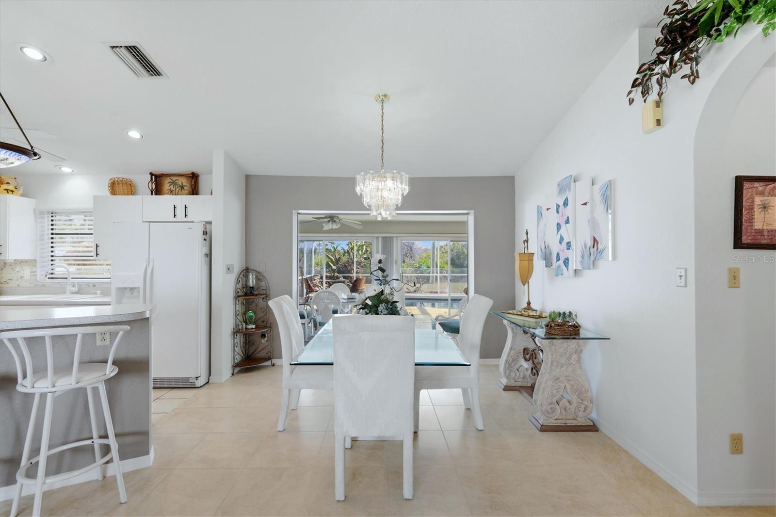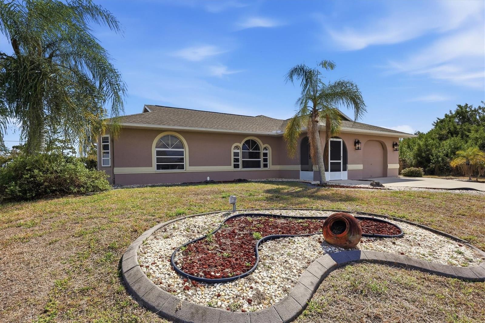 This beautifully maintained two-bedroom, two-bath, pool home offers comfort, style and a relaxing Florida Lifestyle. The spacious interior features vaulted ceilings that enhance the light-filled living areas, along with an upgraded kitchen and beautifully renovated bathrooms designed with both elegance and functionality in mind. Step outside through the expansive family room to your private oasis where a sparkling pool and heated spa overlook a peaceful forest view back yard, creating the perfect setting for quiet mornings or entertaining friends and family at night enhanced with inspired lighting. Outdoor enthusiasts will love the location with easy access to boating, fishing, and kayaking. Sandy Beach on the Myakka River is just a five-minute drive offering gorgeous natural scenery and endless recreational opportunities. Offered, Turnkey Furnished, this inviting home is ready for you to move in and begin enjoying the relaxed Florida Lifestyle. Charlotte County records incorrectly show this home as a three bedroom with two and one half bathrooms. Charlotte County records of the floorplan indicate an enclosed porch of 384 sq. ft. This square footage was not included in the county records for heated area. Per the owner this area was built as a family room with heat and air during the original build of the home.