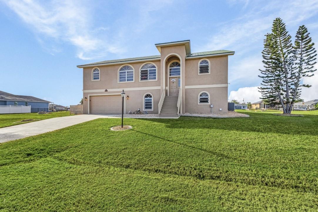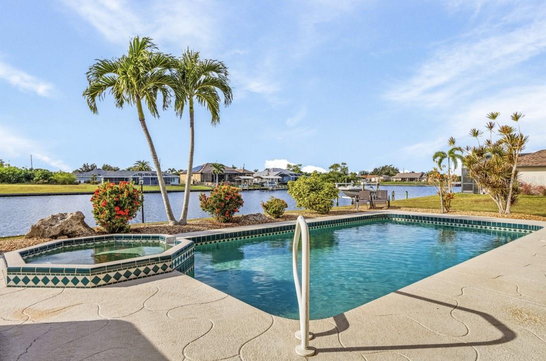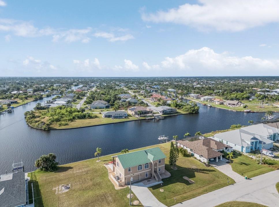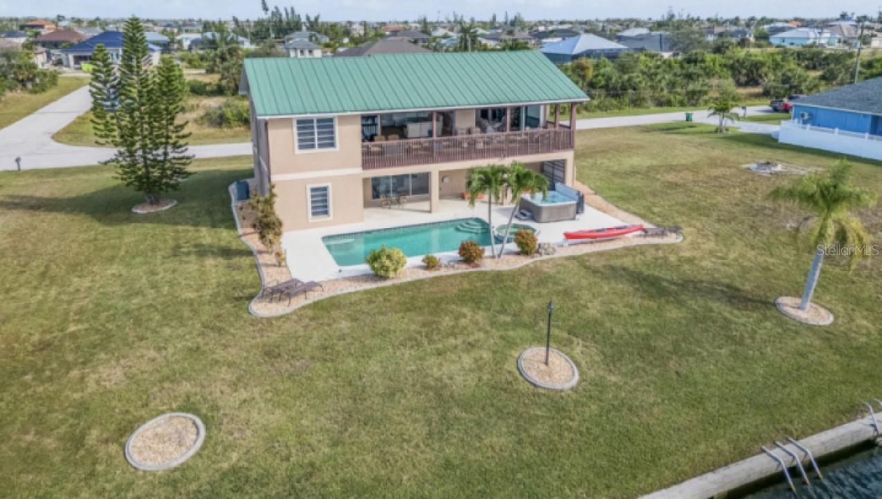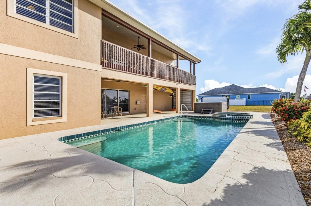 This CUSTOM RESORT STYLE HOME, has spectacle views and is user-friendly all year round inside and out. The upper level ENORMOUS windows provide you with 360° views insuring your views will never be blocked in the future. (No ranch style small windows here!) The vantage point on the second story will provide a unique outlook on life to the point as soon as you wake up you’ll be smiling knowing no matter where you are in the home you'll have some nice scenery out your windows. The 8 person octagon spa flows over into your real size 14’x28’ pool suitable for laps. Then after your workout just relax in the SIMPLY AMAZING 115 jet therapeutic luxury spa . In your backyard is an extra EXTRA wide intersecting waterway that has 88 feet of seawall assuring room to park your boat or have your own fishing spot. Leave in your boat and go east or west on your way to the Gulf of Mexico and you won't have to come back the same way. (Sorry no skinny dead end garbage collecting smelly water here) !!!!!!!! The depth of the water is controlled by a lock So the depth remains constant, allowing you to get your boat in and out at anytime !!!!!!! The yard has room for parking a trailer, rv or even a volleyball court. Ginormous? Heck YA,,,,Open up your 33 feet of pocketing sliders to give you an OPEN concept 1730 sq ft upper level. This unique style home allows for separate living areas if so desired. Live upstairs and rent downstairs or possibly an Airbnb or snowbird rental. The lower level scullery is ready for a kitchenette in case you desire separate living spaces. No Florida home is complete without the VERY MOST IMPORTANT FEATURE southern exposure!! You will be assured a user-friendly exterior environment whether in the penthouse or on the lower level. Outdoor activities are possible all year round and you will not be trapped inside behind your shades all day long. The upper outdoor area/ office provides a unique perspective on life while watching the boats navigate through the waters. (No wasted space walls here!!) The year round user-friendly southern exposure second level outdoor living area provides cool breezes in the summer and warmth in the winter. There are 55 miles of canals in your neighborhood just steps out your back door to explore in your kayak. Your choice, purchase at a discount or turn key (furnished plus extras). You may find yourself coming to Florida to explore but you may soon realize that your home has everything and you really don’t need to go anywhere else. This custom style home is for those few individuals that can appreciate the finer things in life and take their own path.