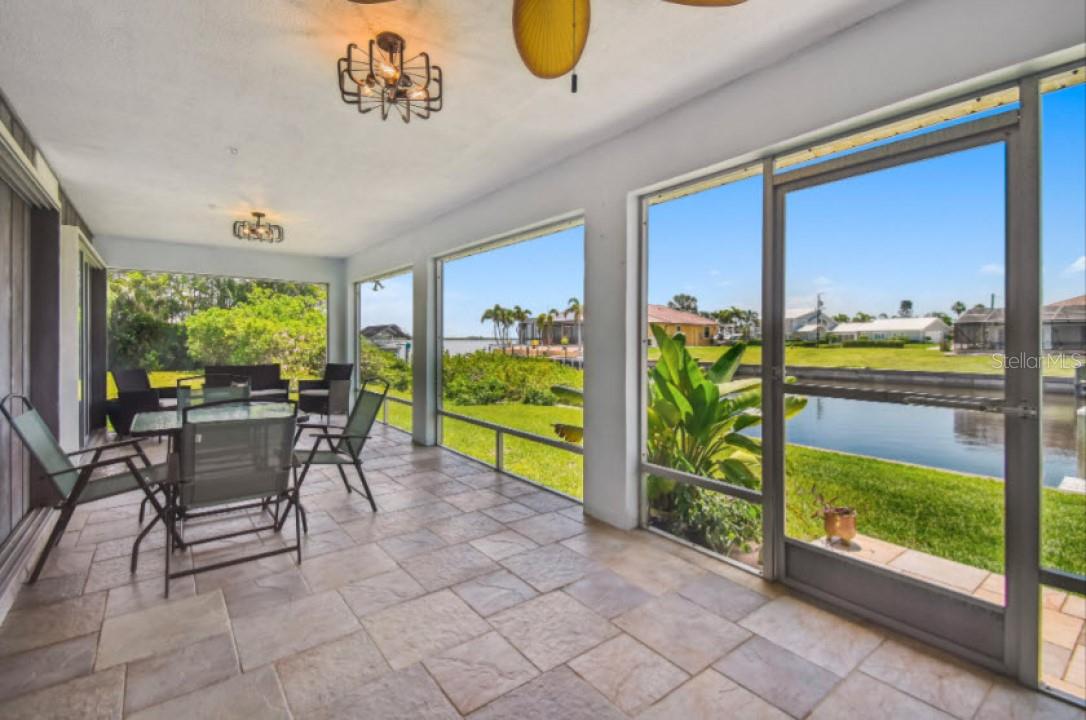 Bring your boat with this house that has incredible view of the Charlotte Harbor and River. Location, Location; you are just 300 feet from Charlotte Harbor, short time to Gulf. Wonderful fishing spot. Fully updated home with doc and panoramic view. New roof in 2023, facia, soffits, interior paint, new kitchen appliances, updated cabinets, updated lighting, fans, lighting, floors and House includes three bedrooms and two bath. Updated kitchen with Granite Countertop. Fully furnished with linens and service for four persons. Boat Doc for small boat. Water view from Master Bedroom and view from all living and eating area. Outdoor eating and entertainment area includes fantastic view. Location is everything, less than 300 feet to River and minutes from Charlotte Harbor. Extremely quite mature neighborhood.