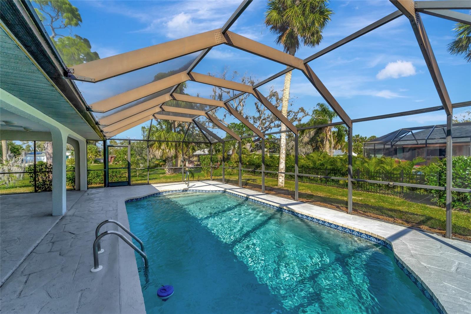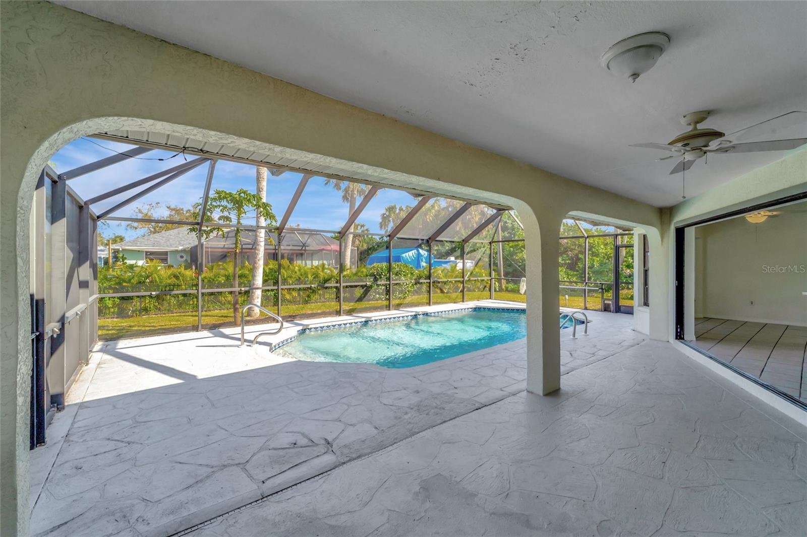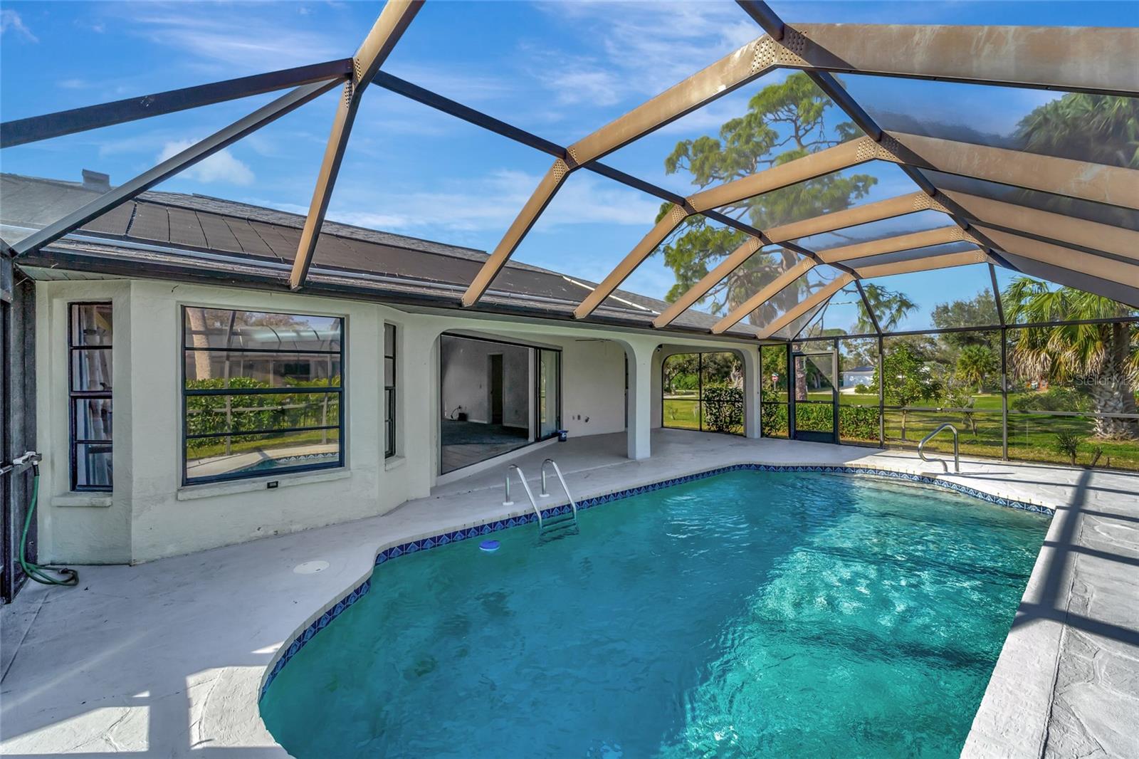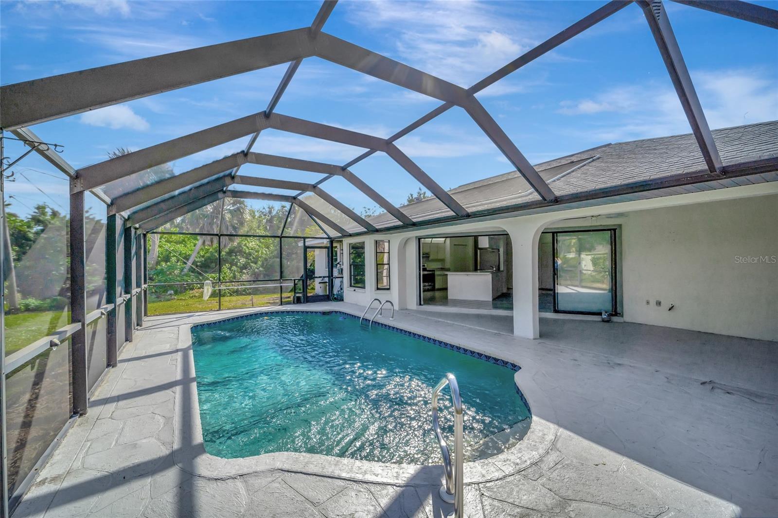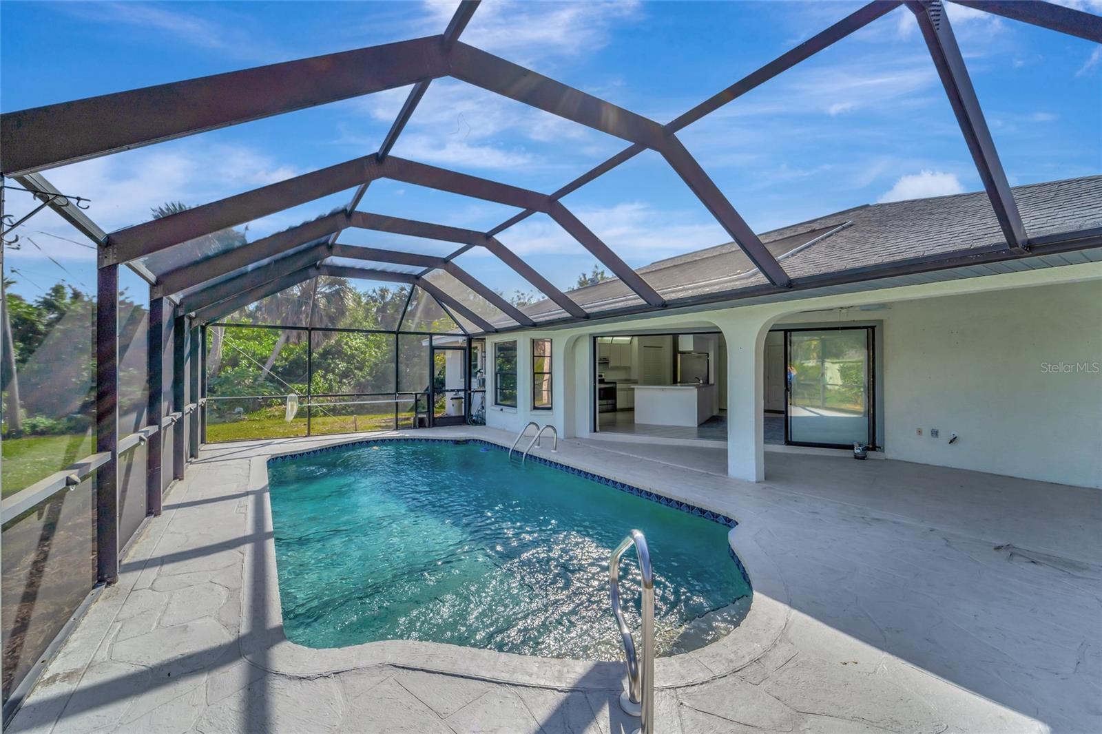 New price improved ** New Roof installed!**Welcome to your slice of paradise nestled in the sought-after location of Port Charlotte, Florida! This stunning 3-bedroom, 2-bath home with a refreshing pool is the epitome of comfort and relaxation. Recently updated with fresh paint and new carpets, the interior exudes a sense of modern elegance. You'll love the spacious open floor plan flooded with abundant natural light, creating a warm and inviting atmosphere for gatherings with loved ones. Step outside to discover your own private oasis—a tranquil pool area with a spacious stamped concrete patio (41x21) and a generously sized heated pool, perfect for unwinding after a long day or hosting unforgettable poolside parties. Enjoy peace and serenity with the split bedroom arrangement, featuring a luxurious master bedroom complete with a walk-in closet and en-suite bathroom. Convenience is at your fingertips, with dining, shopping, and entertainment options just a stone's throw away. Explore nearby attractions like the breathtaking beaches and bask in the consistently warm weather that Florida offers year-round. Ample parking space ensures convenience for hosting friends and family gatherings. For sports enthusiasts, the Charlotte Sports Stadium is a mere 10-minute drive away, offering endless entertainment options. This is an ideal location for an Airbnb opportunity if an investment is your goal. Don't miss out on this incredible opportunity to make this your forever home or vacation retreat—your Florida paradise awaits! NEW Roof, A/C 8 years old, new pool water pomp, new carpet, new water heater and new pool enclosure.