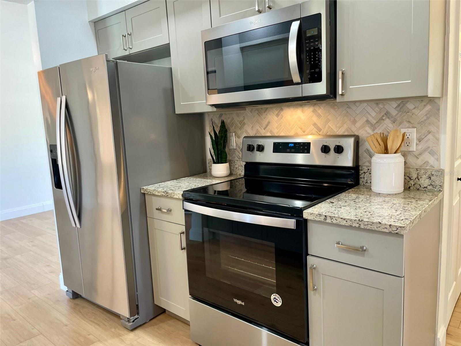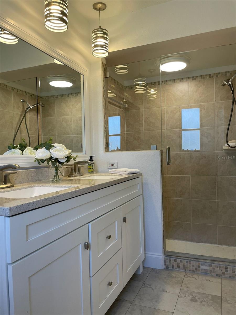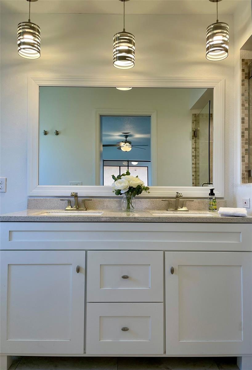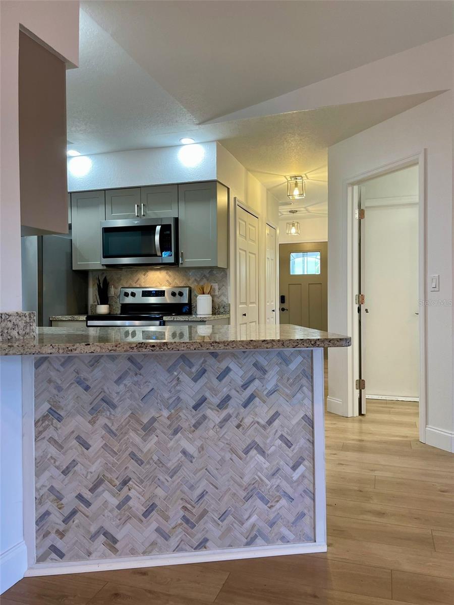 GORGEOUS RENOVATED HOME BY THE WATER!! This is the perfect House you have been Looking for! Your eyes will love the Sexy updates on the inside. And your pocket will love the updates on the outside including Newer Roof, AC and Garage Door. Just 15mins away is the Beautiful Gulf Beach and Just 1 mile to the Gulf Cove Boat Ramp Access into the Myakka River, which leads to the Gulf. The Updated Kitchen and Bathroom Vanities are Luxurious and Beautiful! Laminate Floors have been installed throughout the entire house and every room has been given a fresh coat of paint. Outside You will find Florida's beautiful Palm trees surrounding the property. An extended shell driveway provides extra parking. The open-concept Kitchen has Gorgeous Cabinets with a Granite Countertop, Plenty of Self-Closing Drawer Space, A Stackable Sliding Pass Through Window to the Lanai, a Skylight for extra lighting, Herringbone Backsplash that extends on the Breakfast Bar AND Newer Stainless Steel Appliances. The spacious Living Areas have vaulted ceilings and an abundance of natural light. The Master in this split floor plan home provides His and Her walk-in Closets, access to the Lanai and a beautifully Updated Bathroom with double sinks, Custom Lighting, a linen closet and a walk-in shower with seat and towel bar. The guest Bedrooms off of the Family Room have Spacious Walk in Closets. The Guest Bathroom compliments the Master with a Gorgeous Vanity, Custom Lighting, Storage Closet, Bath/Shower combo and Door access to the Lanai. The Large 30ft Lanai features 3 Very Valuable Stackable Sliding Glass Doors in addition to the pass-through window from the kitchen and Door to the Guest Bathroom. The Lanai is also equipped with 2 fans with lighting. Outdoor Living will be wonderful on the wood grilling deck and paver and crushed shell Patio. The Large Shed contains the Weather Shades for the House and Lanai. Indoor Laundry Room is Just off the kitchen with a Utility Sink, Cabinets, Linen closet and built in Ironing Board. A 2-Car Garage Provides even more space for your Cars and Storage. Roof was done in 2023 permit number 20230211998 AC was done in 2020 permit number 20200823602 And the garage door was done in 2020 permit number 20200616743