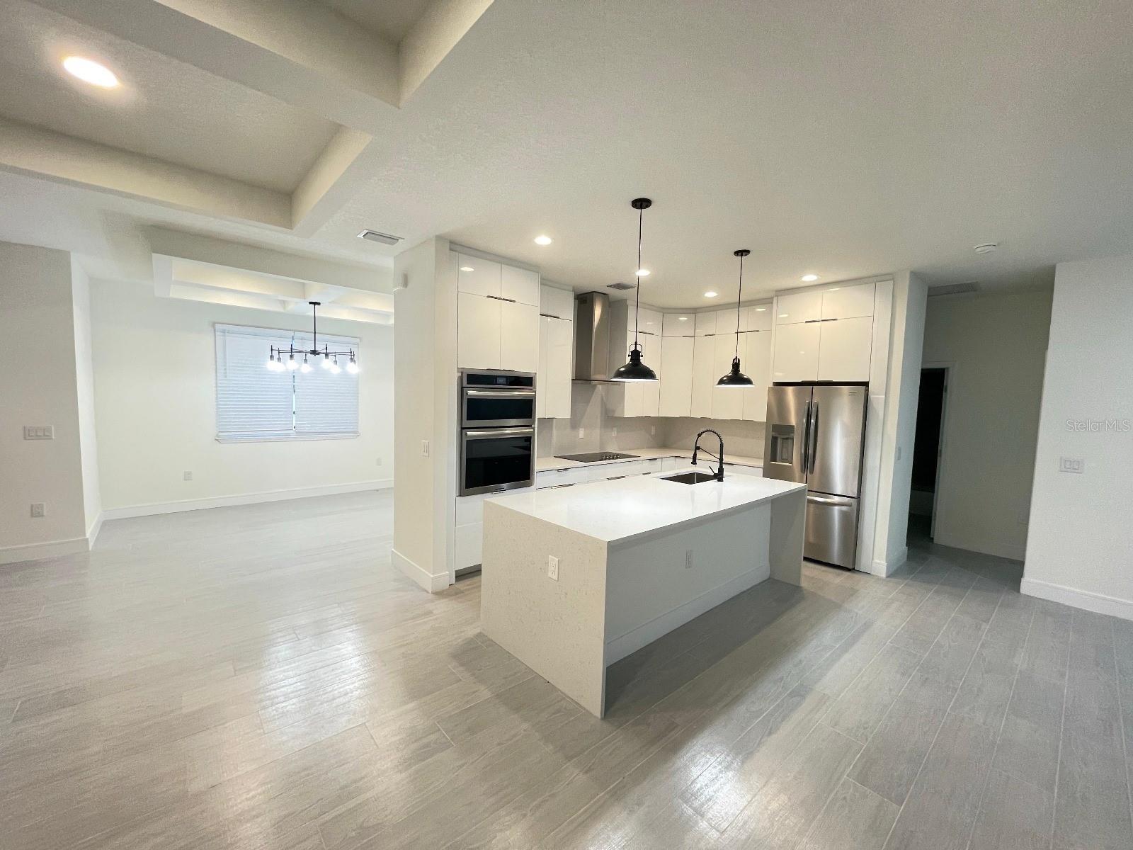 Welcome to your new spacious home, where every detail is carefully crafted for both style and practicality. As you step inside, you'll notice the elegant oversized tiles and sleek Europeanstyle cabinetry that maximize storage space. This home offers 4 bedrooms and 2.5 bathrooms, with one bedroom serving as a versatile space perfect for a nursery or office. The kitchen is a standout feature, boasting luxurious quartz countertops, a matching full quartz backsplash, and a stunning waterfall island that transforms meal prep into a delightful experience. The consistent design flow extends to the bathrooms, where countertops mirror those in the kitchen, ensuring a cohesive look throughout. Equipped with convenient amenities like an oven and microwave combo, cooktop, and hood, cooking is a breeze. With plenty of space and ample storage, keeping culinary essentials organized is effortless. Designed for gatherings and memorable meals, this kitchen truly is the heart of the home. Don't miss the chance to experience modern living at its finest. Schedule a showing today and discover the magic of this exquisite home for yourself.