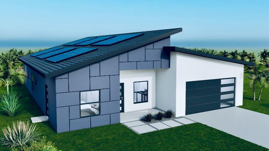 One or more photo(s) has been virtually staged. Pre-Construction. To be built. Pre- Construction...This gorgeous 4 bedroom, 3 bath modern home has so much to offer. This dream home has the perfect layout including an additional space for a den/office AND the 4th bedroom is it's own master suite with a private entrance. Introducing the Most Advanced, High Performance, Ultra-Efficient, and the Best Quality Commercial Grade Home ever created. Say goodbye to Termites, Mold, Cracking, Air Pollutants, WDOs, Mildew or even Risk of Fire. Plus, with ZERO Electric, ZERO Water, and ZERO Sewer Costs, you'll save hundreds every month while living in this Indestructible Reinforced Steel Framed and Steel Truss, Ferro Concrete, and Net Zero Solar Powered Hurricane-Proof home. Its Ultra-efficient building envelope consists of Monolithically Insulated Structural grade Closed-Cell Spray Foam throughout the exterior walls and ceiling combined with Ultra-sealed Oversized High Impact Glass Low E Windows and Miami Dade Hurricane Rated Exterior Doors. On the roof, you'll find Commercial Grade Securock Non-combustible Roof Decking and a Top of the Line Metal Roof with a 45-year warranty. Inside, the home is Fully Upgraded with a 17.5 Seer Inverter Variable Speed HVAC, State of the Art Modern 6k LED Lighting, High-End Waterstar Fixtures, and State of the Art Home Automation. Not to mention the Hybrid Smart Water Heater, 9ft Ceilings, Top of the line Soft Close Modern Design Kitchen and Bathroom Cabinets with High-Quality Quartz Countertops, and Stainless Steel Appliances. The home is also adorned with Stylish Modern Doors, Mirrored Closet Doors, and a Frameless Glass Shower Enclosure in the Master Bath. This incredible home comes with a 10-Year Structural Warranty. No more compromises! Don't settle for anything less than the Undisputed Best and Safest Home money can buy for your Family! Financing options are also available, including 96.5%-100% Financing with ZERO Closing Costs, Down Payment Assistance, and Owner Financing for those interested. So even if your credit isn't ideal, we've got you covered.