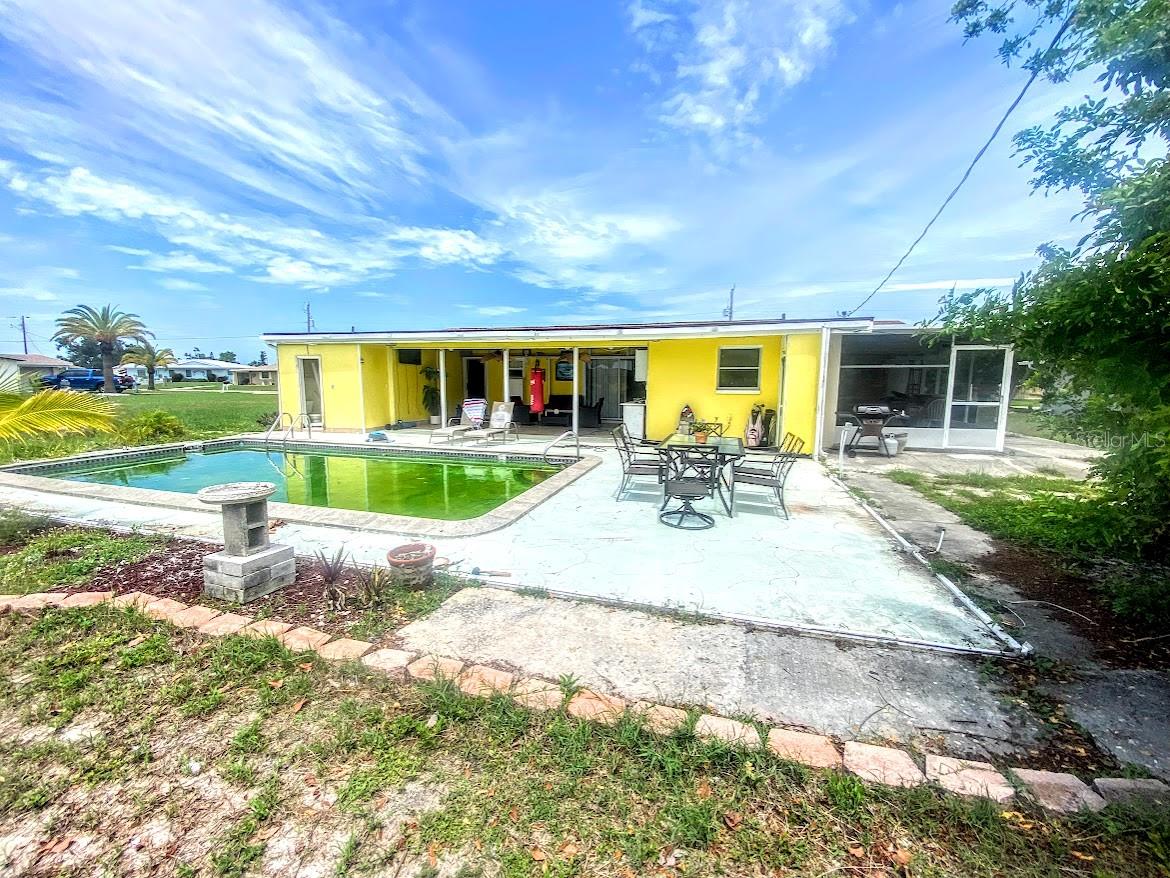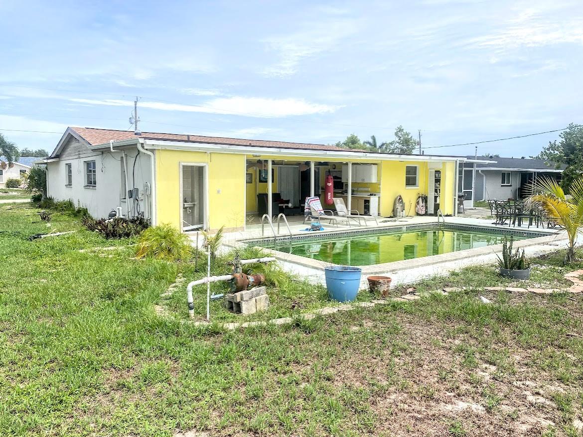 Here is an excellent opportunity to acquire a comfortable layout house on a double lot totaling half an acre. This house features a nice pool, three bedrooms, three full baths, an attached two-car garage with a laundry hook-up, and two screened great Florida rooms. Even though a licensed roofing contractor professionally replaced the complete pitch roof in 2023 (per Charlotte County records), and the house is livable, it requires the buyer's personal taste, upgrades, and TLC to make it the perfect home. Don't miss out on an opportunity to own this beautiful home with a pool on a double lot at the end of a peninsula community with minimal vehicle traffic.