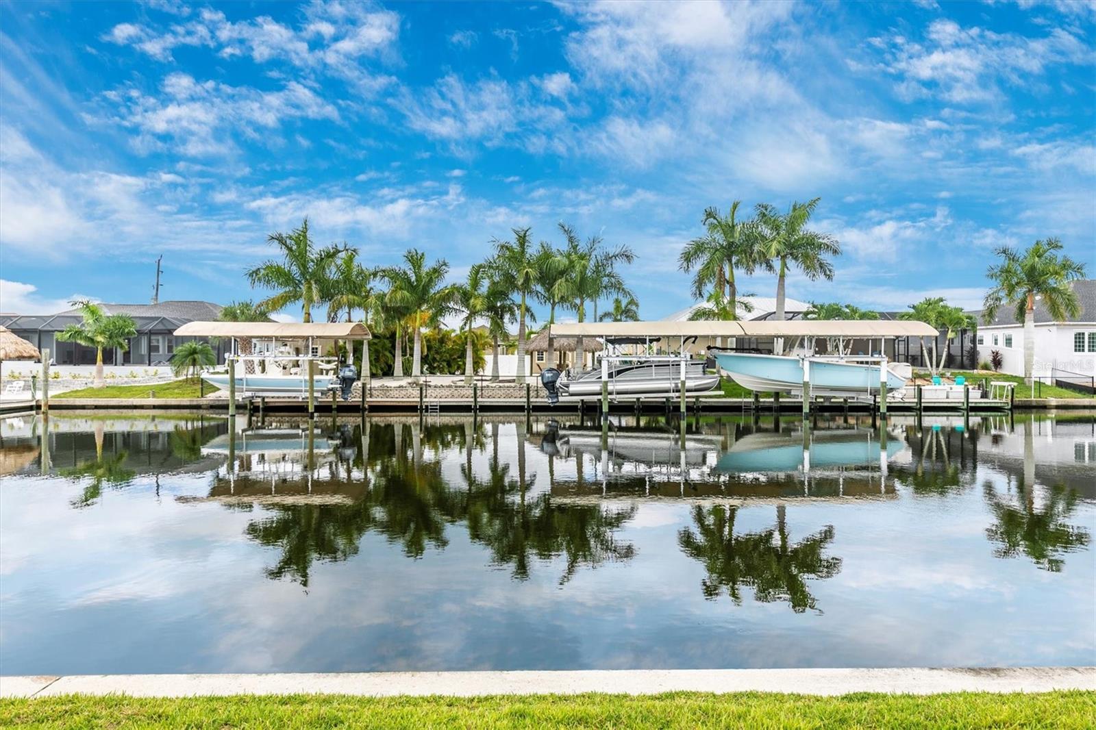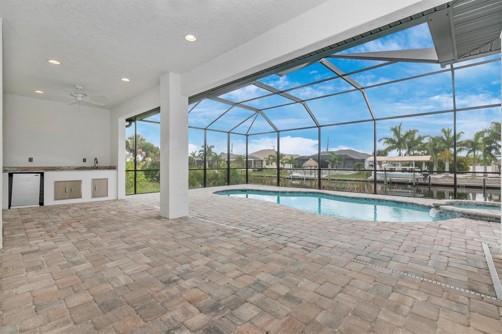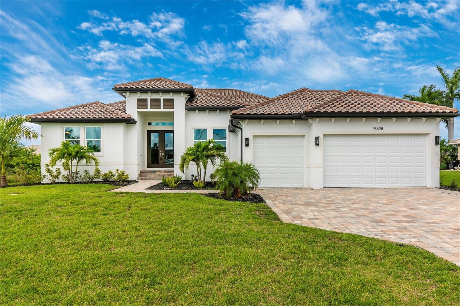 One or more photo(s) has been virtually staged.******Priced to Sell****** This could be yours for Christmas!!!! No Hurricane damage here!!! Never been lived in. Indulge in luxury living with this sensational new Gulf access home in South Gulf Cove. Nestled in a prime canal front location, this move-in ready property offers quick water access to Charlotte Harbor, perfect for large boats and yachts with no bridges to navigate. Experience the epitome of modern elegance with an expansive great room, tall coffered ceilings, and a chef's kitchen boasting a gas burner range, pot filler faucet, and large island. Entertain effortlessly on the grand covered lanai with an outdoor kitchen, heated saltwater pool, and hot tub. Premium features include impact-rated Low-E windows and doors, plank tile flooring, designer quartz countertops, and a spacious 3-car garage with epoxy flooring. Enjoy 80' of concrete seawall and stunning canal views. With easy access to historic Boca Grande, pristine beaches, and various marinas, this home promises the ultimate Florida lifestyle. Note: Some pictures have been virtually staged.