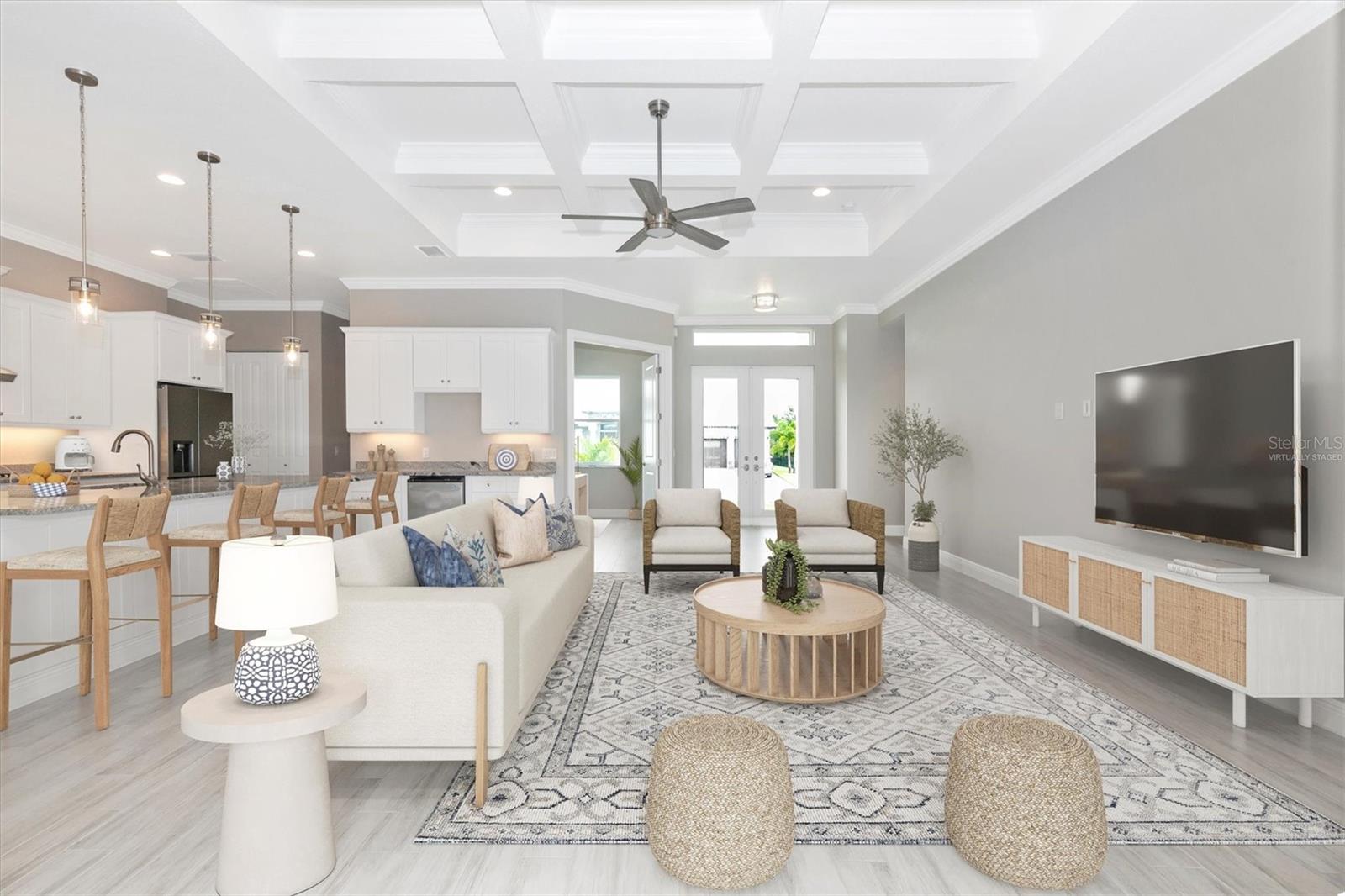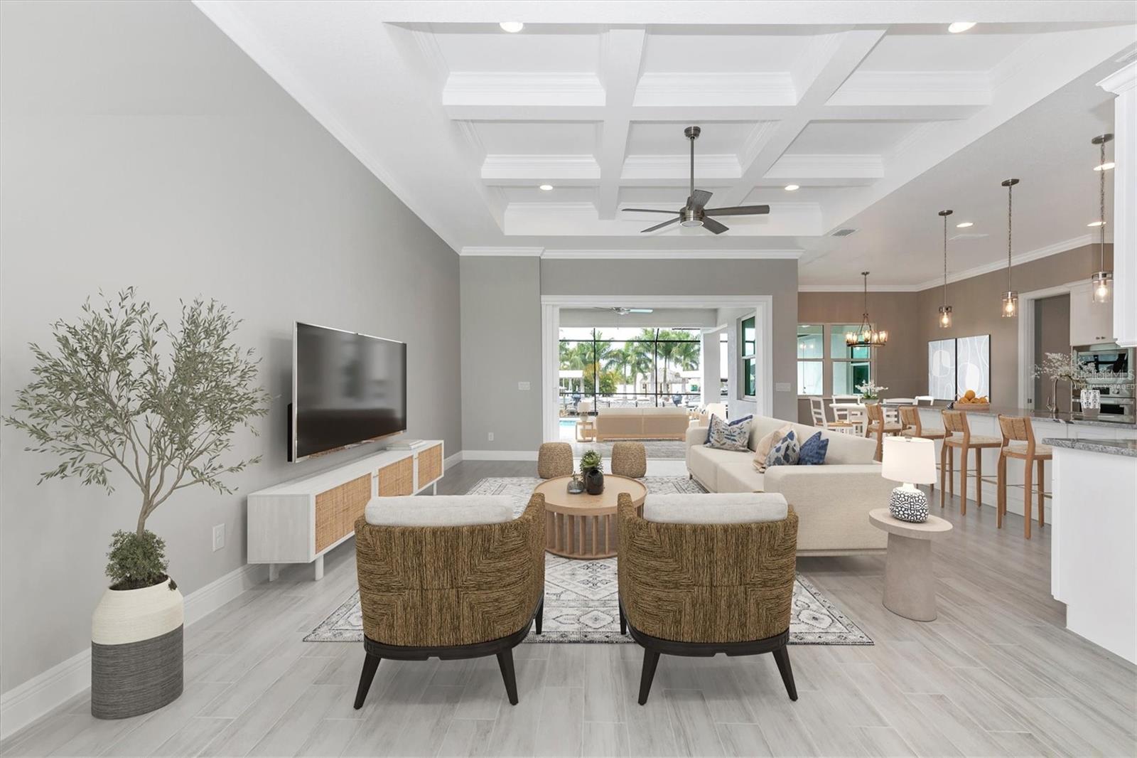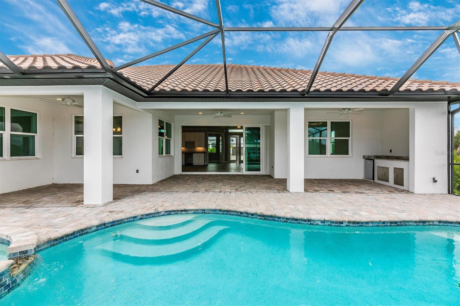 One or more photo(s) has been virtually staged.******Priced to Sell****** This could be yours for Christmas!!!! No Hurricane damage here!!! Never been lived in. Indulge in luxury living with this sensational new Gulf access home in South Gulf Cove. Nestled in a prime canal front location, this move-in ready property offers quick water access to Charlotte Harbor, perfect for large boats and yachts with no bridges to navigate. Experience the epitome of modern elegance with an expansive great room, tall coffered ceilings, and a chef's kitchen boasting a gas burner range, pot filler faucet, and large island. Entertain effortlessly on the grand covered lanai with an outdoor kitchen, heated saltwater pool, and hot tub. Premium features include impact-rated Low-E windows and doors, plank tile flooring, designer quartz countertops, and a spacious 3-car garage with epoxy flooring. Enjoy 80' of concrete seawall and stunning canal views. With easy access to historic Boca Grande, pristine beaches, and various marinas, this home promises the ultimate Florida lifestyle. Note: Some pictures have been virtually staged.