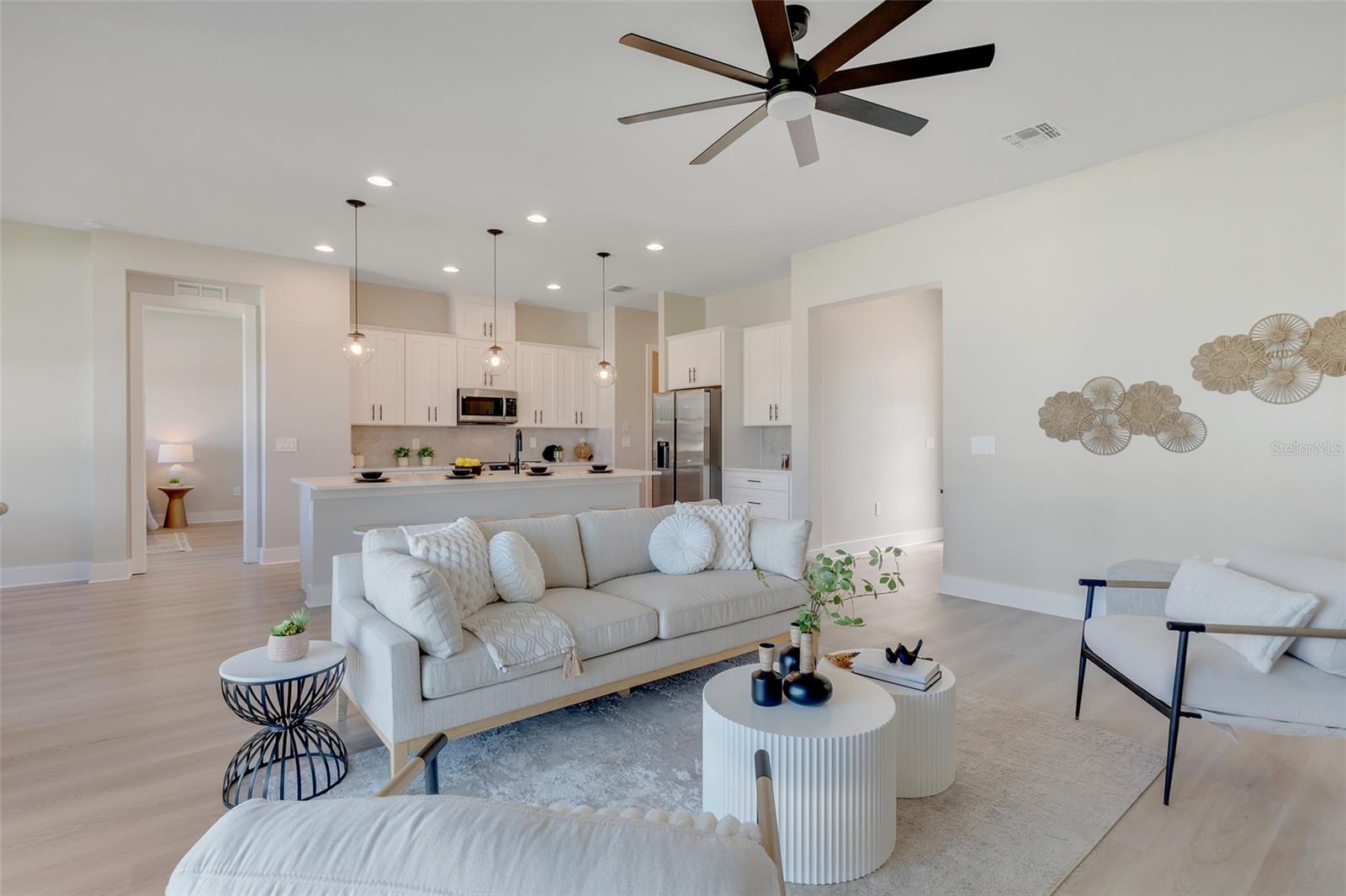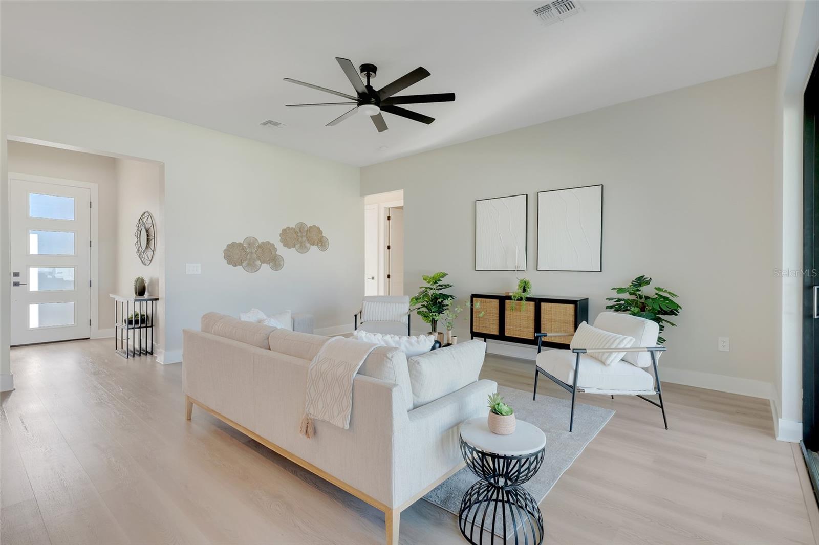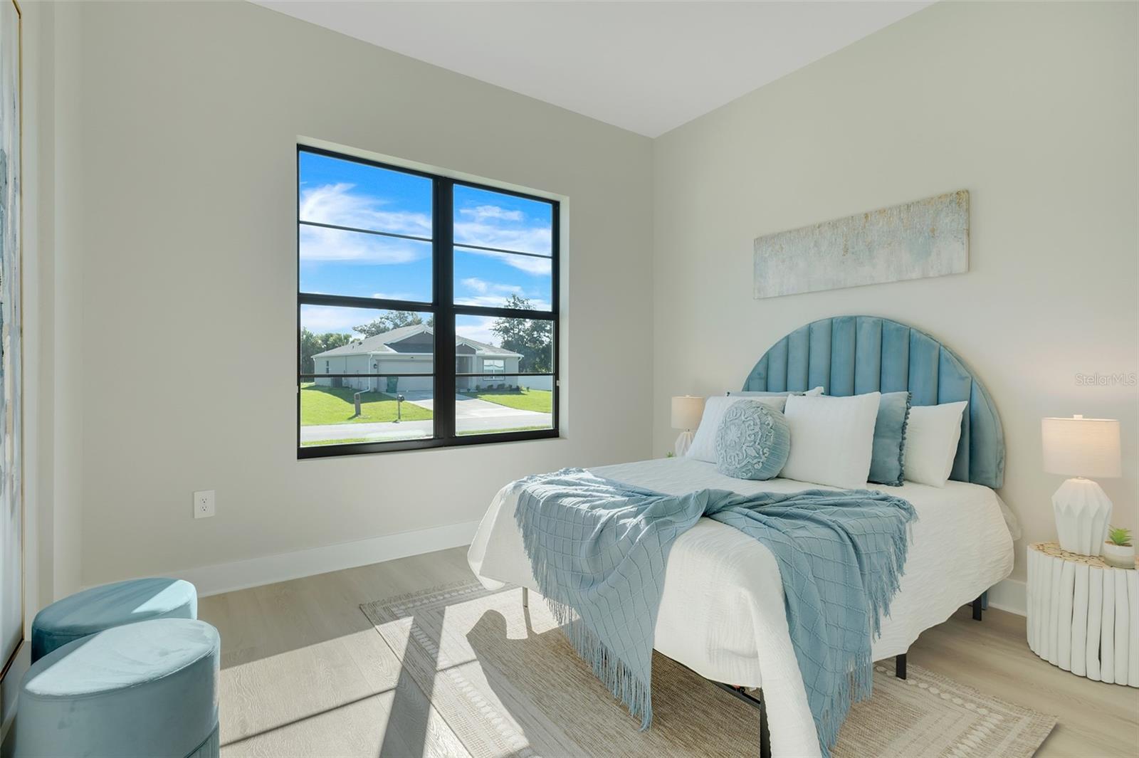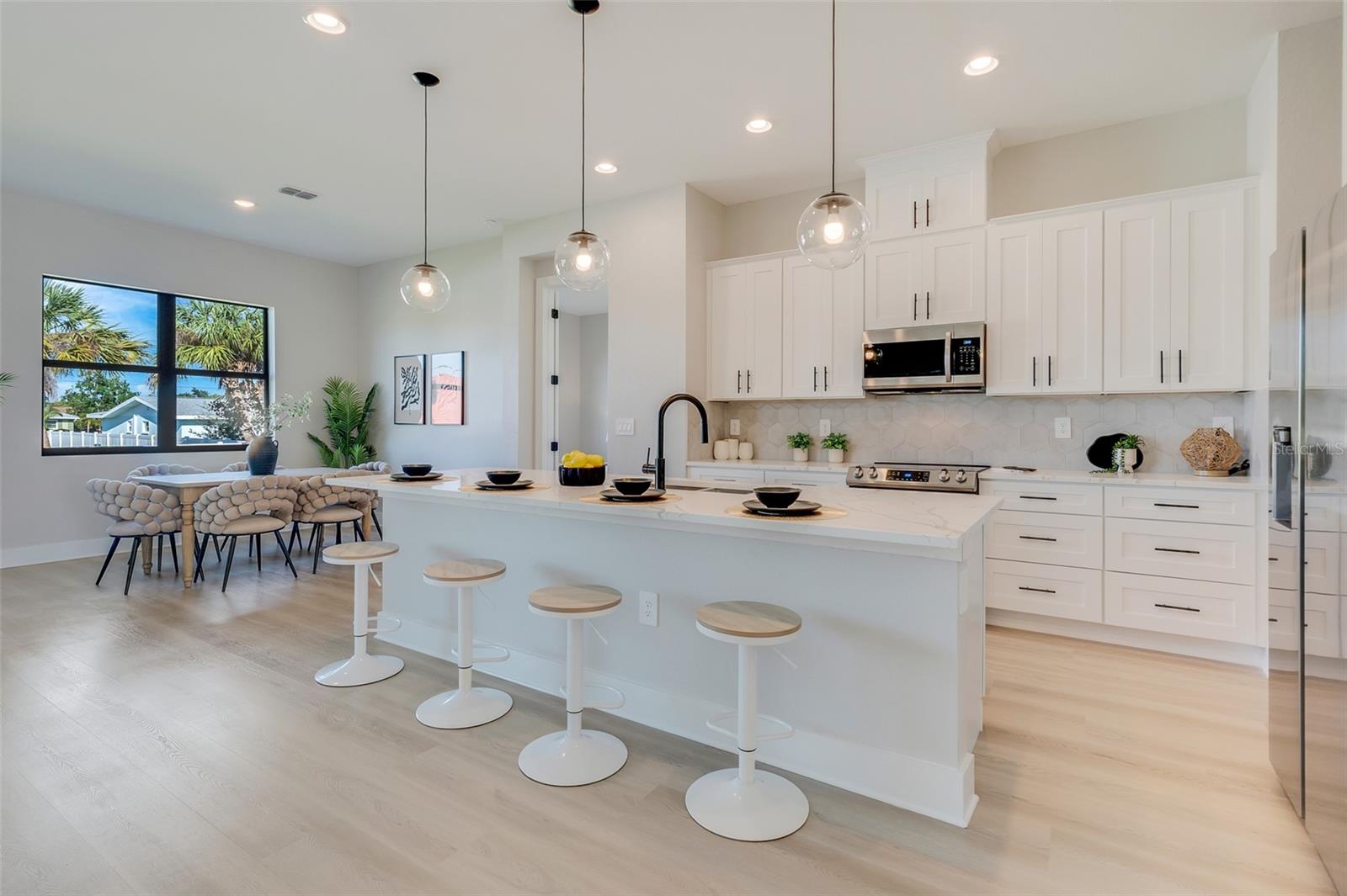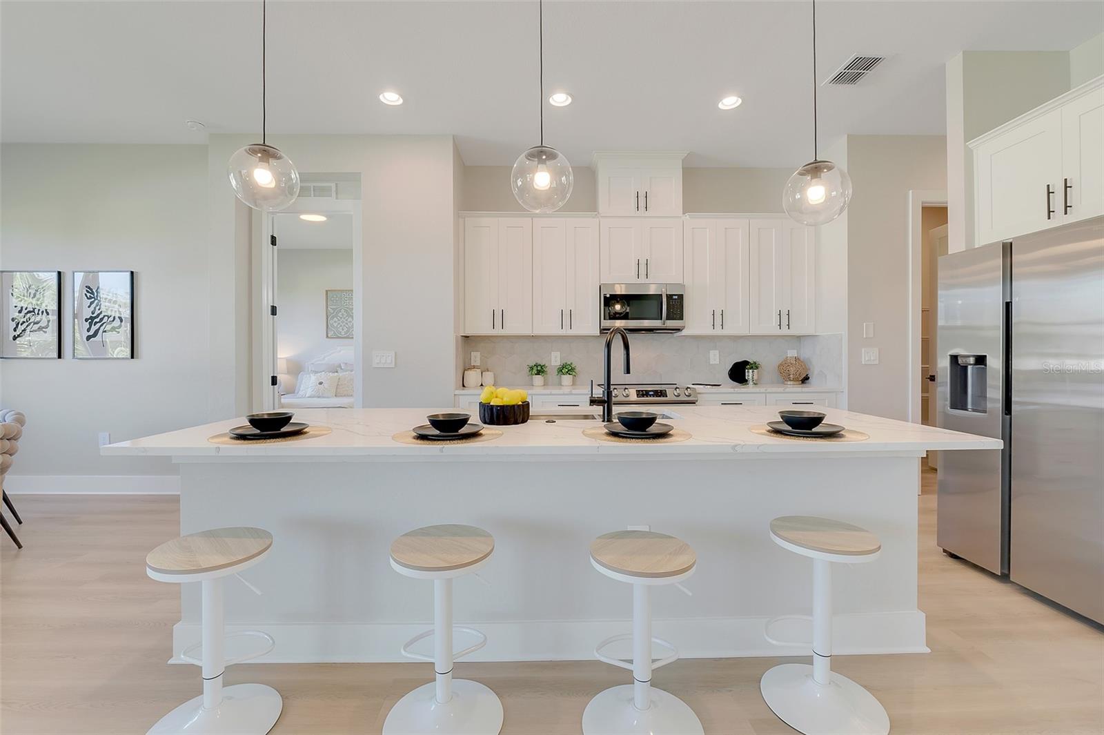 Welcome to this stunning custom-built home, nestled in a community with no HOA fees. With nearly 1,900 square feet of living space, this residence offers abundant room for family and friends. As you enter, you'll be captivated by the open-concept main living area, seamlessly connecting the living room, kitchen, and dining space—ideal for entertaining guests. A beautiful three-panel sliding door opens to the lanai, inviting natural light and enhancing the harmonious indoor-outdoor flow. The kitchen is a chef's dream, featuring upgraded soft-close cabinets, top-of-the-line stainless steel appliances, an exterior vented hood range, elegant tile backsplash, soaring 10-foot ceilings, and stylish 8-foot doors. Adjacent to the garage, the private laundry room provides extra countertop space for your convenience. The primary bedroom, thoughtfully situated on one side of the home, boasts dual sinks, an oversized shower, a private toilet room, and a spacious walk-in closet. On the opposite side, you'll find three additional bedrooms and a full bathroom, ensuring comfort and privacy for everyone. As you explore, you’ll appreciate the meticulous craftsmanship reflected in every detail. The outdoor area is pre-wired and plumbed for a summer kitchen, making it perfect for entertaining or unwinding in your spacious backyard oasis. The two-car garage includes an extra-wide driveway for additional side parking for a boat, trailer, or RV, complemented by a fully paved walkway leading from the driveway to the lanai. Located just 4 minutes from Edgewater's Public Boat Ramp, you'll have easy access to delightful days on the water or peaceful fishing trips. Don’t miss the chance to own this extraordinary oasis—schedule your private showing today and start living your best life in this vibrant town of Port Charlotte, Florida! Lot size is including vacant lot next door 3331 Elkcam Blvd. that can be purchased with the house for an additional $45,000.