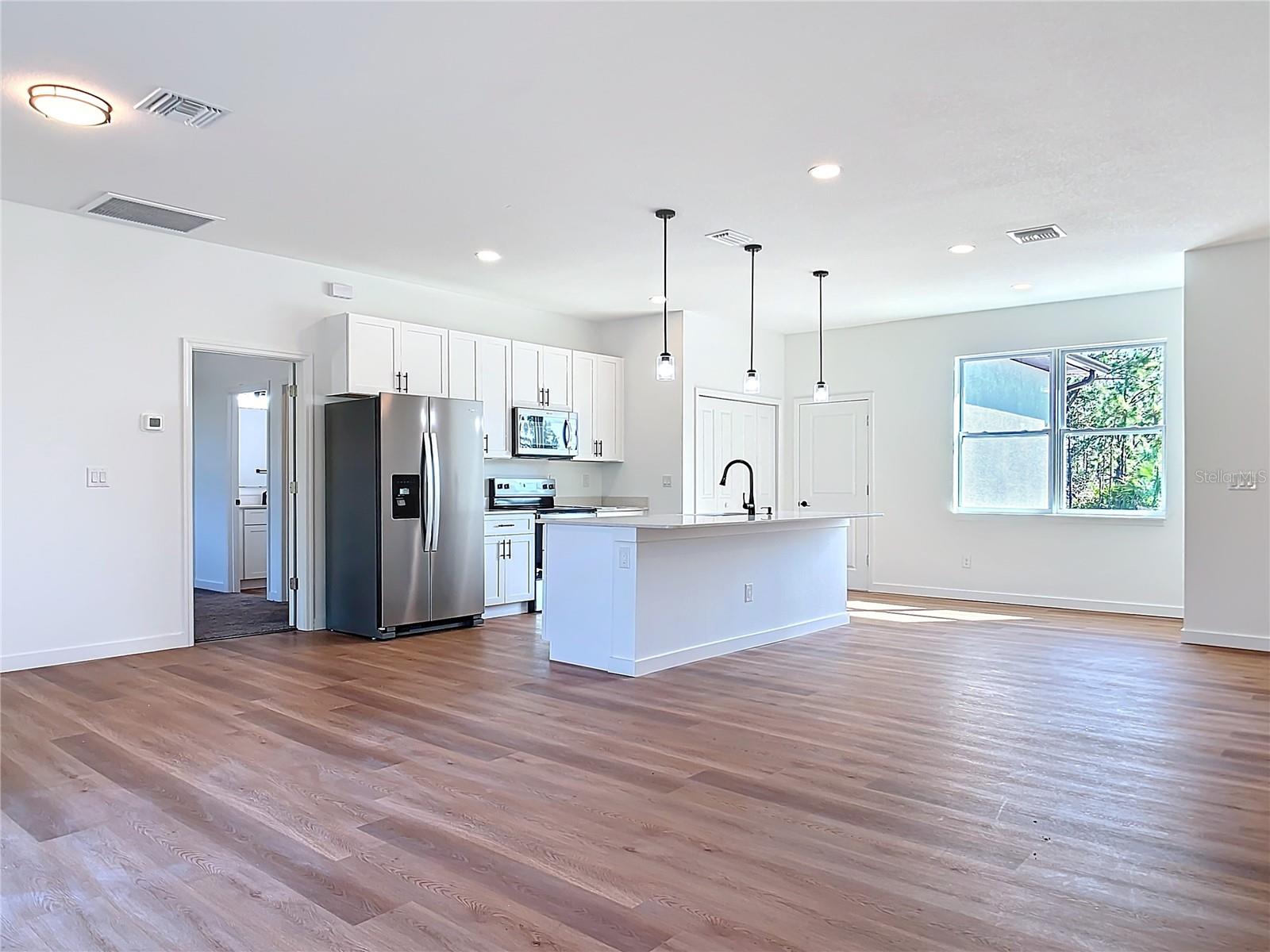 In the golden land of the west coast of Florida, only 30 minutes away from paradise beaches, such as Manasota key, Siesta key, Boca Grande, Venice Beach and many more. Step inside and be greeted by the spaciousness created by the 9'-4" CEILINGS AND 5 1/4", IMPACT RESISTANT DOORS AND WINDOWS. providing an elevated sense of elegance throughout. With 3 bedrooms and 2 bathrooms thoughtfully distributed in an open floorplan, this home offers both comfort and functionality. Luxurious vinyl flooring in communes areas, combining durability and aesthetic appeal seamlessly. The kitchen is a true centerpiece, featuring gorgeous cabinets. The brand-new stainless-steel kitchen appliances are included, ensuring a modern and stylish cooking experience. The stunning GRANITE COUNTERTOPS provide an elegant surface for meal preparation and entertaining guests. Additionally, this home includes soft-close 42-inch cabinets, showcasing a commitment to quality and convenience. The fantastic location is a true highlight, with proximity to renowned restaurants, shopping centers, major roadways, parks, and schools, ensuring convenience and an active lifestyle. CONCRETE DRYWAY. Don't miss out on the opportunity to call this stunning property home. Contact us today to schedule a showing. READY TO MOVE IN.