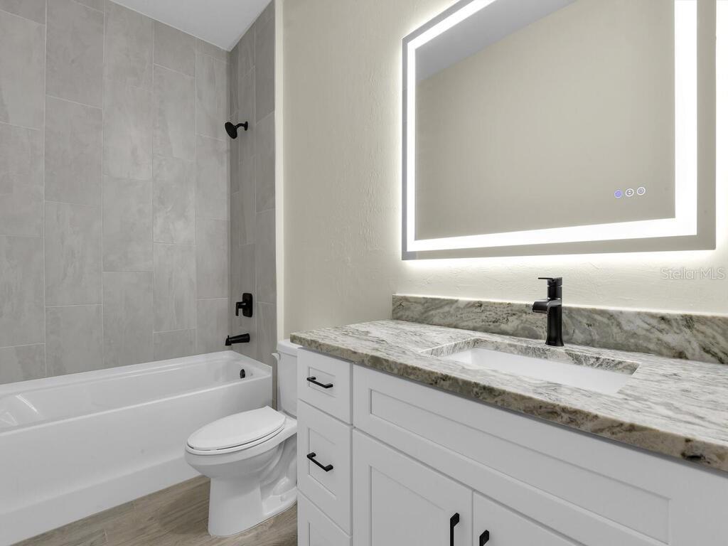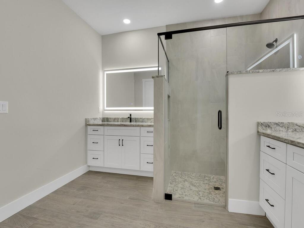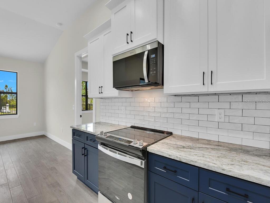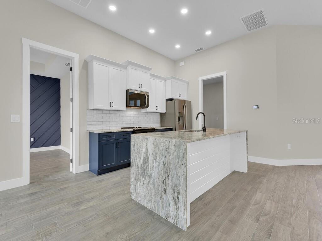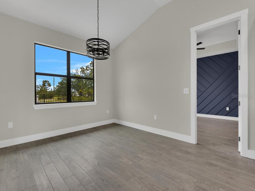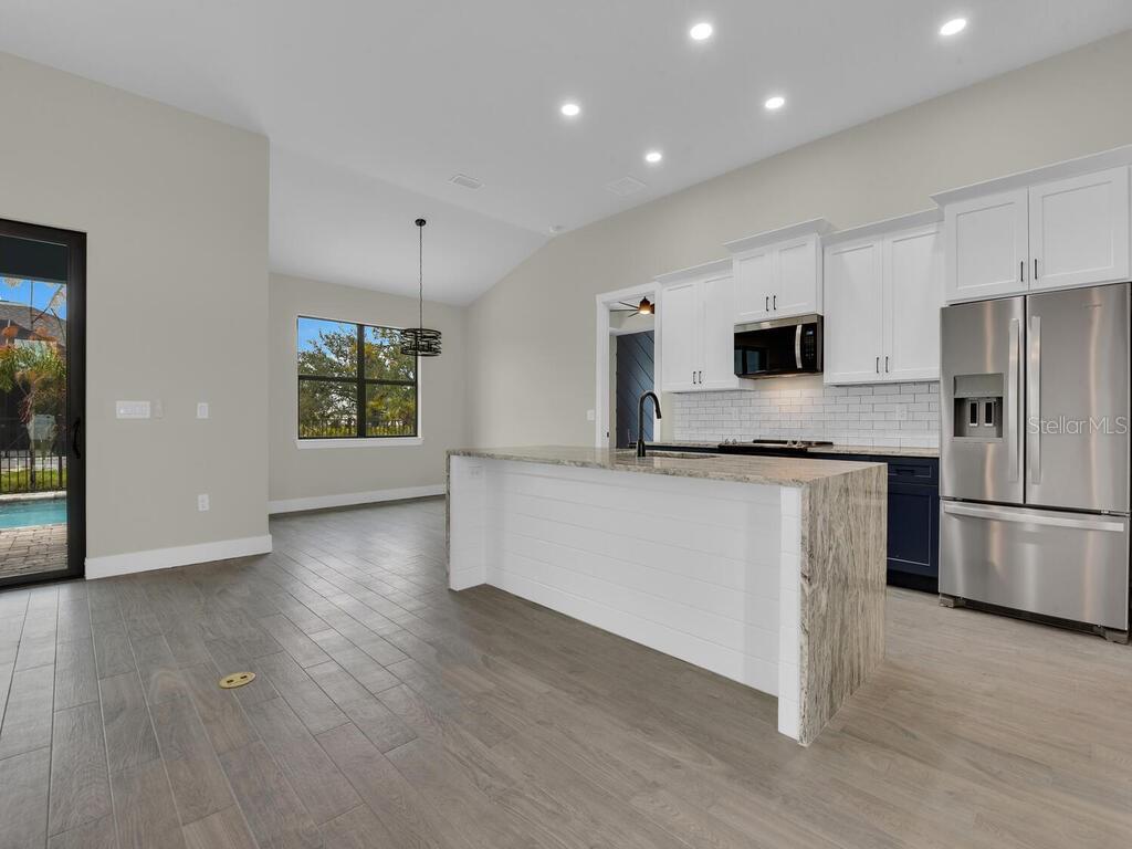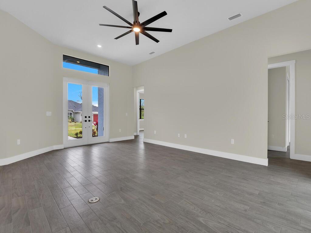 One or more photo(s) has been virtually staged. Under Construction. Discover the brand-new Custom Douglas Brooke Home featuring 4 bedrooms, 2 bathrooms, and a 3-car garage, complete with impact-resistant windows and doors. Spanning over 2000 square feet, this home is adorned with high-end finishes. Step through the impact-resistant glass double doors and into a spacious great room showcasing elegant dark wood-look tile, soaring ceilings, and sliding doors that lead to an expansive pool area. The kitchen boasts crisp white upper cabinets, striking navy lower cabinets, quartz countertops, and stainless-steel appliances. A large island separates the kitchen from the living space. Adjacent to the kitchen is a huge walk-in pantry and a sizable laundry room with a sink. The dining area, set behind the kitchen, features a vaulted ceiling. The master suite is a true retreat with walk-in closets and an ensuite bathroom with dual vanities and a walk-in glass shower. The home's guest wing offers three additional large bedrooms and a full bathroom. Completing this residence is a generous 3-car garage and a pool equipped with an alarm system. Additional features include in-wall pest control, pre-wiring for cable in the master and living rooms, smart home capabilities, and impact-rated windows and doors. Close to shopping, nightlife, boat ramps, hospitals, major airports and so much more! Photos are of Model Home and finishings may differ. Please see attachments. Rates as low as 3.99% for well qualified buyers with DBL Home Mortgage.