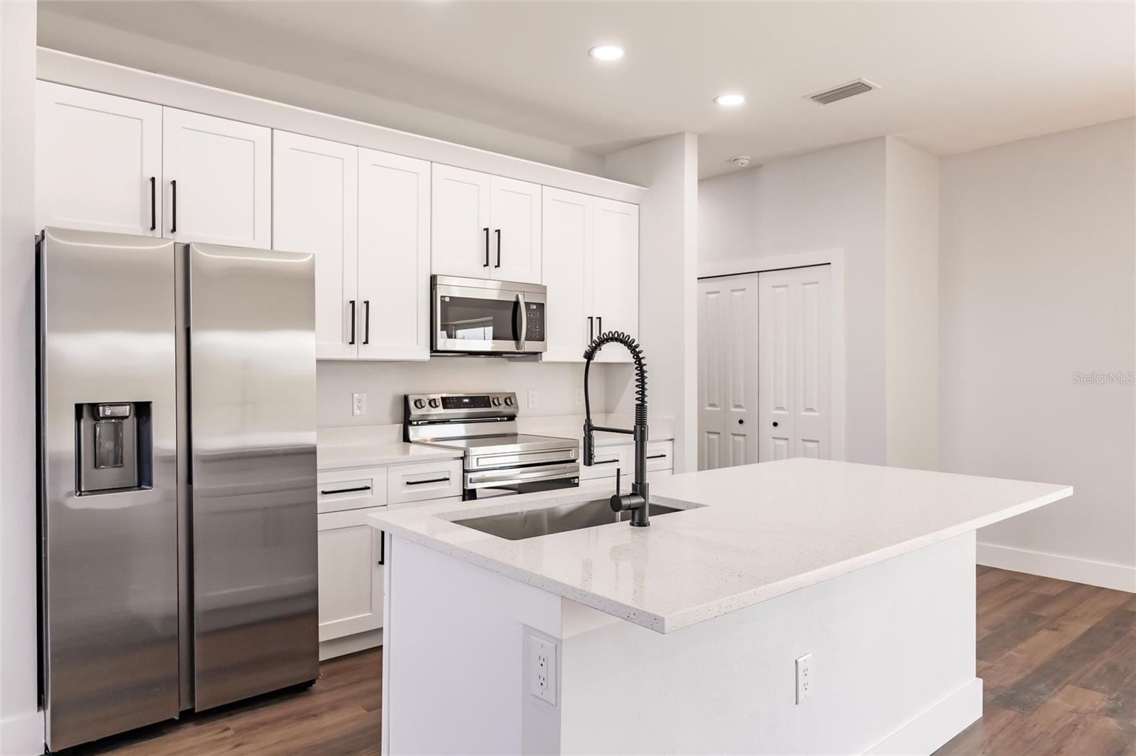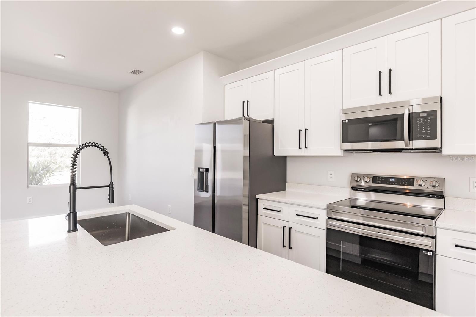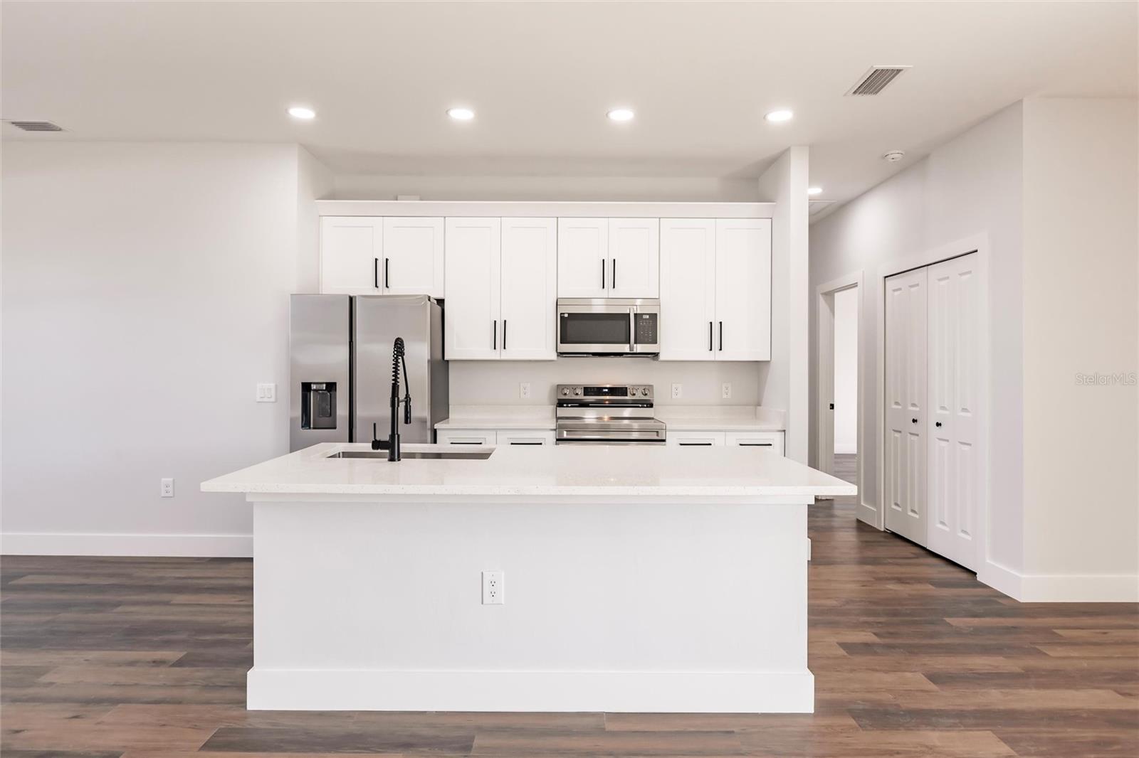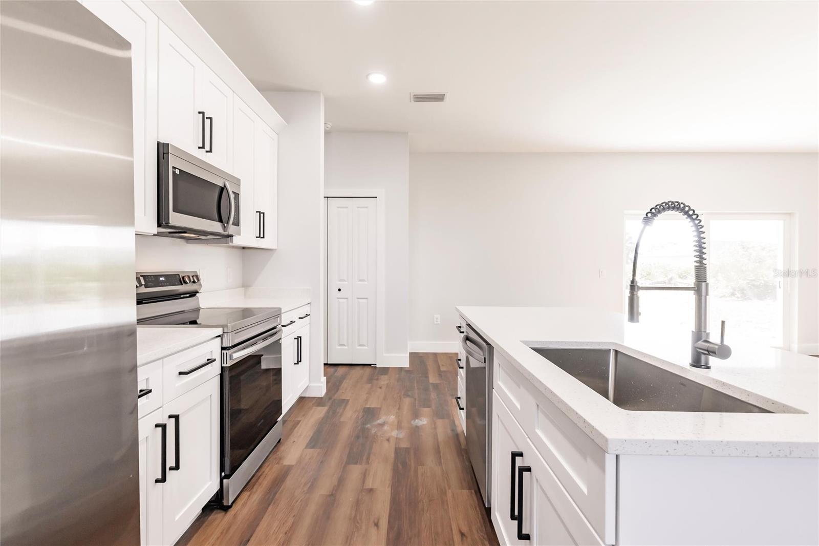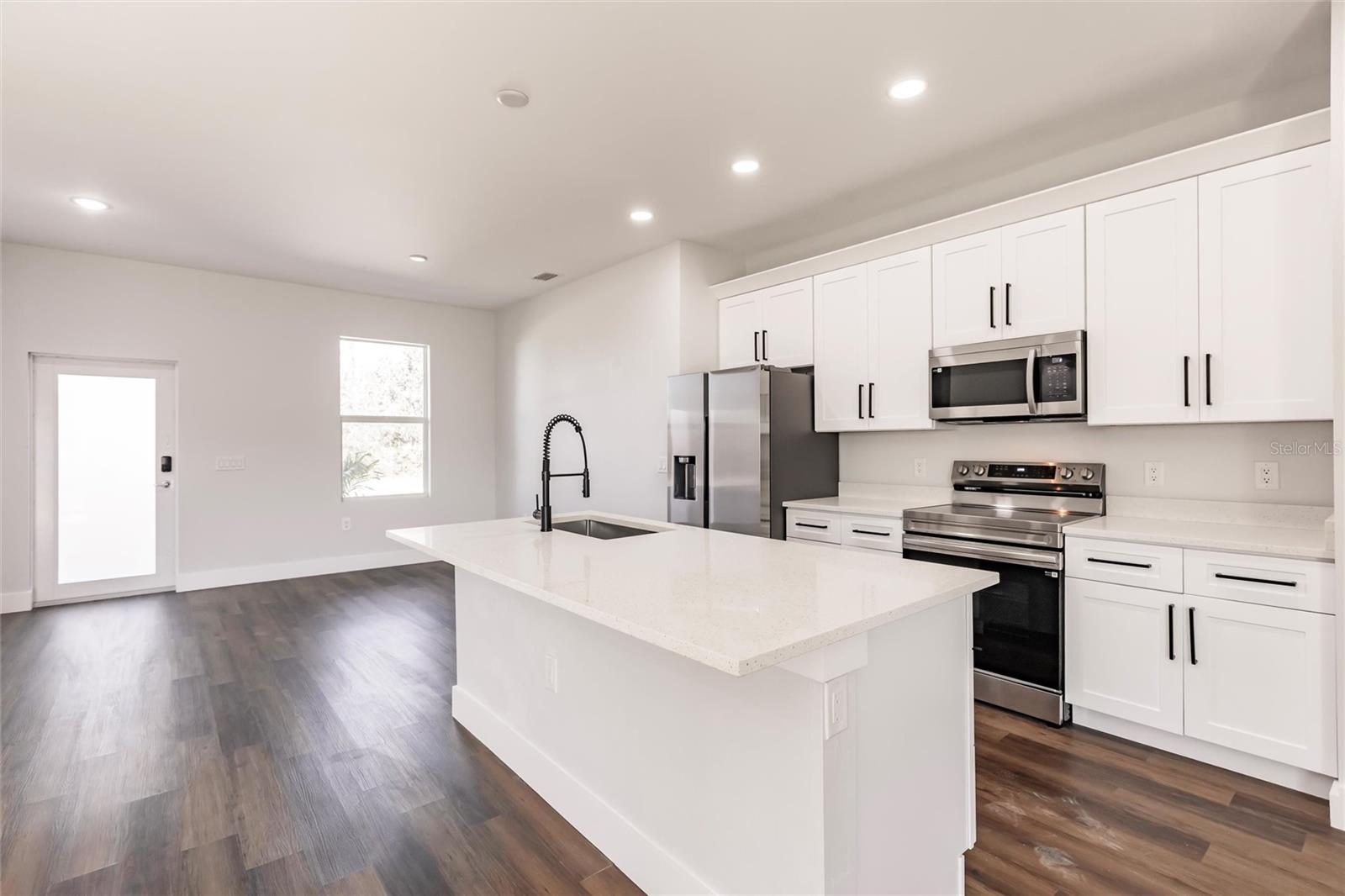 From the Builder: Secure a 5.8% interest rate and a $7,000 Builder Incentive! Apply it toward your closing costs or use it to buy down your interest rate—the choice is yours! Experience modern living at its finest in this brand-new custom build, designed for both comfort and style. Step into an expansive open-concept layout, where natural light floods the airy living spaces, seamlessly connecting the living room, dining area, and gourmet kitchen. The heart of the home is sure to impress any chef, featuring gleaming speckled quartz countertops, soft-close premium cabinetry, and top-of-the-line Samsung stainless-steel appliances. A stainless-steel undermount sink and high-arc spring-spout faucet add refinement, while a striking geometric glass front door sets the tone for its sleek, modern aesthetic. Retreat to the tranquil master suite, complete with a spa-inspired en-suite bathroom, ample closet space, and serene garden views. Throughout the home, durable vinyl plank flooring combines effortless maintenance with understated elegance. Outside, the 10,000 sq ft lot offers endless possibilities—entertaining, gardening, or room to expand. Additional highlights include a spacious 2-car garage, energy-efficient windows, and a prime location in a welcoming neighborhood. Don’t miss this opportunity! Schedule your private tour today.