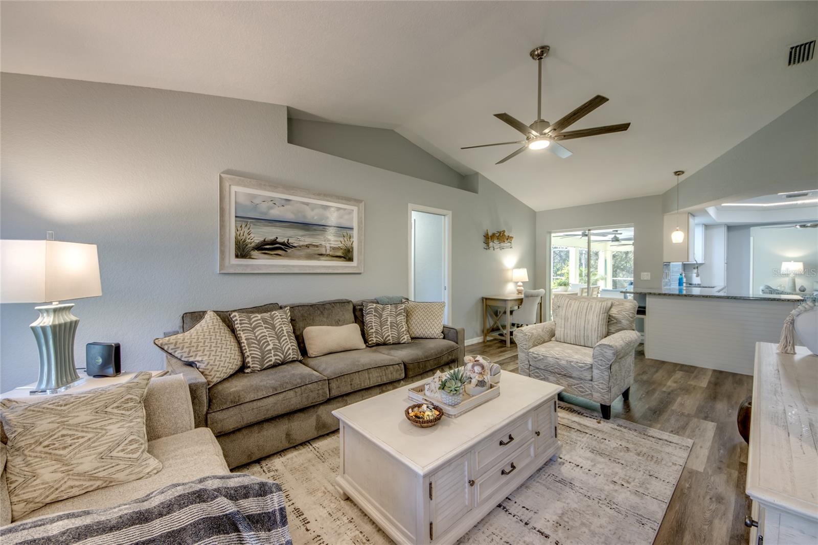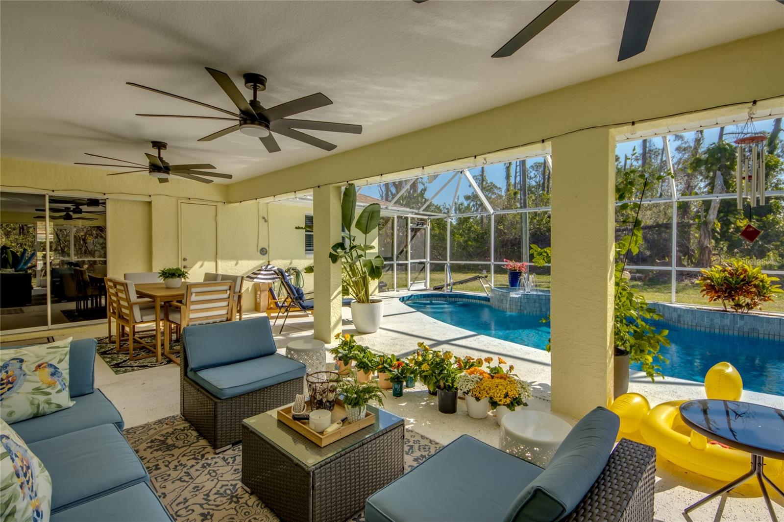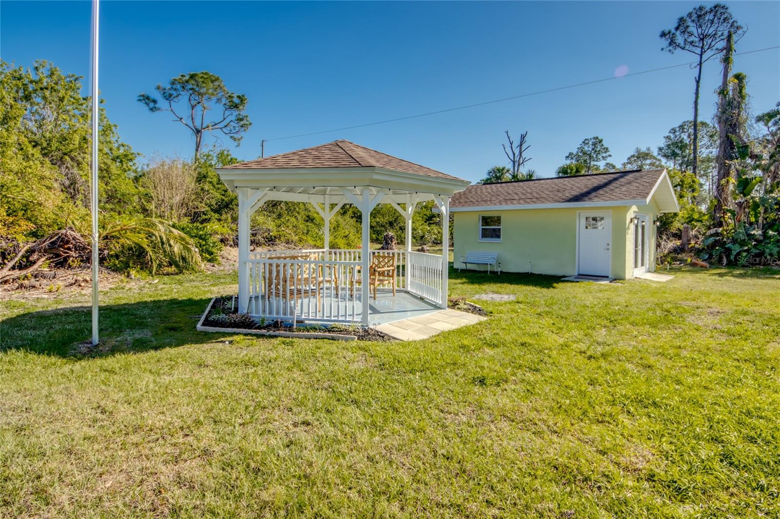 Stunning-Pool Home with an air conditioned Studio and less than 1/4 mile from a public Boat Launch! Discover the perfect place to call home in this beautifully remodeled coastal retreat in Port Charlotte! This spacious 3-bedroom, 2-bathroom home sits on a double lot and offers an incredible mix of indoor comfort and outdoor living. Located in a friendly, non-deed-restricted neighborhood, this property is less than 1/4 mile from a public boat launch, making it an ideal home for boaters and outdoor enthusiasts! Inside, the home boasts high ceilings, fresh coastal paint tones, and brand-new LVP flooring throughout. The chef’s kitchen features granite countertops, new cabinetry, and a breakfast peninsula, all overlooking the pool area. A spacious family room with backyard views and access to the lanai provides a cozy yet open living space. The primary suite is a private retreat with a grand walk-in shower with dual shower heads, double vanities, and a large linen closet. Sliding doors open directly to the lanai and pool, creating a seamless connection to the outdoor oasis. The split floor plan ensures privacy, with additional bedrooms offering comfortable accommodations for family or guests. Step outside to your private, screened-in heated pool with a soothing water feature, perfect for year-round relaxation. The nearly 1,000 sq. ft. outdoor space includes a large covered lanai ideal for entertaining, plus a charming gazebo for a quiet retreat. One of the standout features of this home is the air-conditioned 12' x 20' detached studio, providing additional flexible space—perfect for a home office, gym, art studio, or guest quarters. Additional features include a new roof, A/C, water heater, pool heater, and modern appliances, ensuring worry-free living. Conveniently located near shopping, dining, CoolToday Park, Warm Mineral Springs, and more, this home offers both tranquility and easy access to daily conveniences. Don't miss this opportunity to lease a one-of-a-kind property in an unbeatable location.
