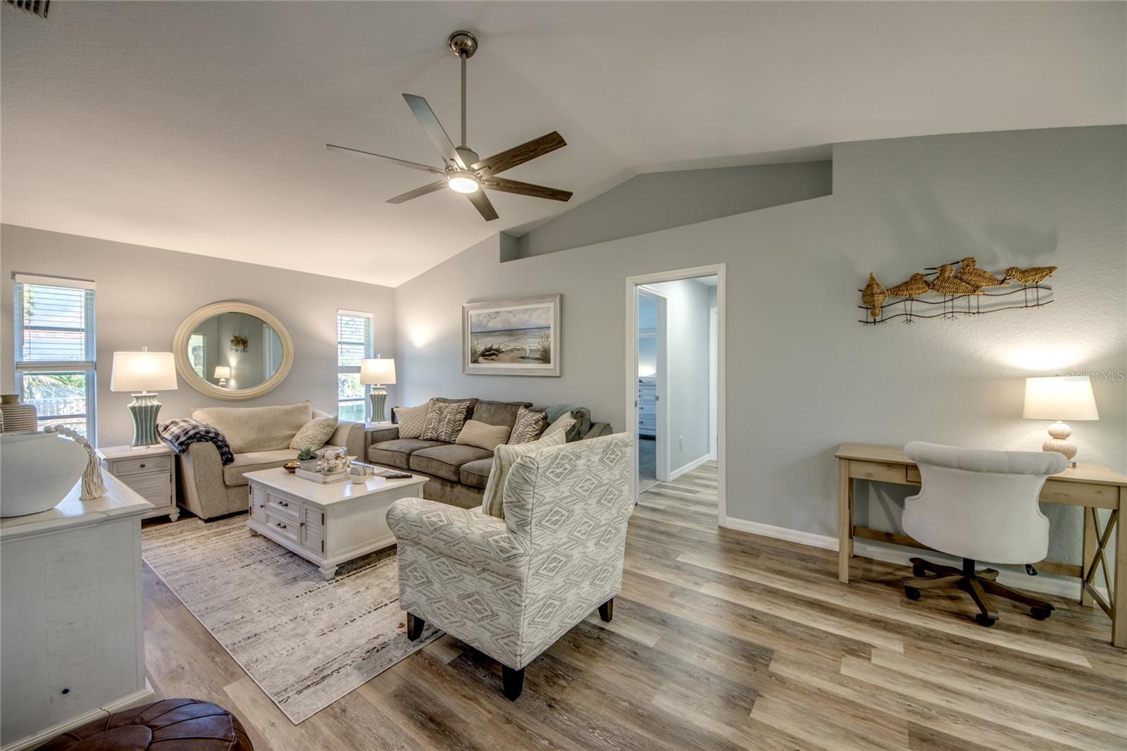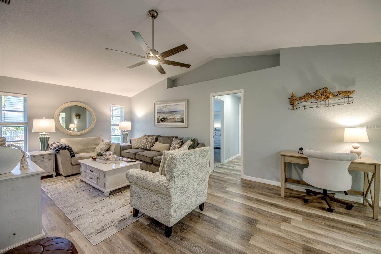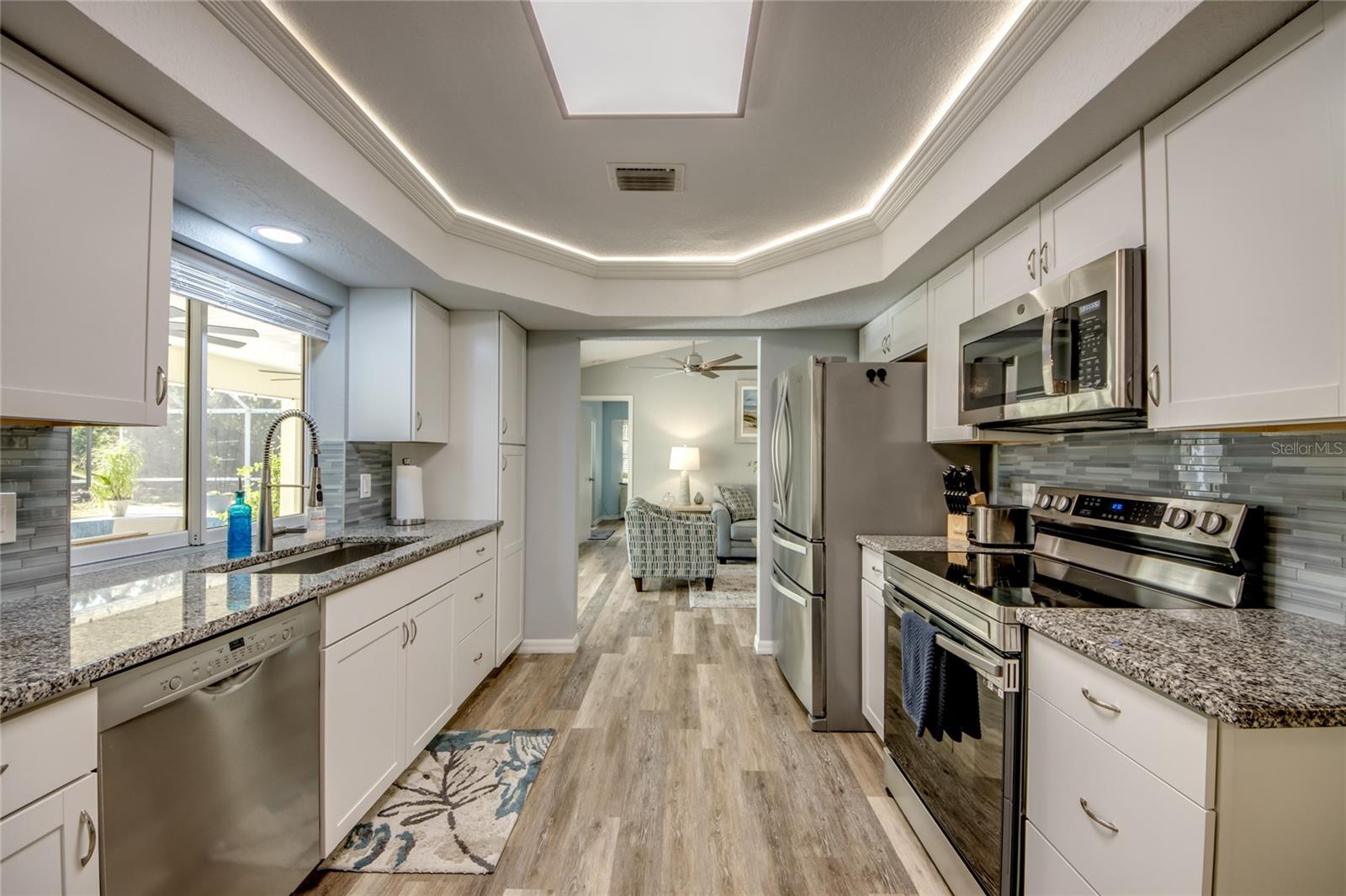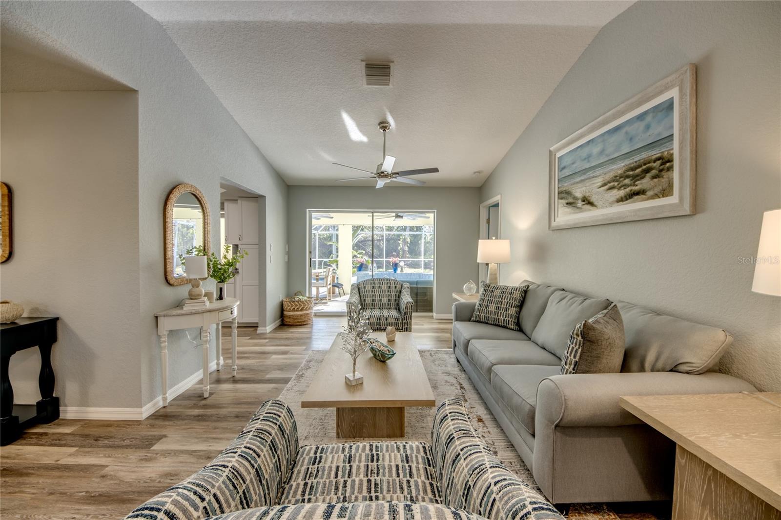 Stunning-Pool Home with an air conditioned Studio and less than 1/4 mile from a public Boat Launch! Discover the perfect place to call home in this beautifully remodeled coastal retreat in Port Charlotte! This spacious 3-bedroom, 2-bathroom home sits on a double lot and offers an incredible mix of indoor comfort and outdoor living. Located in a friendly, non-deed-restricted neighborhood, this property is less than 1/4 mile from a public boat launch, making it an ideal home for boaters and outdoor enthusiasts! Inside, the home boasts high ceilings, fresh coastal paint tones, and brand-new LVP flooring throughout. The chef’s kitchen features granite countertops, new cabinetry, and a breakfast peninsula, all overlooking the pool area. A spacious family room with backyard views and access to the lanai provides a cozy yet open living space. The primary suite is a private retreat with a grand walk-in shower with dual shower heads, double vanities, and a large linen closet. Sliding doors open directly to the lanai and pool, creating a seamless connection to the outdoor oasis. The split floor plan ensures privacy, with additional bedrooms offering comfortable accommodations for family or guests. Step outside to your private, screened-in heated pool with a soothing water feature, perfect for year-round relaxation. The nearly 1,000 sq. ft. outdoor space includes a large covered lanai ideal for entertaining, plus a charming gazebo for a quiet retreat. One of the standout features of this home is the air-conditioned 12' x 20' detached studio, providing additional flexible space—perfect for a home office, gym, art studio, or guest quarters. Additional features include a new roof, A/C, water heater, pool heater, and modern appliances, ensuring worry-free living. Conveniently located near shopping, dining, CoolToday Park, Warm Mineral Springs, and more, this home offers both tranquility and easy access to daily conveniences. Don't miss this opportunity to lease a one-of-a-kind property in an unbeatable location.