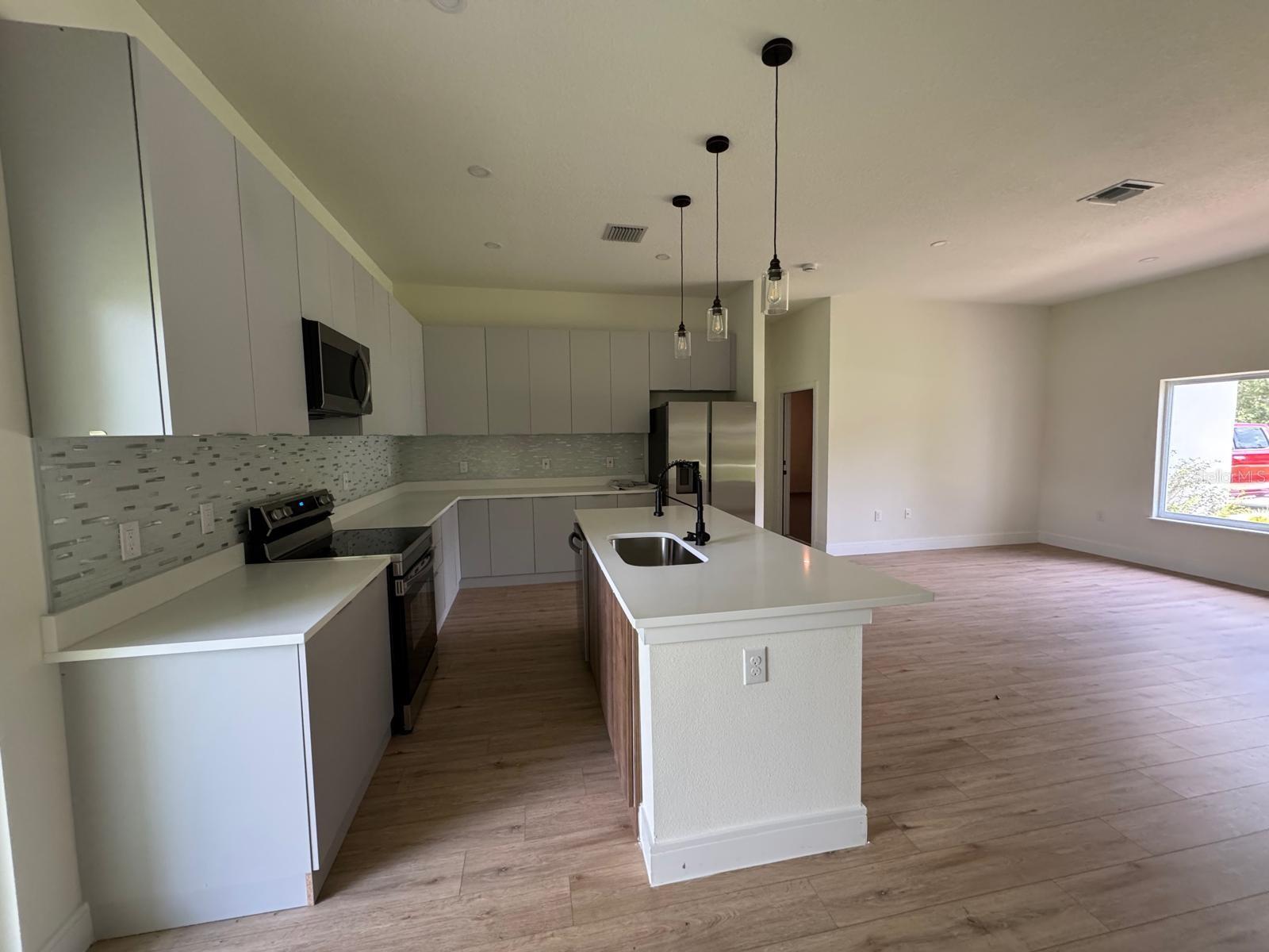 Not in a flood zone • No HOA • No deed restrictions This modern home offers the perfect retreat for those seeking quality, style, and leisure. The well-designed split floor plan features 3 spacious bedrooms, 2 full bathrooms, a 2-car garage and for peace of mind Impact windows and doors. Step inside to a naturally bright, open-concept layout between the living, dining, and kitchen areas. The gourmet kitchen is a true showpiece, boasting a functional center island, quartz countertops, modern backsplash, stainless steel appliances, and custom soft-close cabinetry. High ceilings enhance the sense of openness and refinement. The primary suite serves as a private sanctuary, offering a spacious walk-in closet and a luxurious en-suite bathroom complete with a water closet, dual vanities, and a large shower with premium finishes. The additional bedrooms are perfect for family or guests, while the second bath is elegantly designed to welcome visitors with style. Enjoy the Florida lifestyle outdoors on your covered lanai with a wet sink, ideal for relaxing or entertaining. Situated in a prime location, you’re just minutes from shopping centers, top-rated restaurants, and entertainment at Wellen Park, Spring Training facilities for the Tampa Bay Rays and Atlanta Braves, and leisure destinations like Sunseeker Resort and Fisherman’s Village. Outdoor enthusiasts will appreciate nearby golf courses, boat ramps, world-class fishing, nature trails, and a short 30-minute drive to the pristine Gulf beaches.