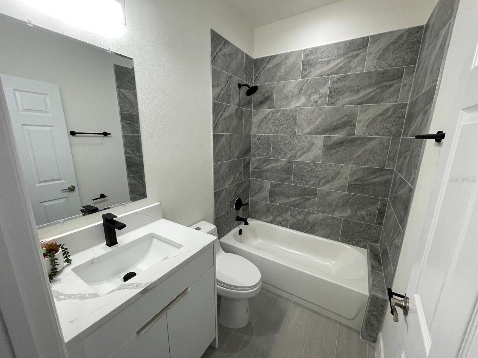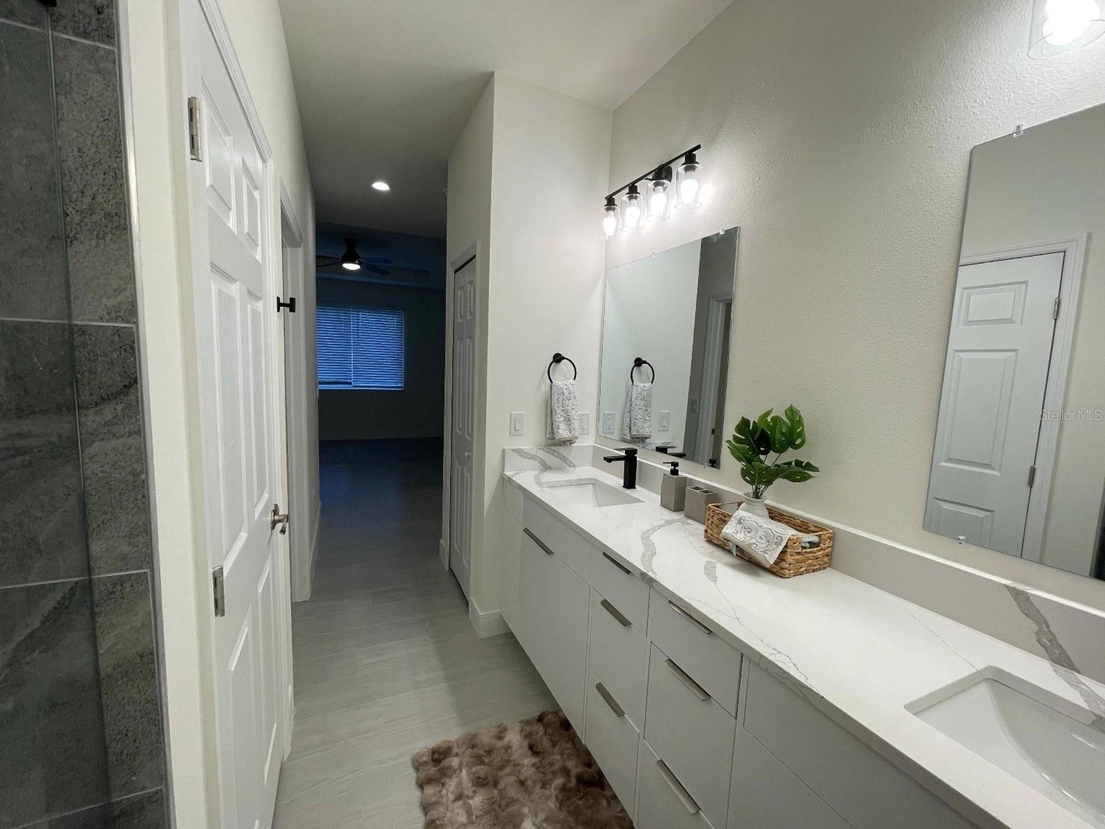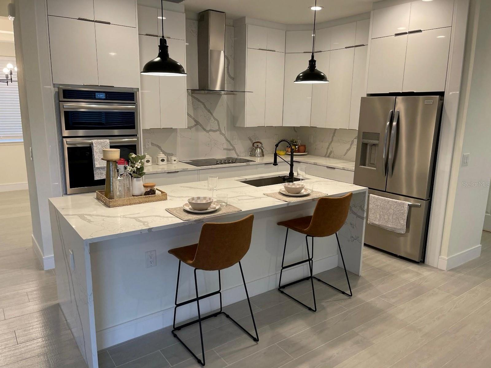 Welcome to your new spacious home, where every detail is carefully crafted for both style and practicality. As you step inside, you'll notice the elegant oversized tiles and sleek European style cabinetry that maximize storage space. This home offers 4 bedrooms and 2.5 bathrooms, with one bedroom serving as a versatile space perfect for a nursery or office. The kitchen is a standout feature, boasting luxurious quartz countertops, a matching full quartz backsplash, and a stunning waterfall island that transforms meal prep into a delightful experience. The consistent design flow extends to the bathrooms, where countertops mirror those in the kitchen, ensuring a cohesive look throughout. Equipped with convenient amenities like an oven and microwave combo, cooktop, and hood, cooking is a breeze. With plenty of space and ample storage, keeping culinary essentials organized is effortless. Designed for gatherings and memorable meals, this kitchen truly is the heart of the home. Don't miss the chance to experience modern living at its finest. Schedule a showing today and discover the magic of this exquisite home for yourself.