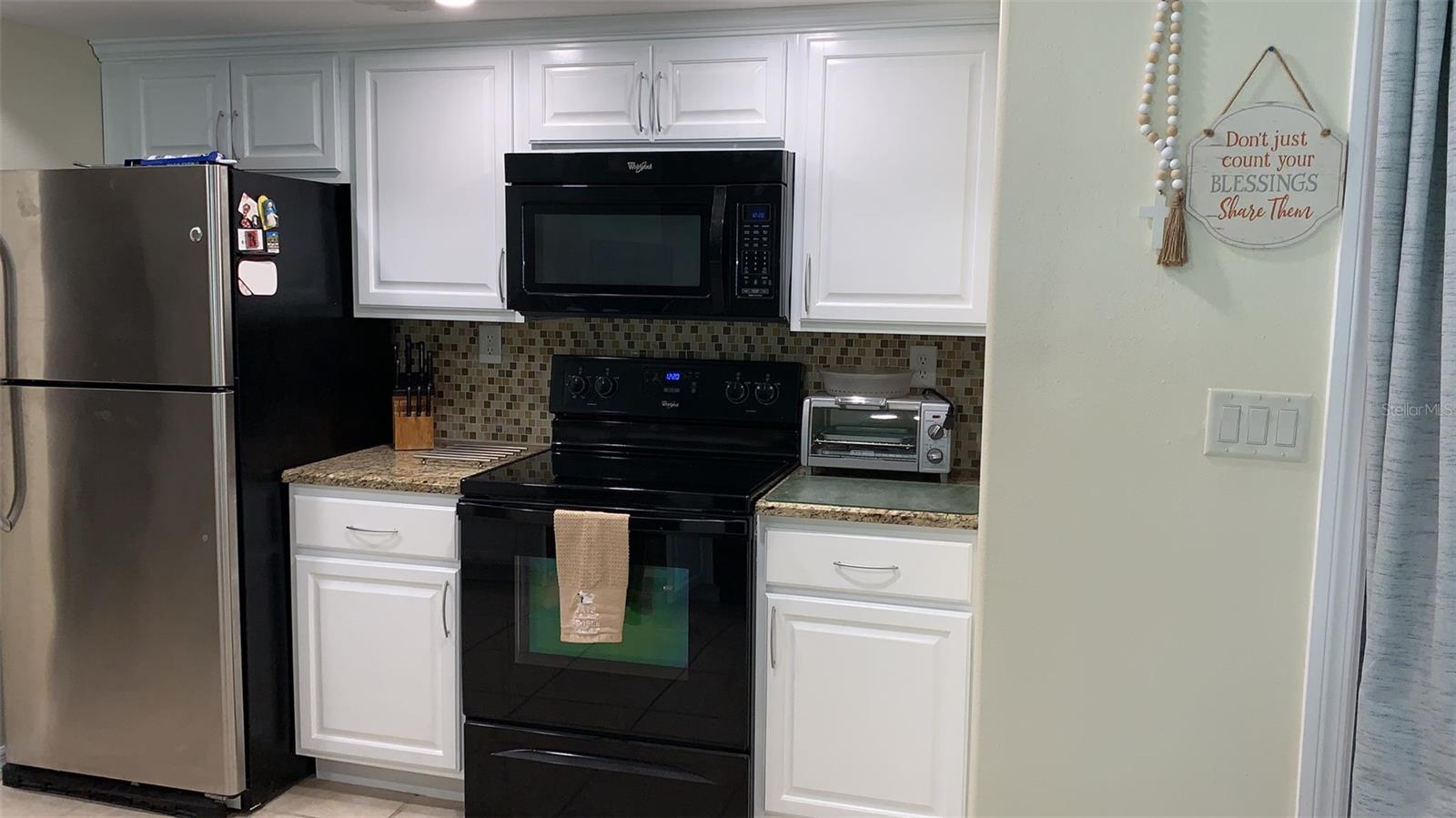 Welcome to this beautifully updated 2-bedroom, 2-bathroom home with a 1-car garage, nestled in a quiet and friendly neighborhood. Freshly painted and thoughtfully designed, this home is perfect for relaxed Florida living. Step inside to find a bright, open layout featuring stylish tile flooring throughout, modern recessed lighting in the kitchen, and sleek granite countertops. French doors from the dining area lead to a spacious, screened lanai—ideal for entertaining or enjoying your morning coffee—overlooking a generous, private backyard. Additional highlights include a large pantry, stackable washer and dryer, and impact-resistant windows (with only one exception). The roof is just about 1 year old, offering peace of mind for years to come. Whether you're a first-time buyer, downsizing, or looking for a winter retreat, this home has everything you need—comfort, style, and low maintenance living!