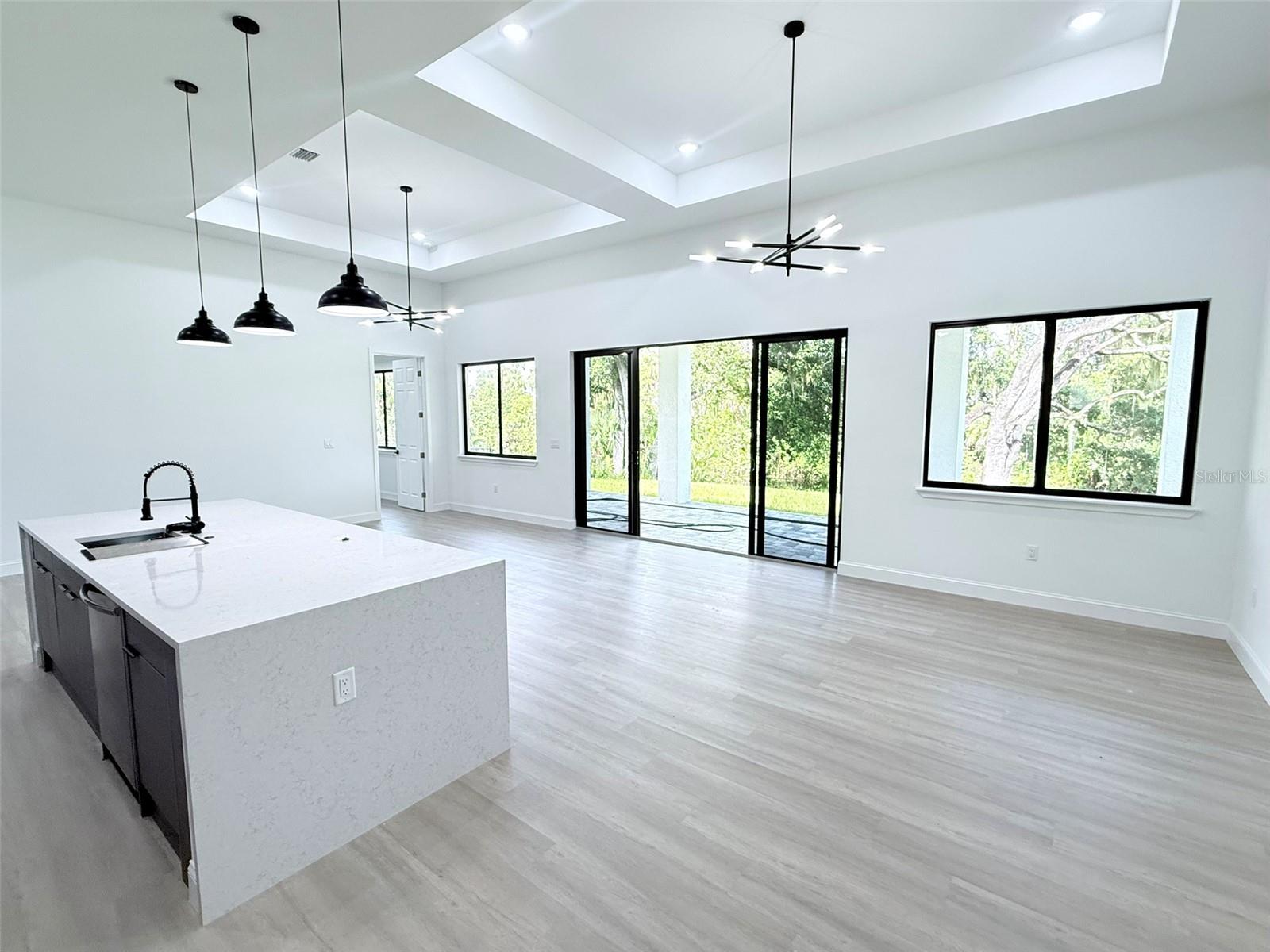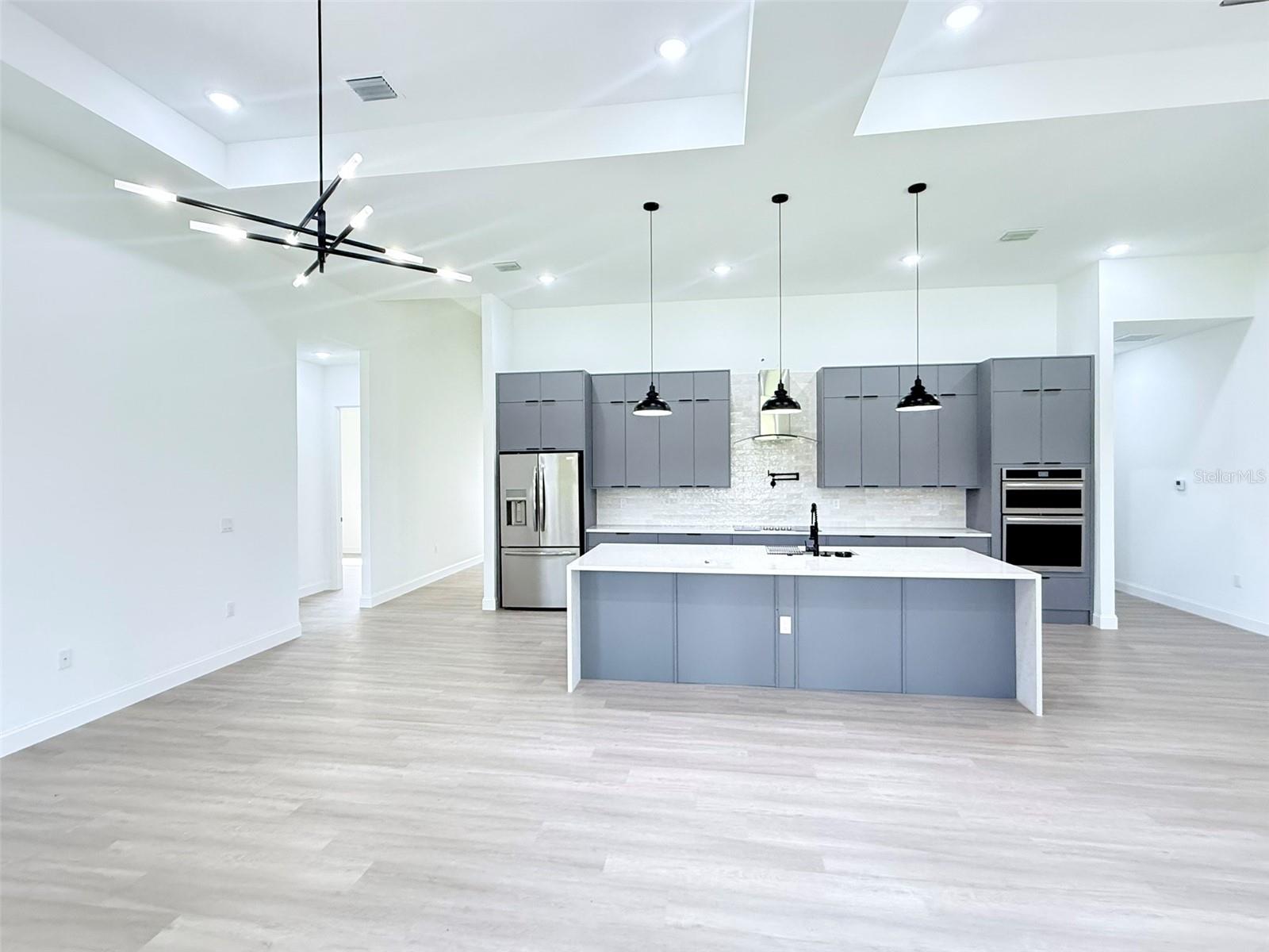 Introducing a newly constructed four-bedroom, three-bath residence on a freshwater canal in the heart of Port Charlotte. Spanning 2,153 square feet of living space and totaling 3,099 square feet, this home combines modern architecture with function and refined detail. The open-concept floor plan seamlessly integrates the living and dining areas, creating an inviting space for daily living and entertaining. A gourmet kitchen anchors the interior, featuring state-of-the-art stainless steel appliances and luxury finishes. High-quality vinyl flooring runs throughout, complementing soaring 10- 12- and 13-foot ceilings that enhance the home's scale and light. The primary suite is a private retreat with a spa-style bath including a soaking tub, walk-in shower, double vanity and an oversized walk-in closet. Additional features include a laundry room with sink and pre-designed layout for future home enhancements. Thoughtful exterior design includes modern elevation details, sliding windows, a metal and glass front door, soffit lighting in the rear area and strategically placed gutters. The home sits on a site ready for a pool and has summer kitchen connections ready and water softener installed. Built in 2025 with an emphasis on craftsmanship and contemporary design, this property presents a rare opportunity to own a new construction home in an established area of Port Charlotte.