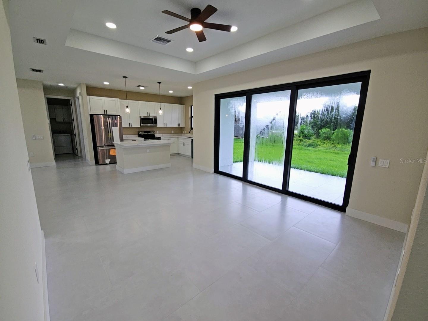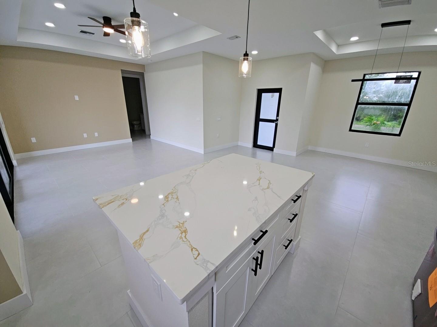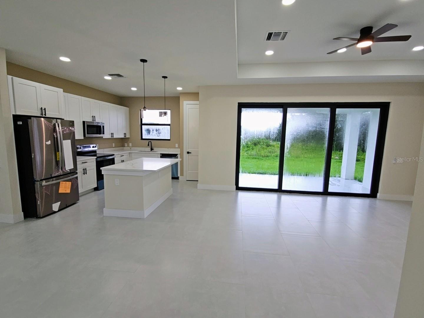 Brand new 4 bedroom, 2 bathroom home with 2 car garage, located in the very desirable South Gulf Cove community. This beautifully finished residence offers a spacious open-concept layout, perfect for modern living. The master suite features a luxurious ensuite bathroom and a generous walk-in closet. Elegant porcelain tile flooring runs throughout the home, complemented by stylish ceiling fans and contemporary lighting fixtures. The kitchen is a chef’s dream with granite countertops, a large island, and stainless steel GE appliances. A dedicated laundry room with washer and dryer adds everyday convenience. Impact windows provide peace of mind and energy efficiency. Situated on a 10,000 sq ft lot, the property offers plenty of room for future addition, whether a pool, garden, or outdoor entertainment space. The rear patio is ideal for relaxing or enjoying time with family in the Florida sunshine. HOA membership is optional and not a requirement in this community.