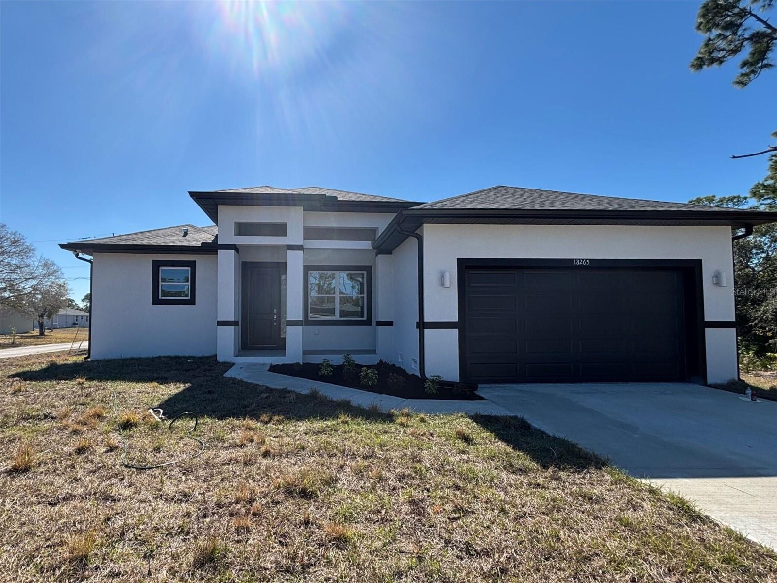 This elegant 4-bedroom, 2.5-bath home offers 1,695 sq.ft. of living space with an open-concept design and modern finishes throughout. The kitchen features a beautiful quartz waterfall island, sleek cabinetry, and brushed nickel fixtures that add a contemporary touch. The spacious living room includes an electric fireplace, creating a cozy and stylish gathering space. The primary suite offers a luxurious bathroom with a freestanding tub, dual sinks, and marble-style tile finishes. Enjoy outdoor living under the covered lanai, and the convenience of a double-car garage. With a total construction area of 2,412 sq.ft., this home combines functionality and modern design perfectly. Additional features include a SMART KEY system for enhanced security and the peace of mind that comes with a 2-10 HOME BUYERS WARRANTY. Don’t miss out—schedule a showing today!