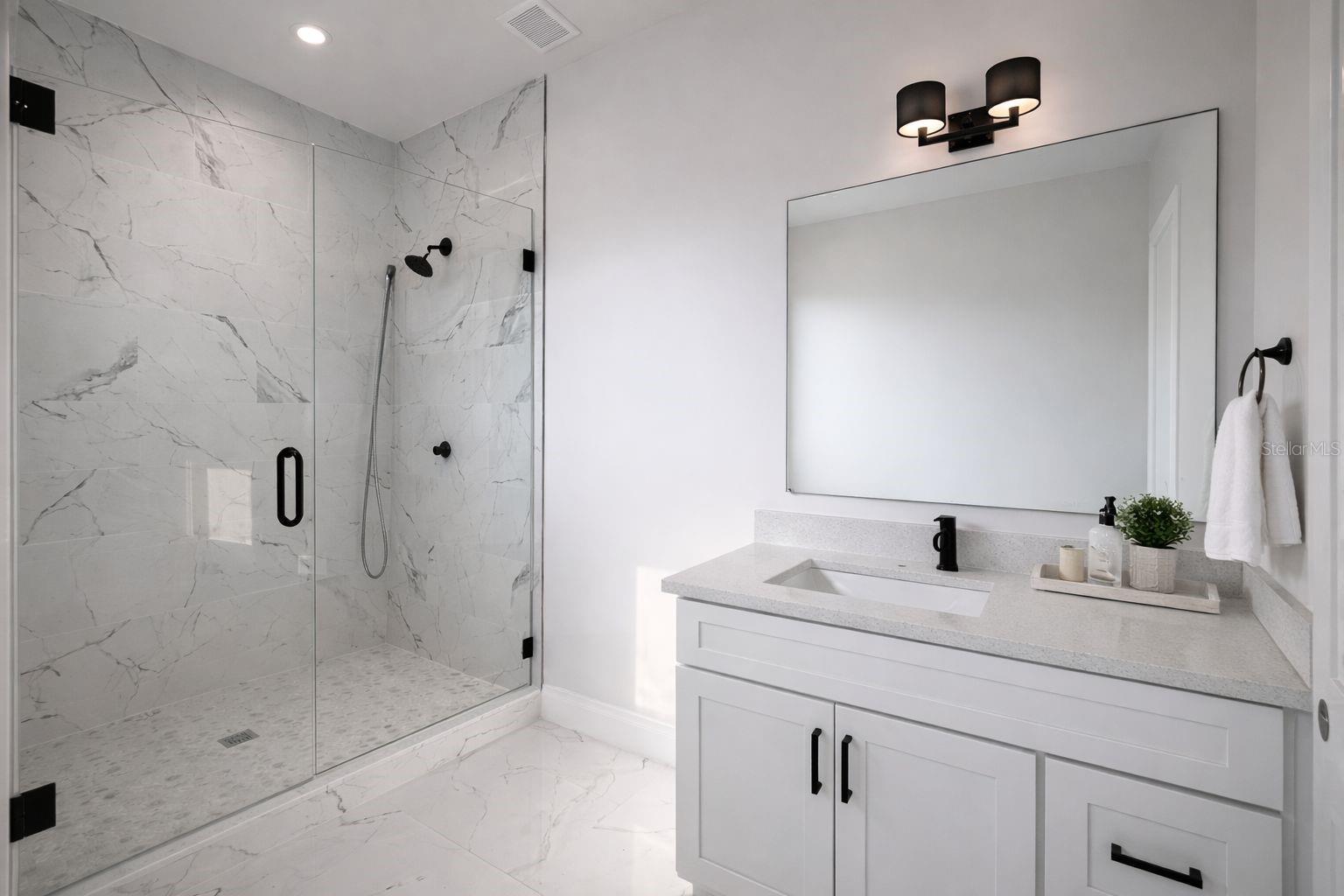 Beautiful 4-bedroom, 3-bathroom home offering quality construction, modern finishes, and a thoughtfully designed layout. Upon entry, you are welcomed by large-format porcelain tile flooring that flows seamlessly throughout the main living areas, creating a clean and sophisticated look. The open floor plan is enhanced by soaring ceilings that bring in natural light and provide an impressive sense of space. Tray ceilings in both the primary suite and the main living area add architectural detail and refinement. The kitchen features a waterfall stone island that serves as a stylish focal point, along with abundant cabinetry providing generous storage and functionality. The primary suite offers a spacious retreat, complete with a spa-style bathroom featuring a freestanding soaking tub. A highly desirable layout feature includes direct access from the walk-in closet to the laundry room, adding convenience to everyday living. All exterior windows and doors are hurricane impact-rated, providing added protection, security, and potential insurance benefits. Step outside to enjoy a beautiful private pool and a fully finished outdoor area with modern pavers extending through the driveway, lanai, and backyard, creating a cohesive and upscale exterior design. A spacious 3-car garage offers ample room for vehicles, storage, or recreational equipment. This home combines modern design, smart layout, and durable construction in a well-executed and highly functional package. Step outside to your private backyard oasis featuring a beautiful pool — perfect for relaxing, entertaining, and enjoying Florida living year-round.