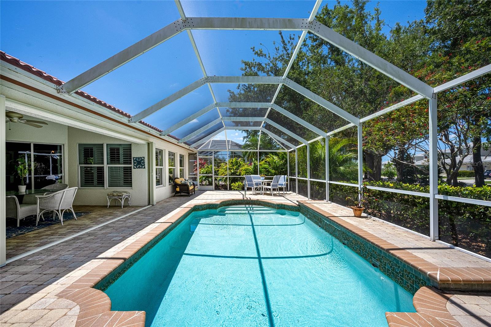 Stunning 2-Bedroom Retreat in Exclusive Port Charlotte/Riverwood Gated Golf Community! Discover Resort-Style Living in This Impeccably Updated 2-Bedroom, 2-Bathroom Home, Nestled Within The Prestigious Royal Oaks Neighborhood of Riverwood! Spanning 1,762sq. ft, This Move-in-Ready Gem Boasts A Versatile Bonus Room, Perfect For A Home Office, Hobby Space, or Guest Retreat! Modern Upgrades and Luxurious Features Perfect For Buyers Seeking Comfort and Elegance! Step Into a Spacious Open-Concept Living Area That Flows Seamlessly Into a Large Kitchen, Complete With Solid-Surface Countertops, Large Island, Newer Stainless Steel Appliances, and Plenty of Cabinetry—Ideal For Entertaining. The Expansive Master Suite Is a True Sanctuary, Featuring a Walk-in Closet, a Stand-Alone Tiled Shower, and a Separate Soaking Tub For Ultimate Relaxation! Outside, Your Private Oasis Awaits! Enjoy a Screened-in Lanai Overlooking a Sparkling In Ground Pool, Surrounded by Newly Resurfaced Pavers (2024) For a Polished, Low-Maintenance Look. Perfect For Year-Round Enjoyment, This Backyard is Your Slice of Paradise. Recent Upgrades Include a New Roof (2024), New Hot Water Heater (2025), and New HVAC System (2024), Ensuring Peace of Mind and Energy Efficiency. New (2025) Accordion Hurricane Shutters! Located in a Sought-After Gated Golf Community, You’ll Have Access to World-Class Amenities, Including, Golf Course, Clubhouse, Tennis Courts, Fitness Center, Pickle Ball Courts, Library, Plus More! Close to Tampa Bay Rays and Atlanta Braves Spring Training Facilities, Gulf Beaches, Punta Gorda, Englewood and Boca Grande! Ideal For Retirees, Snowbirds, or Anyone Craving a Low-Maintenance, High-Quality Lifestyle. Priced to Sell—Don’t Miss Your Chance to Own This Meticulously Maintained Home! Schedule a Showing Today.