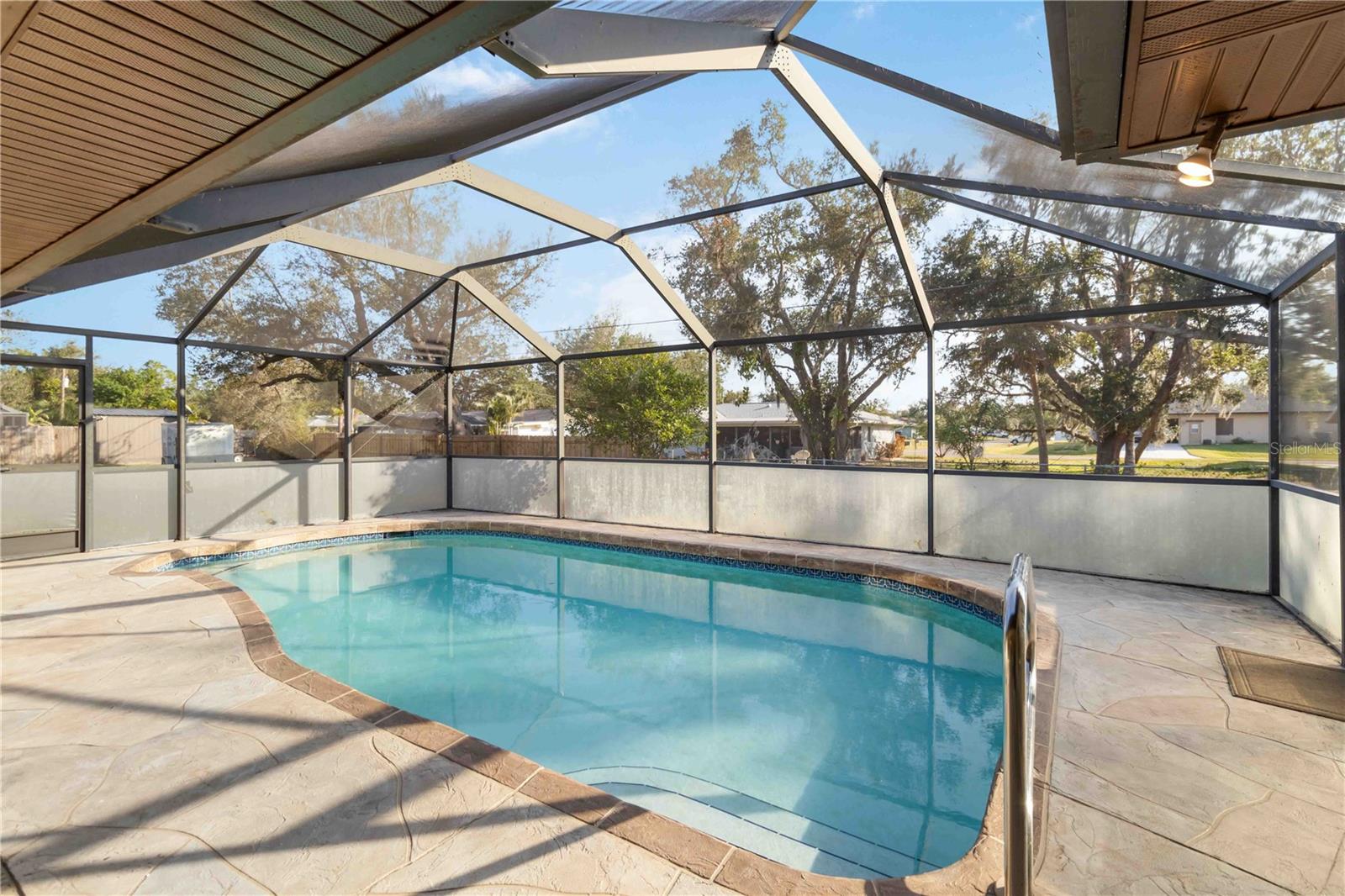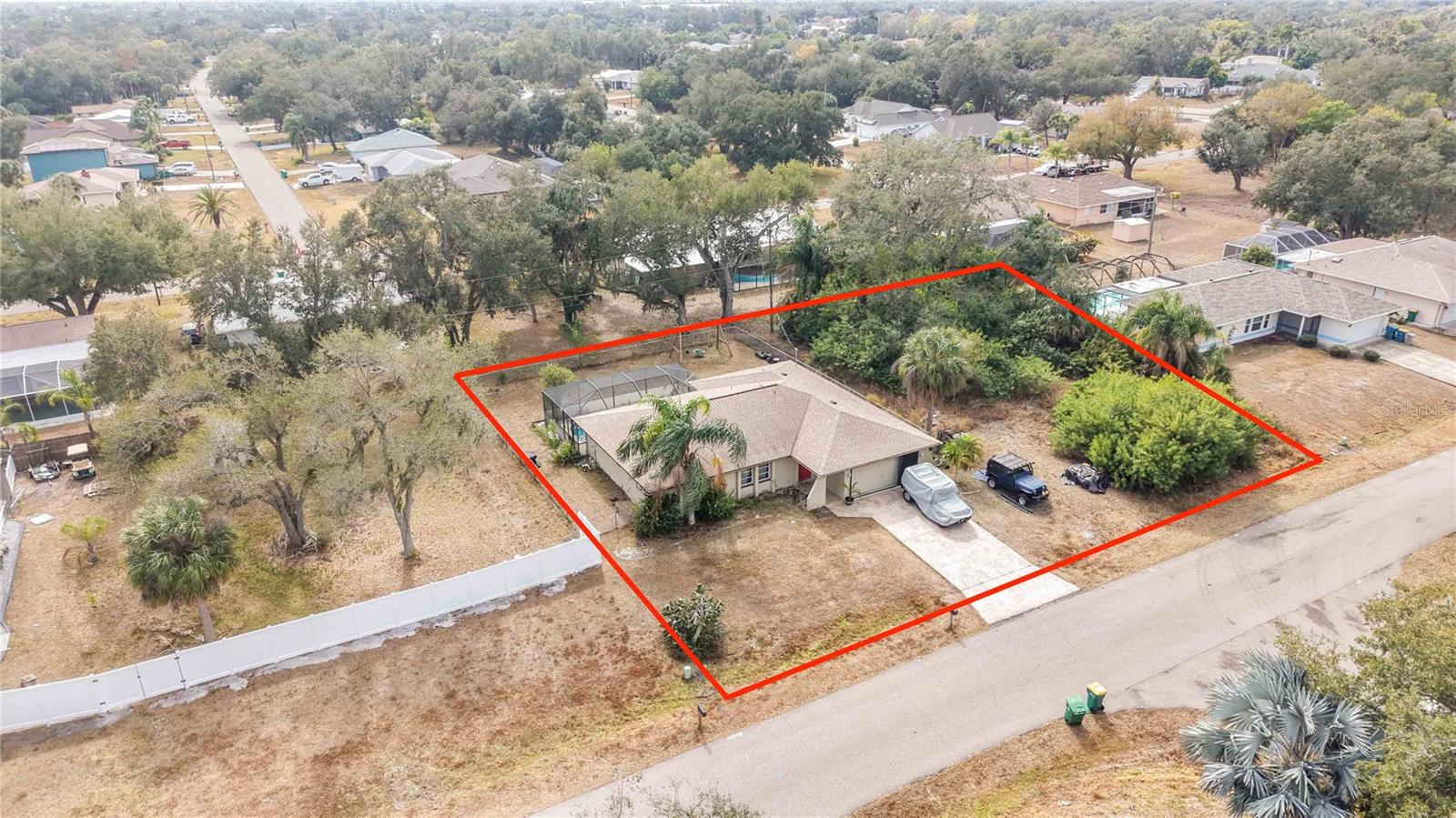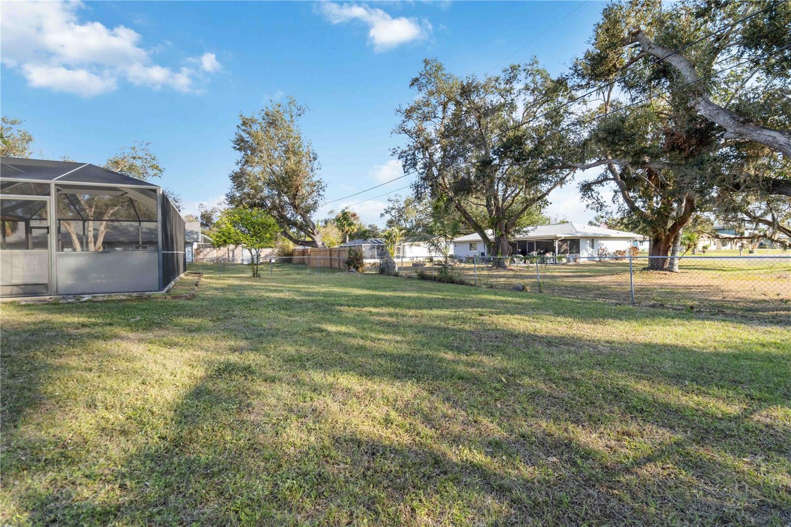 Spacious and private, this 3-bedroom, 2-bath, 1,636 sq ft home in Port Charlotte sits on a double lot (~0.46 acres) with no direct neighbors, offering a serene retreat in a friendly neighborhood. The split-bedroom layout provides privacy for the master suite, while high ceilings and open living areas create a bright, airy feel throughout. Recent updates include new LVP flooring in the bedrooms (2025), a fresh coat of interior paint throughout, a brand-new washing machine (2025), roof (2022), and central AC (2016). The 2-car attached garage adds convenience and storage, while the private pool and backyard provide the perfect space for relaxing or entertaining. The second lot offers a buildable space for another home, a shop, a parking pad, or an extra-large yard, adding versatility and long-term potential. This home combines functional living with outdoor enjoyment, making it a rare find in Port Charlotte — ideal for those seeking privacy, space, and flexibility.