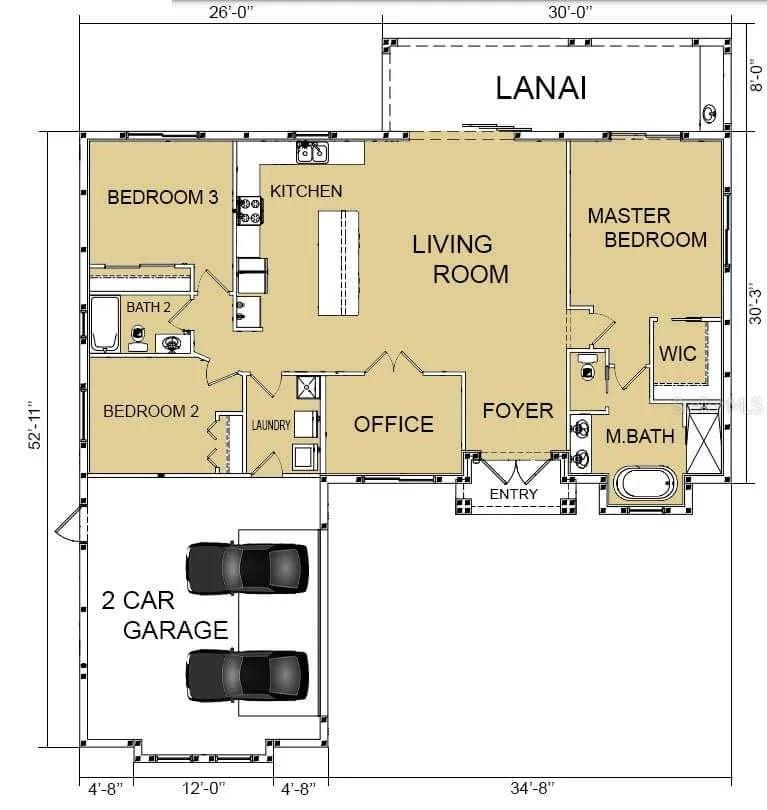 Pre-Construction. To be built. Introducing a forthcoming luxury residence, anticipated for completion in 12 month from effective date. This exquisite 3-bedroom, 2-bathroom home offers the flexibility of an additional room suitable for either a dining area or a home office. Upon entering, you'll be greeted by the grandeur of 12-foot ceilings in the living area and master bedroom, creating an expansive and inviting atmosphere. Throughout the rest of the house, 10-foot ceilings maintain a sense of spaciousness and elegance. A two-car garage ensures convenient parking and ample storage space for your needs. The thoughtful inclusion of impact windows throughout the property provides both safety and peace of mind. Step outside to a charming lanai, perfect for enjoying the outdoors in comfort and style. If desired, the option to add a pool, complete with a screened enclosure and deck, is available for an estimated cost of approximately $60,000. Furthermore, this property offers a range of customization possibilities for finishes, allowing you to tailor your dream home to your exact specifications. Current price includes price of land, permits, plans and estimated construction cost based on current labor and material prices.
