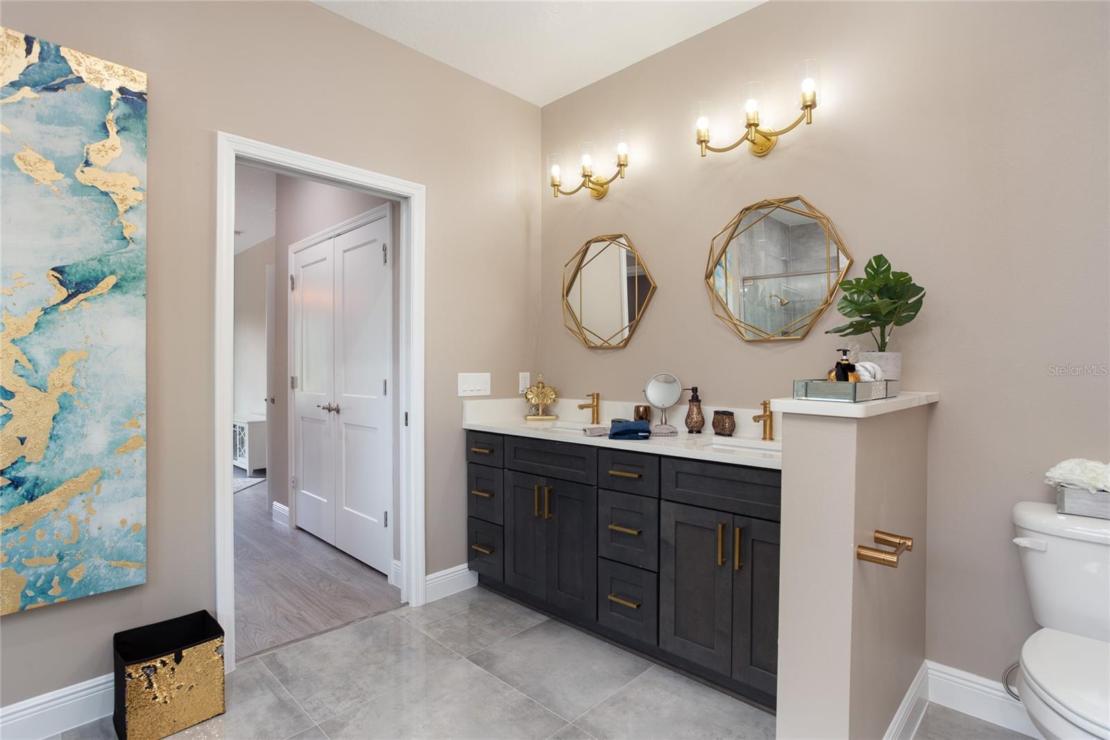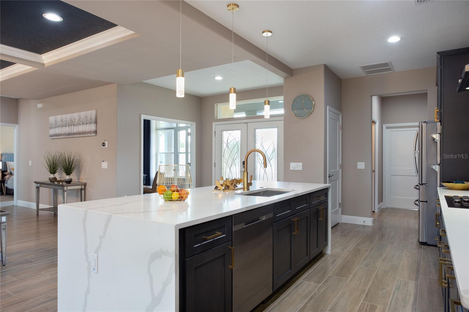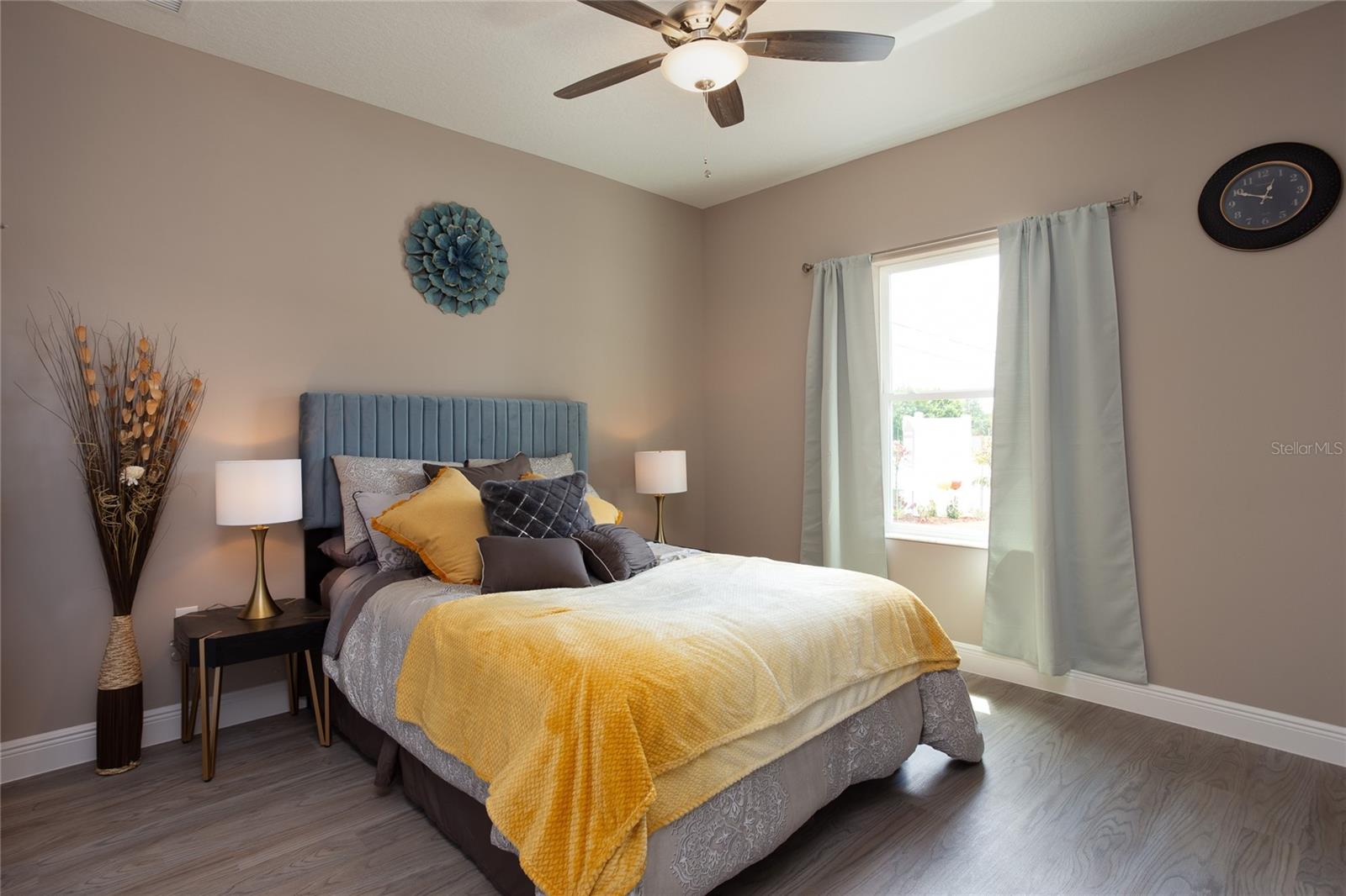Under Construction. This gorgeous home in South Gulf Cove is projected to be completed by the end of the year. The Villa Porto features a nice size covered front porch to the grand double door entry with an open floor plan, 3 Bedrooms, enclosed office, 2 full baths with a powder bath, with 2249 square feet, 2 car over-sized garage, large open kitchen with 7' island, soft close cabinetry, 42'' upper cabinets, granite counter tops, large pantry, designer tile back-splash, stainless appliance package with double door fridge included. Other features include a large laundry room with additional storage closet, 9'4'' ceilings, LED recess lighting & trendy lighting fixtures, plus hard surface flooring throughout and 5" base boards. The owners suite has a huge luxury walk in shower with tile on the floor, walls & decorative accents, double vanity with granite counter tops and 2 closets. Don't overlook the large windows in all rooms and a 3 panel sliding glass door in great room to provide plenty natural lighting. From the great room you'll see the large truss covered porch and nice size back yard. The home also has a garage door opener, coach lights, a 50-gallon energy efficient water heater, 16 seer AC unit, R38 insulation and 30 year architectural shingles. There is a furnished model of the same floor plan two doors down from this home if you want to see the completed home when you visit this one under construction. Seller incentives! Room Feature: Linen Closet In Bath (Primary Bedroom).