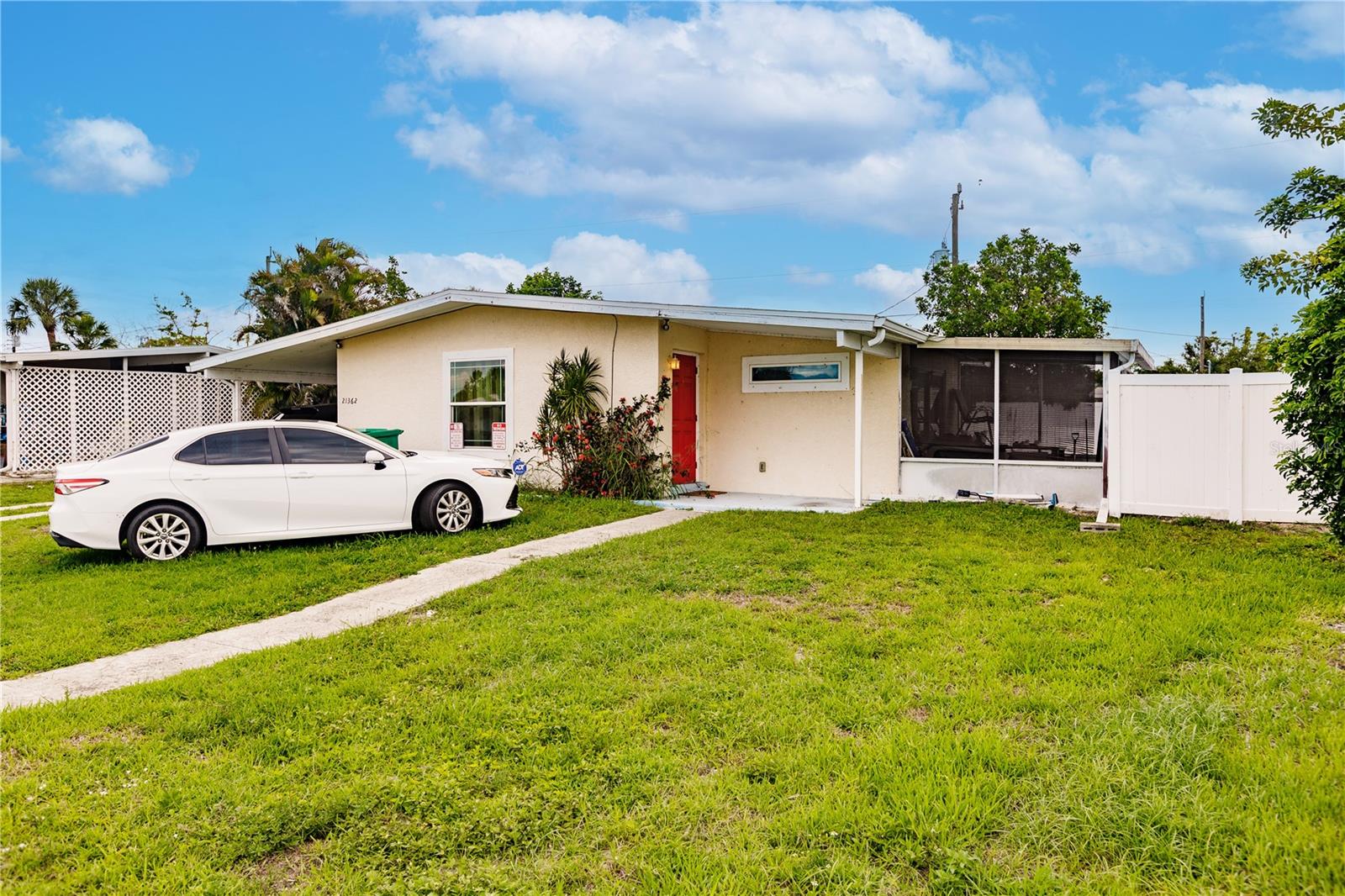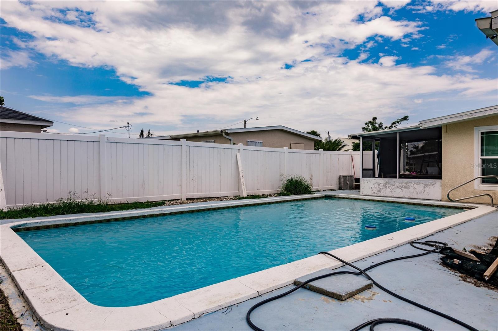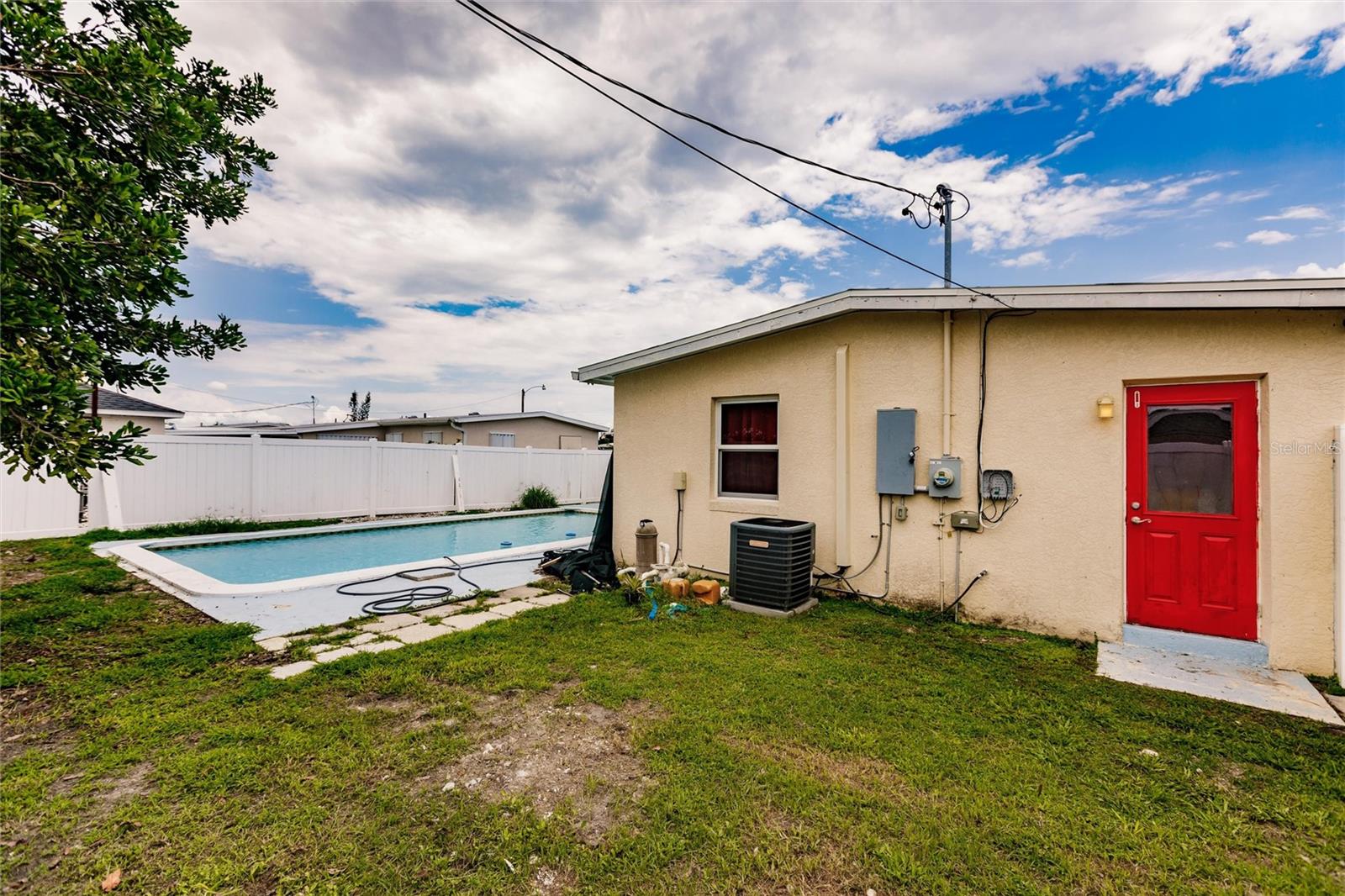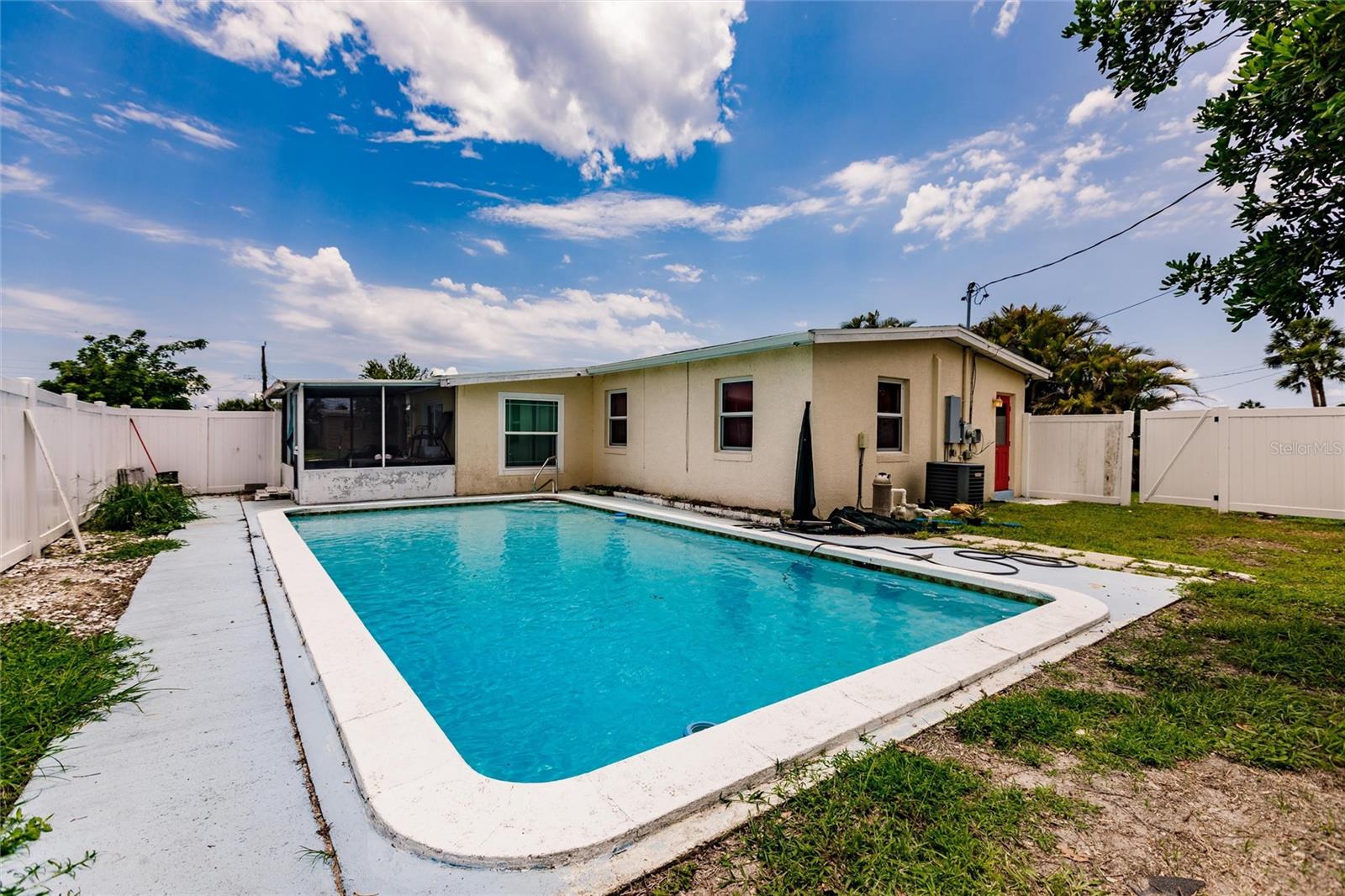 New interior photos added! Affordable POOL home in a quiet neighborhood! Two bedroom 1 bath and an office space off living room which has potential for an expansion/addition of a third bedroom. Potential 2nd bathroom off the washer dryer area. Spacious Screened in lanai and a carport . Kitchen is updated with granite countertops and appliances included .Tile floors! Updated Bathroom! Easily build your more sweat equity. Enjoy the backyard from your lanai or take a swim on your private gunite pool.Close to all amenities. Minutes to hospital,groceries ,restaurants and shopping.Pool has been recently resurfaced . Recent: 06/09/2023 : NEW