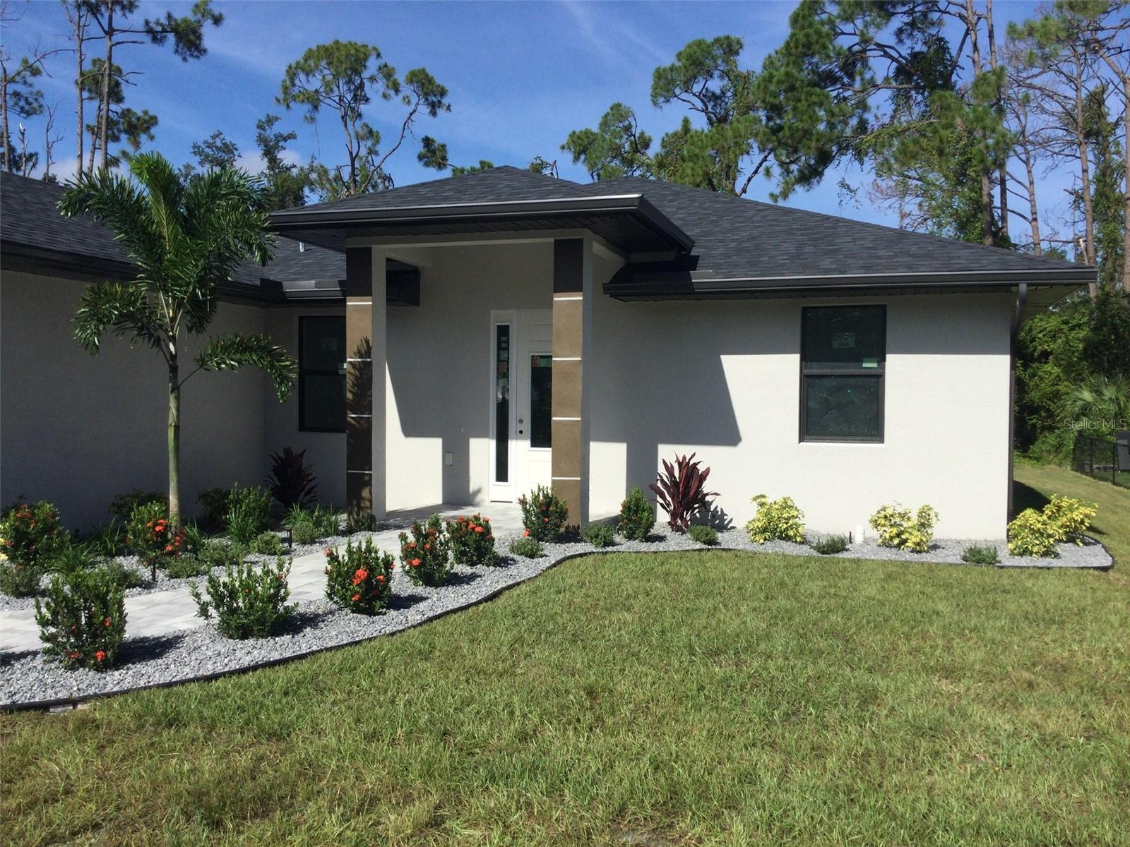 Under Construction.NEW CONSTRUCTION 2024 ! This Luxury high-end contemporary new construction home offers a combination of exquisite design and meticulous European Craftsmanship. The great room with a height of 13' cathedral ceiling & 9.4' high walls serves as centerpiece for the 4 bedroom /2 bathroom /almost the size of a 2 1/2 GARAGE (505 Sqft) with 9.4' high ceiling!! The kitchen equipped with high quality stainless-steel appliances, back splash, soft close wooden cabinets and granite countertop & kitchen island. This home features HURRICANE IMPACT WINDOWS, SLIDERS & ENTRANCE DOOR! SATORI CARRARA high quality Italian 24"x 24"porcelain tiles throughout THE ENTIRE HOUSE with "PROFLEX MAXXIM SIM-40" UNDERLAYMENT which is especially designed to be used to eliminate the transmission of cracks and excellent use as MOISTURE VAPOR PROTECTION!! HVAC CELING IN & RETURN VENTS EACH ROOM! MOEN faucets, 5"-1/4-inch baseboard molding, Irrigation system ENTRANCE FLOWER BED ONLY!, BRICK PAVERS driveway, entrance & Lanai, OVERSIZE garage with EPOXY FLOOR COATING & electrical garage door opener. USDA Loan Map Port Charlotte shows this property is in an ineligible area for USDA funding! OPTIONAL OPTIONAL OPTIONAL WE BUILT AN POOL'S 27'x12' / 5' DEEP END/ POOL CAGE / PAVERS/ PEBBLE TEC SURFACES!