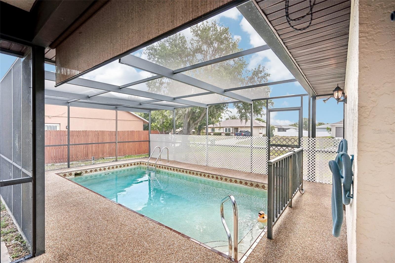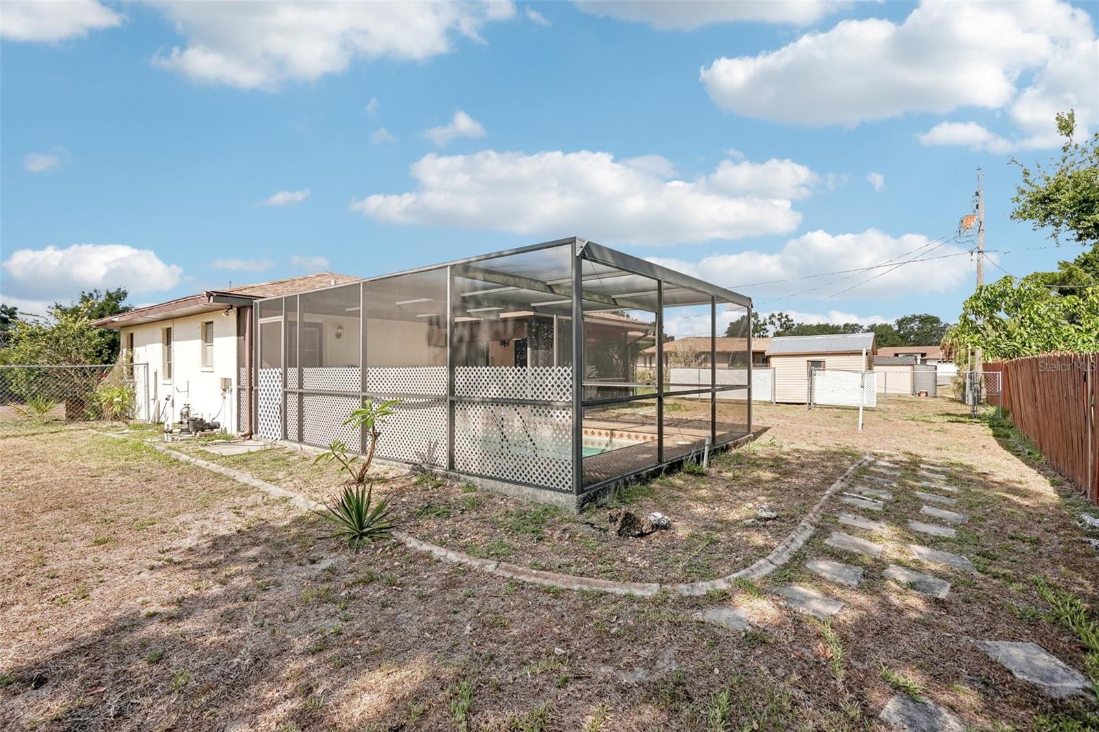 One or more photo(s) has been virtually staged. ****This move in ready pool home with a lanai has just been reduced $10,000 and the seller is offering a $5,000 seller concession to BUY DOWN the rate **** **Brand New Exterior Paint! Immaculate and inviting, this charming home is nestled in the heart of Port Charlotte, offering convenient access to all amenities. With a seamless open floor plan that effortlessly connects the living, dining, and kitchen areas to the outdoor lanai/pool space, this property is perfect for both relaxation and entertaining. Situated on a spacious corner lot with partial fencing, an outdoor storage shed, and a covered lanai overlooking the pool, this home offers endless possibilities for relaxation. The well-appointed kitchen features beautiful granite counters, ample storage (including a spacious shed), and a breakfast bar, while the primary bedroom boasts a generous walk-in closet and a convenient en suite bathroom with lanai access. On the other side, the second bedroom offers plenty of space and storage. The septic system was recently serviced/pumped in May 2024. The single-car garage, which includes a washer and dryer, provides ample storage. Don't miss the opportunity to experience this exceptional home for yourself!