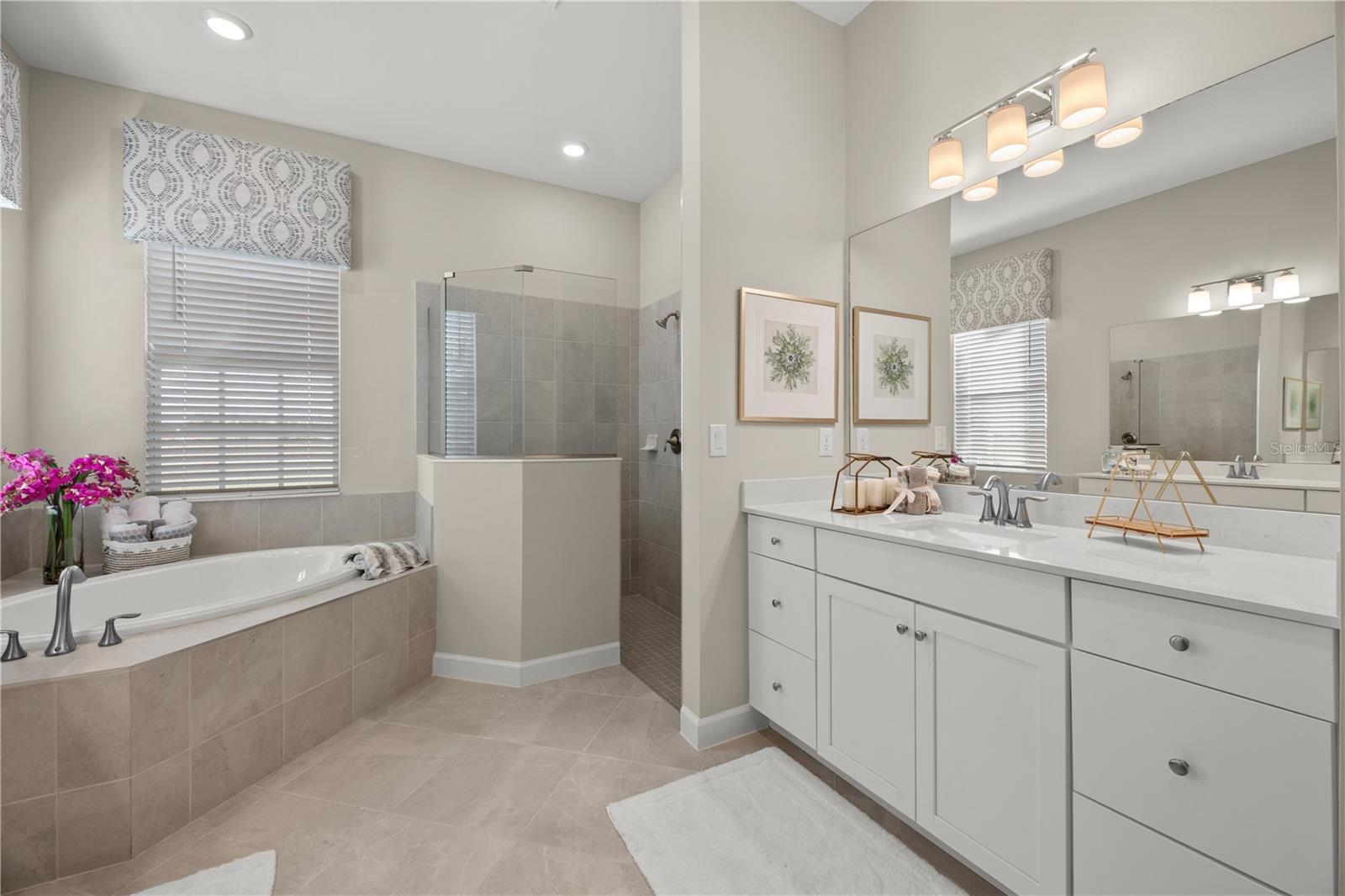 ONE OF A KIND!! THIS POOL HOME IS READY FOR YOU NOW!! The Oakmont II is a split-bedroom floor plan with 2,361 square feet of living space home featuring 3 bedrooms, a den and 2.5 bathrooms. The Owner's suite boasts a large walk-in closet, dual vanities & sinks, soaker tub and separate shower. The kitchen with breakfast nook is open to an expansive great room that transitions seamlessly to the covered lanai. 3-car garage for storage of the family’s biggest toys. Additional options include quartz countertops, porcelain tile throughout, upgraded cabinetry and appliance package. Rendering, photos & virtual tour are of like model and are used for display purposes only.
