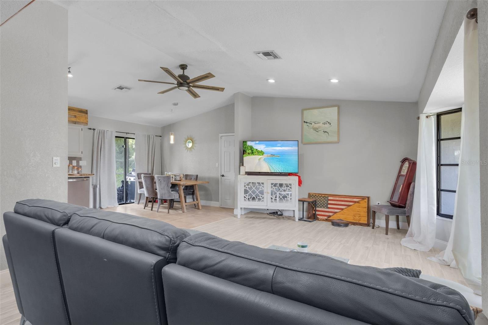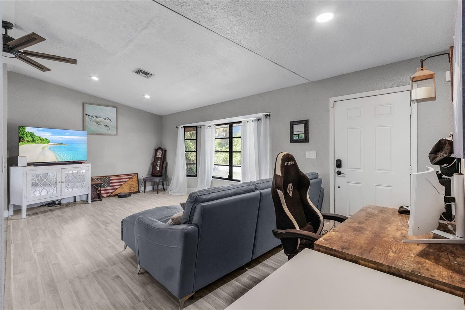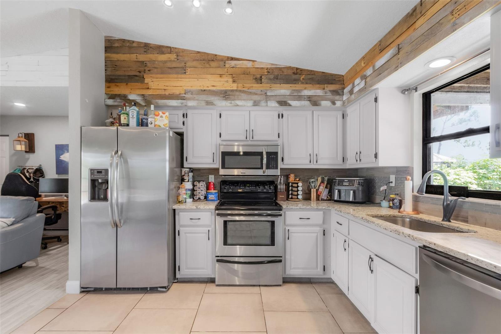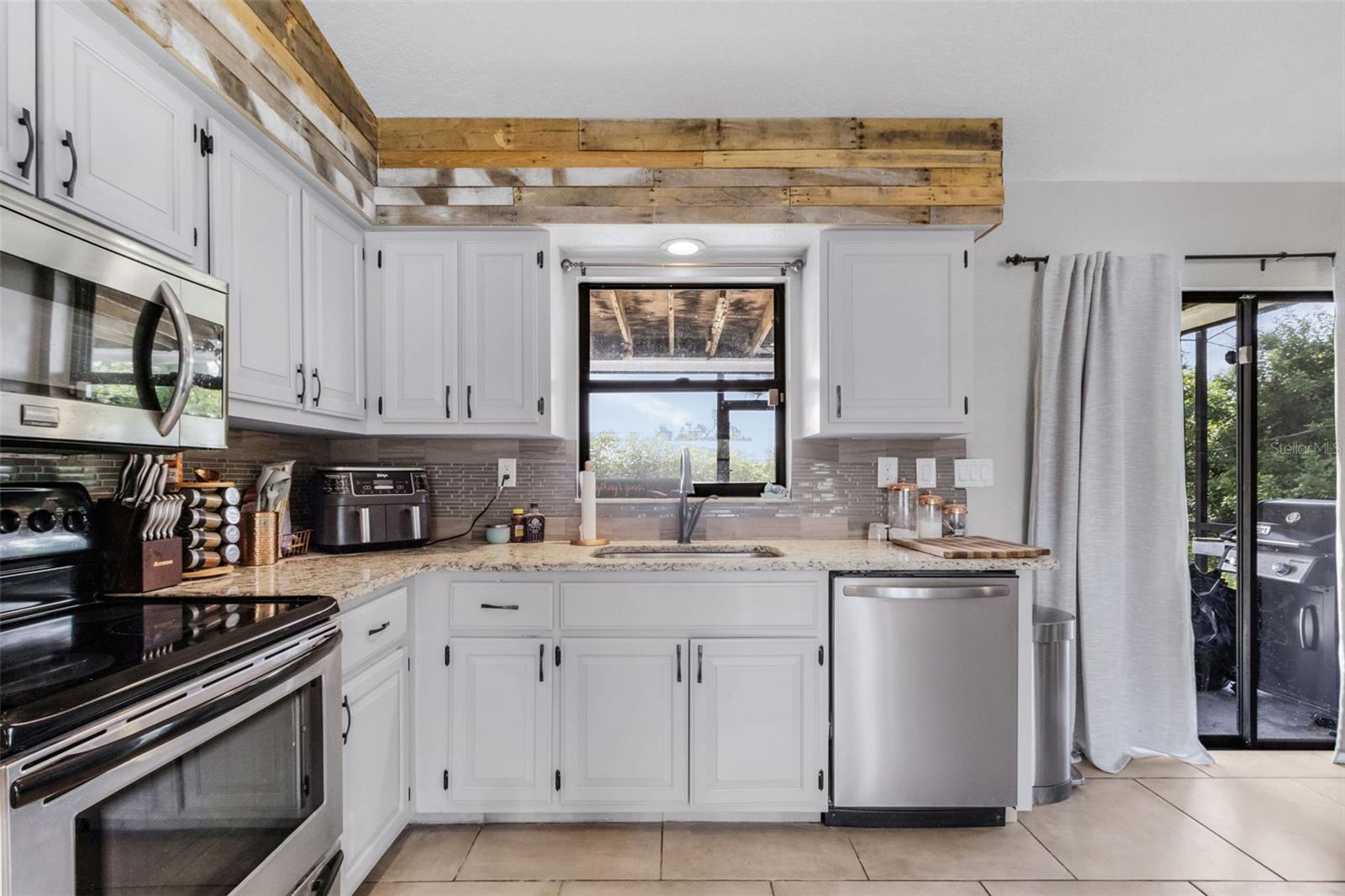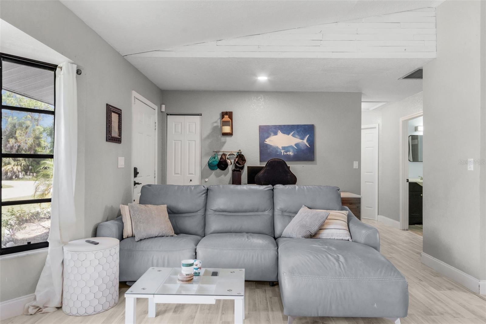 Short Sale. BANK APPROVED PRICE! READY TO CLOSE! No damage from Helene or Milton. Assumable flood policy at less than $800/yr. Welcome to this charming 2-bedroom, 2-bathroom, 1-car garage home that radiates warmth and comfort. Step inside to find an entryway leading to a spacious living/great room on your right. The modern aesthetic seamlessly flows into the open kitchen and dining area, which boasts white cabinets, stainless steel appliances, granite countertops, a stylish backsplash, and walls adorned with natural palette and white-washed wood details. The large master suite is a retreat, featuring an updated, bath with a walk-in shower. This expansive outdoor space is perfect for enjoying your morning coffee or evening cocktail. The spacious backyard offers endless possibilities for relaxation and entertainment. The extra-deep garage includes a laundry area and an additional exterior side door for added convenience. Recent updates provide peace of mind, including a new roof in 2023, an HVAC system installed in 2020, a newer water heater, and an updated electrical panel. Don't miss the opportunity to make this beautiful home yours. Call today for your private showing!