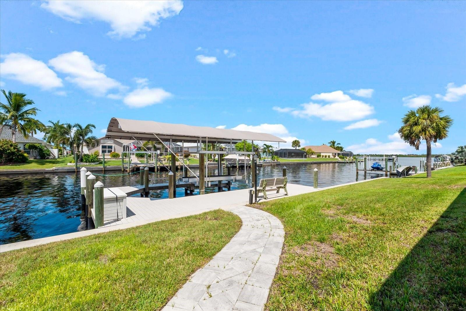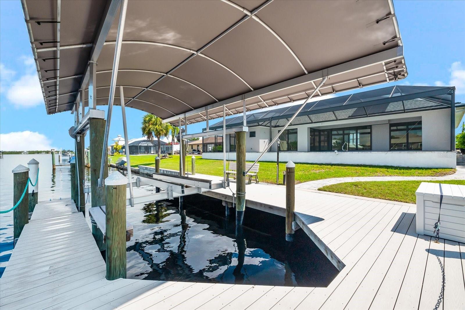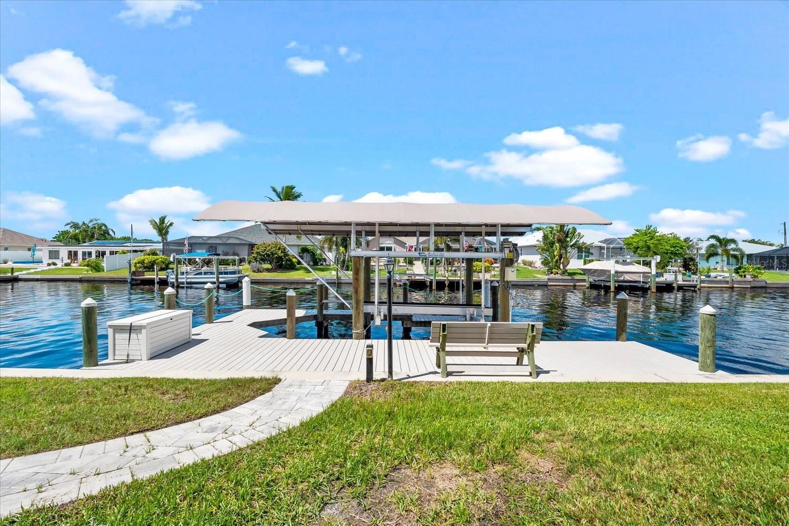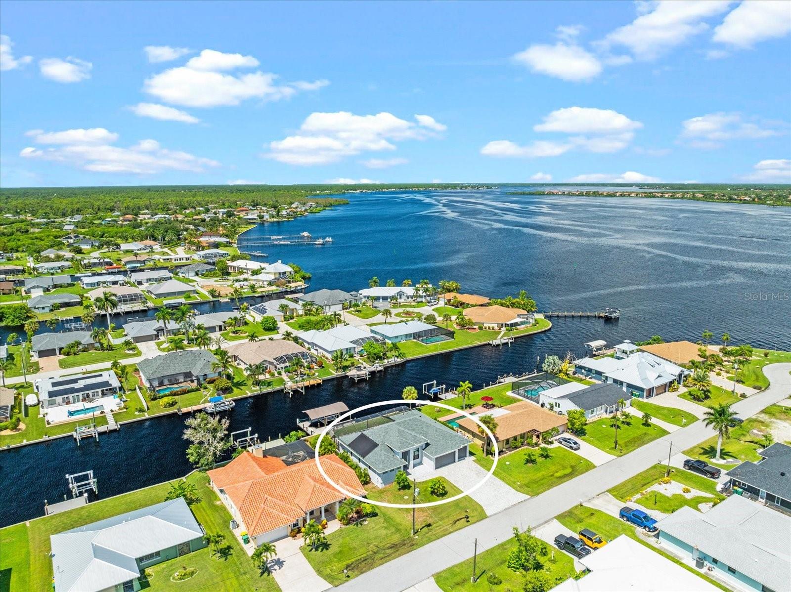 Offered below market value, this custom-designed waterfront residence captures the essence of Florida living. Ideally located near Manasota, Englewood, and Boca Grande beaches, the property also provides convenient access to shopping centers, dining options, golf courses, two spring training stadiums, scenic walking and biking trails at Cape Haze Pioneer Trail Park, and renowned fishing destinations. Situated on a riverfront cul-de-sac in the desirable Gulf Cove community, this 3-bedroom, 2-bathroom home includes a den and a spacious 3-car garage. The property features Gulf access via a canal and showcases direct views of the Myakka River from both the lanai and a 36' x 23' walk-around dock, complete with water and electric connections, maintenance-free composite decking, and an 8,000 lb boat lift with remote control. The interior offers a thoughtfully designed split floor plan for functionality and privacy. The chef’s kitchen includes recessed lighting, stainless steel appliances, solid wood cabinetry with custom drawer systems, quartz countertops, a double-sized pantry with sliding wood drawers, two built-in microwaves, two dishwashers, a motion-activated faucet, garbage disposal, built-in soap dispenser, and an oversized island over nine feet in length. The pool is equipped with both an electric heater and a solar heater, giving you year-round comfort and flexibility. Gulf Cove residents also have the option to join a voluntary property owners association, providing access to a private boat ramp and a community riverfront park along the Myakka River. Book your private showing today!