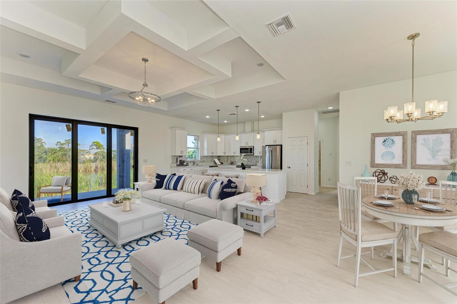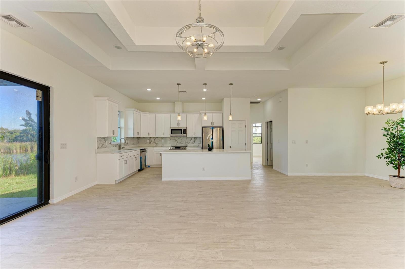 One or more photo(s) has been virtually staged. WOW YOUR STUNNING CUSTOM BUILT BRAND NEW 2025 LUXURY WATERFRONT GULF ACCESS HOME ALMOST 3,000SF TOTAL AREA IS HERE FOR YOU TO ENJOY YOUR FLORIDA LIFESTYLE! PLACED IN THE HEART OF SOUTH GULF COVE WITH CITY WATER AND CITY SEWER! SPACIOUS OPEN FLOOR PLAN WITH THREE BEDROOMS and BEAUTIFUL wood-plank TILES THROUGHOUT INCLUDING ALL BEDROOMS! As you walk through the Upgraded Main Entrance with Extended Drivwway, you will realize that you are HOME! Spacious Master Suite features High Tray Ceilings with His & Hers Large Walk-in Closets and All Upgraded Master Bath with Tiled Shower, Beautiful Granite Countertops and Double Vanities! Magnificent Waterfront View from Nearly Every Room with Large Sliding Doors taking you to the Outdoor Living to enjoy your Florida Living! Tall 10ft Tray Ceilings and 8ft Doors Throughout! Enormous Screened Outdoor Area for You to Entertain your Family and Friends! ALL UPGRADED AMAZING Lighting System is Modern and Stylish throughout this Amazing Home with ceiling fans, bar lighting! The Kitchen is a Masterpiece of its own including Beautiful Granite with Tall Kitchen Cabinets and Stainless Steel Appliances! Large Laundry Room! Oversized Two Car Garage for All Your Toys! Fiber Optic Internet Connected with 1 GIG High Speed Internet Option! Beautiful view and fishing in the backyard! NO CDD, No HOA and no Rental Restrictions! LOCATION, LOCATION, LOCATION! South Gulf Cove has 55 miles of Canals for you to enjoy! The public boat ramp, pavilion and park is only 10 minutes away. Close to Beautiful Gulf beaches like Boca Grande. Multiple golf courses are in the area! Local restaurants and Marinas are just around the corner. Shopping Centers and Amazing Restaurants within miles, Don't Miss this Beautiful Home. Schedule your Private Showing Today and ENJOY YOUR PIECE OF PARADISE !