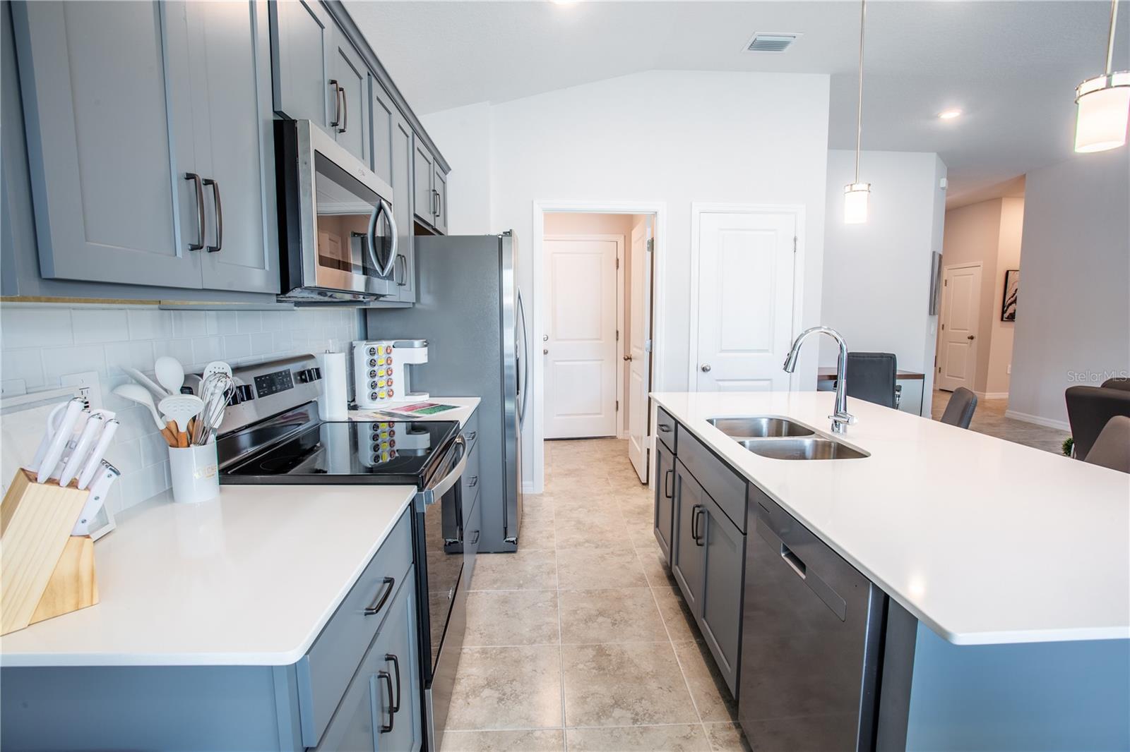 ***NEW CONSTRUCTION, NO WAIT, MOVE IN READY!*** Elevate your lifestyle with the opulence of the Lido floorplan presented by Carpenter Homes—a masterpiece within the Florida Living Series, certified by the Florida Green Building Coalition (FGBC). This home features 3 bedrooms and 2 full bathrooms. This dream home is designed and built to immerse you in luxury. As you enter, a beautiful kitchen welcomes you with an expansive, oversized island that seamlessly flows into the living and dining area. The finesse of soft-close, Shaker 36" cabinets, and upgraded Miami White quartz countertops add a functional touch of luxury to the kitchen. Kitchen upgrades include a Moen Sleek chrome kitchen faucet, garbage disposal, and sleek stainless steel energy efficient appliances. This home exudes sophistication with a vaulted ceiling and sliding glass doors! Additionally, Carpenter Homes provides an upgraded Oslo brushed nickel lighting package including pendants over the kitchen island, and vanity fixtures in both bathrooms, accenting the overall lighting design. Brushed steel finish ceiling fans in each bedroom, as well as the great room, helps to circulate air flow and keep you cool in the Florida weather. Complimenting the expansive living area is Magnisi 18"x18" ceramic tile flooring. The Owner's suite is a sanctuary of indulgence, showcasing tiled Magnisi Silver 8x12 walls in the shower and a large walk-in closet. The home boasts Magnisi Silver 8x12 upgraded tiled walls in the second bath/shower, Miami White quartz vanity tops, and Moen Genta LX chrome faucets and shower/tub trim kits. The ampleness of this home continues with a utility room, and thoughtful additions such as energy-efficient R-4.1 insulation on concrete exterior walls, Taexx tubes for pest control, and fabric hurricane shutters for every window. The Florida friendly landscaped yard is complemented by an irrigation system with rain sensor to help maximize efficiency. This secure community not only enhances the outdoor space's sophistication but also creates an ideal setting for a range of family activities, turning the backyard into a retreat for intimate family gatherings and treasured moments. The expansive 2-car garage, complete with garage door opener and two remotes, not only provides ample space for your everyday needs but also ensures the utmost convenience and versatility for all your storage and parking requirements. Step into a world where extravagance meets eco-conscious living—your forever home awaits, a testament to timeless elegance and modern sustainability. COMMUNITY Oak Hollow residents enjoy municipal water and sewer, underground utilities, and paved county sidewalks. We are within walking or biking distance to major grocery stores, restaurants, the public library, cultural center, and many shopping areas! Residents enjoy members-only access to the Oak Hollow Recreation Center which includes an exercise room, table tennis, heated swimming pool (no lifeguard), children's playground, tennis court, pickleball, bocce ball court, horseshoes, corn-hole, billiards room, basketball court, picnic tables shaded by beautiful old oak trees, a lending library, and many social events throughout the year!
