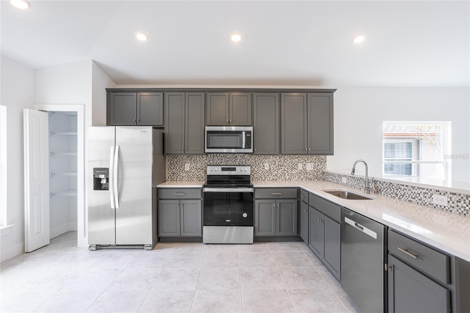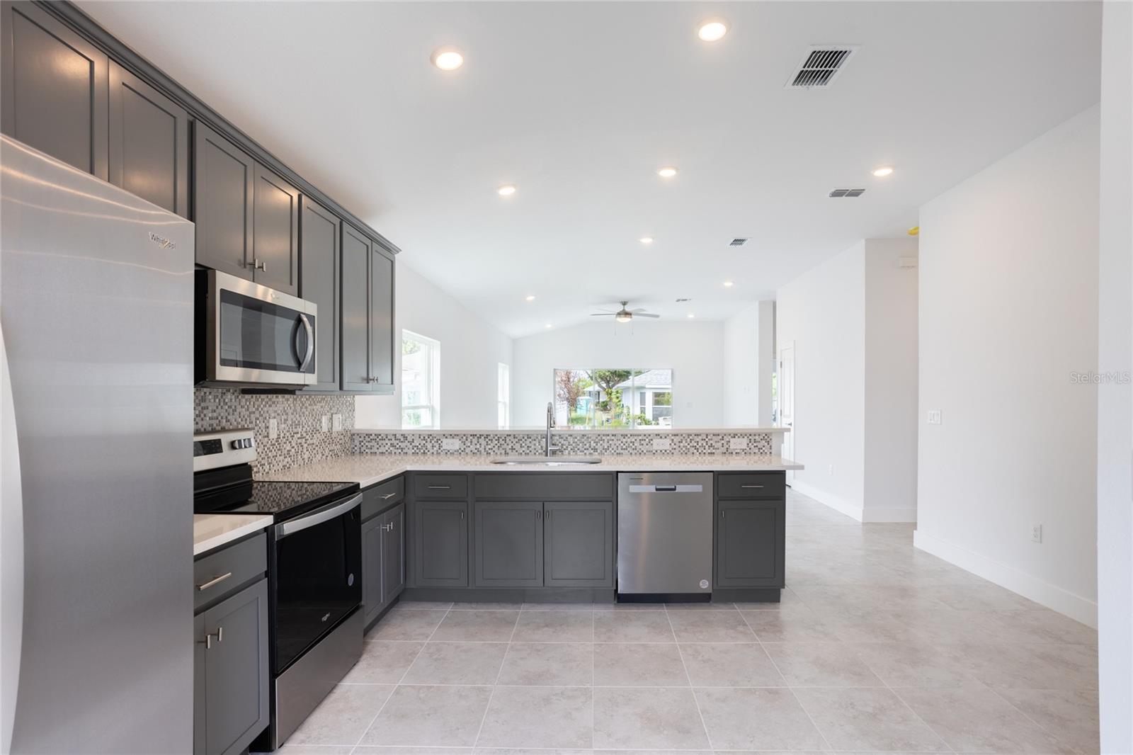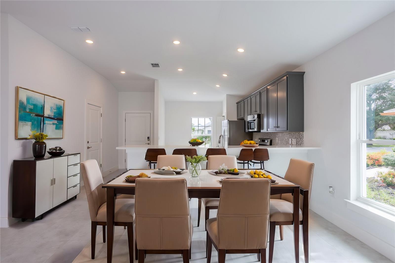 ***NEW CONSTRUCTION, NO WAIT, MOVE IN READY!*** Elevate your lifestyle with the opulence of the Anna Maria floorplan presented by Carpenter Homes—a masterpiece within the Florida Living Series, certified by the Florida Green Building Coalition (FGBC). This home features 3 bedrooms and 2 full bathrooms. This dream home is designed and built to immerse you in luxury. As you enter, a beautiful kitchen welcomes you with an expansive, oversized island that seamlessly flows into the living and dining area. The finesse of soft-close, Shaker 42" Graphite cabinets, upgraded Fresh Linens 3CM quartz countertops, and Bliss Glass/Stone Iceland Mosaic Tile kitchen backsplash add a functional touch of luxury to the kitchen. Kitchen upgrades include a Moen Sleek chrome kitchen faucet, garbage disposal, and sleek stainless steel energy efficient appliances. This home exudes sophistication with a vaulted ceiling and 3 panel 9 foot sliding glass doors! Additionally, Carpenter Homes provides an upgraded brushed nickel lighting package and a vanity fixture in 2nd bathroom, accenting the overall lighting design. Each bedroom and the great room feature 52" brushed nickel ceiling fans, complemented by an upgraded SEER2 HVAC system to keep you cool and comfortable in the Florida weather. Complimenting the expansive living area is Magnisi 18"x18" white ceramic tile flooring. The Owner's suite offers a luxurious retreat, featuring a shower adorned with 4x16” Anatolia Soho white tiles, complemented by Anatolia Zen Flat Pebble vertical listello accents, and a spacious walk-in closet. The Owner's bathroom features a striking 72x36” contemporary mirror with front and back LED lighting, anti-fog technology, and customizable color settings with a dimmer for the ultimate in modern sophistication. The home boasts Magnisi white 8x12” upgraded tiled walls in the second bath/shower, Fresh Linens 3CM quartz vanity tops, and Moen Genta LX chrome faucets. The ampleness of this home continues with a utility room, and thoughtful additions such as energy-efficient R-4.1 insulation on concrete exterior walls, Taexx tubes for pest control, and corrugated metal hurricane shutters for every window. The Florida friendly landscaped yard is complemented by an irrigation system with rain sensor to help maximize efficiency. This secure community not only enhances the outdoor space's sophistication but also creates an ideal setting for a range of family activities, turning the backyard into a retreat for intimate family gatherings and treasured moments. The expansive 2-car garage, complete with garage door opener and two remotes, not only provides ample space for your everyday needs but also ensures the utmost convenience and versatility for all your storage and parking requirements. Step into a world where extravagance meets eco-conscious living—your forever home awaits, a testament to timeless elegance and modern sustainability. COMMUNITY: Residents enjoy members-only access to the Oak Hollow Recreation Center which includes an exercise room, table tennis, heated swimming pool (no lifeguard), children's playground, tennis court, pickleball, bocce ball court, horseshoes, corn-hole, billiards room, basketball court, picnic tables shaded by beautiful old oak trees, and a lending library. Residents also enjoy a vibrant social calendar filled with community events year-round. Available to view anytime.