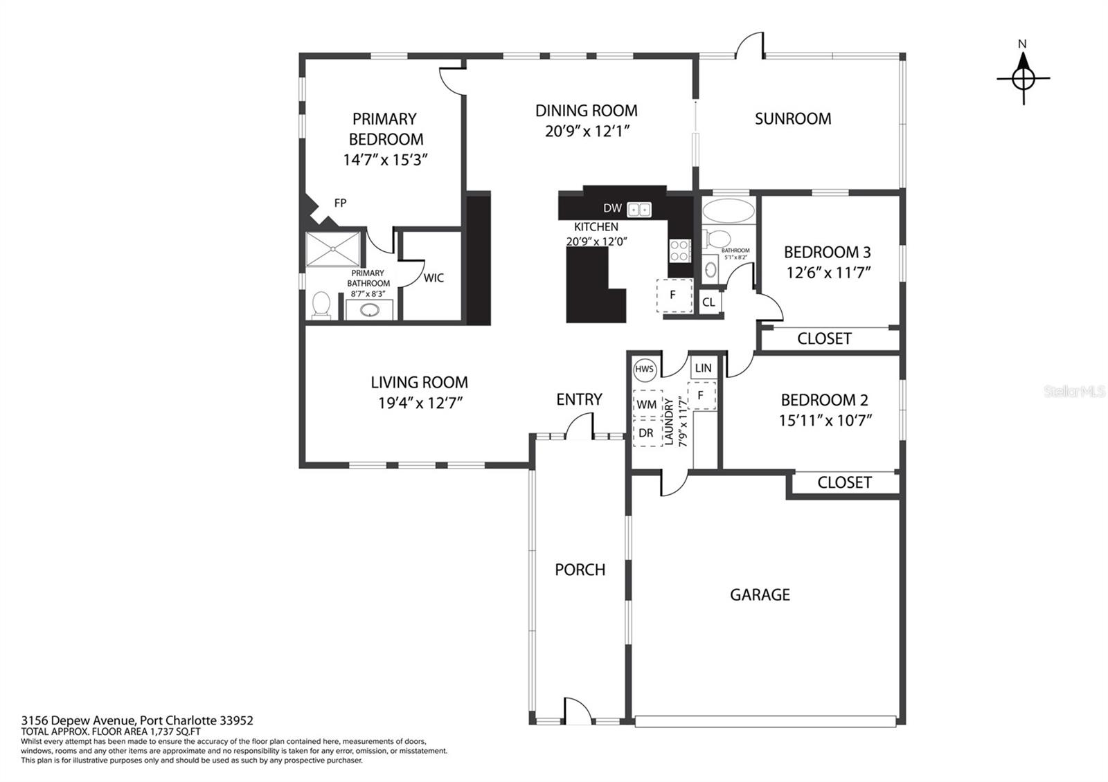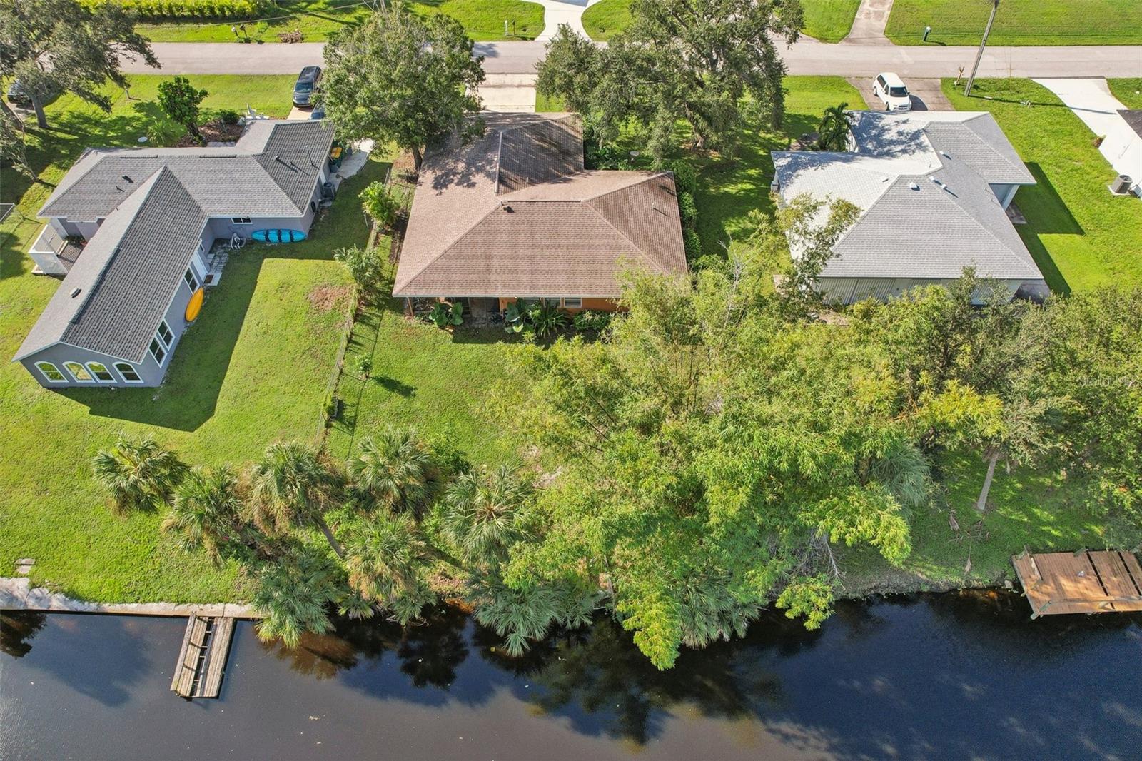 You won't want to miss this stunning 3-bedroom, 2-bath, 2-car garage waterfront canal home! It boasts a brand-new screened front porch, perfect for relaxing. Inside, you'll find beautiful tile flooring throughout, a custom kitchen with a large island, snack bar, solid wood cabinets, granite countertops, and a glass tile backsplash. The home features both living and family rooms, with a slider to the screened lanai. Spacious bedrooms, ceiling fans throughout, and custom tile showers in the bathrooms. The fenced yard offers serene water views on a navigable freshwater canal. The garage is vented for AC, which makes the total area under air 2360 sf. No HOA or CDD fees, plus great curb appeal with tropical plants and a large shade tree! This is a must-see!