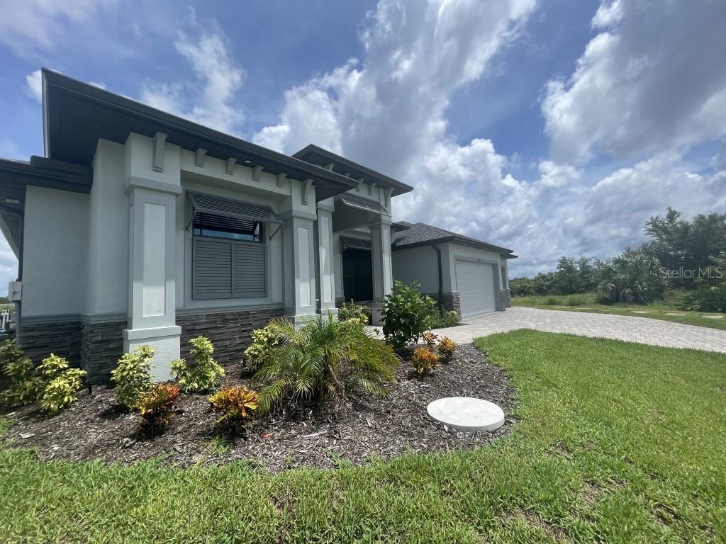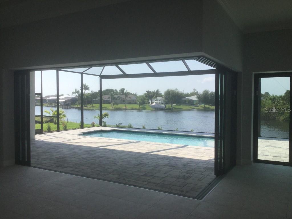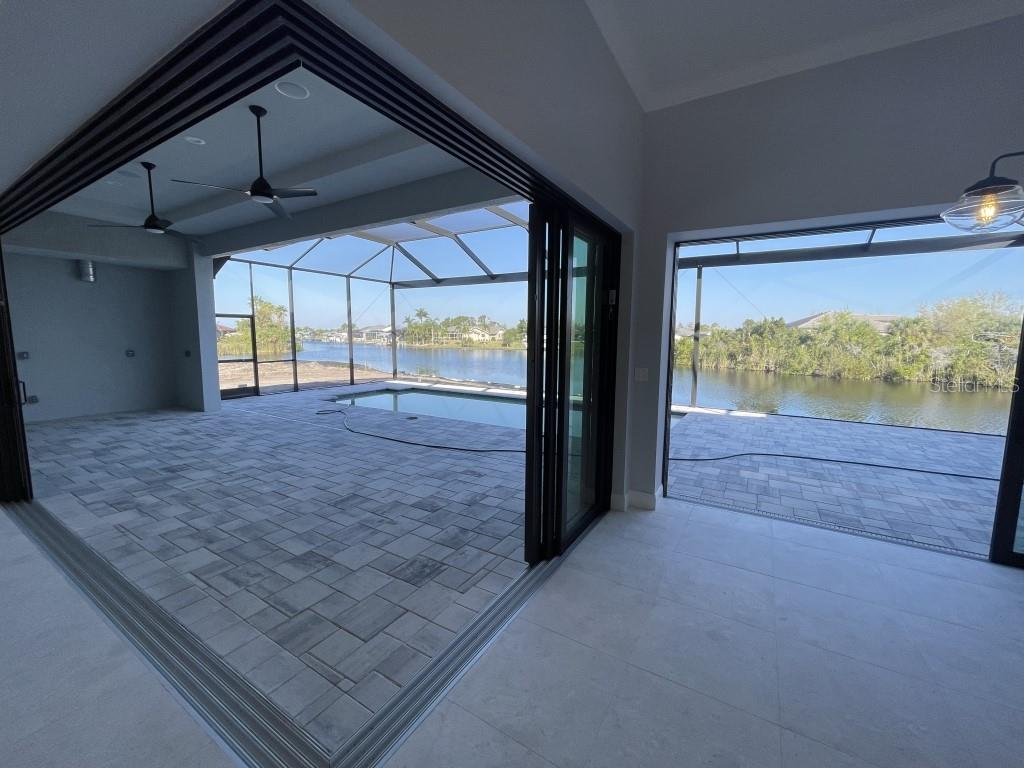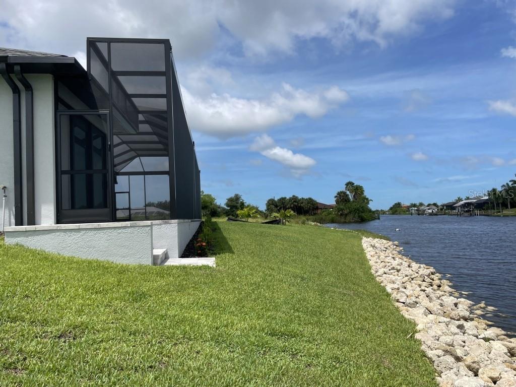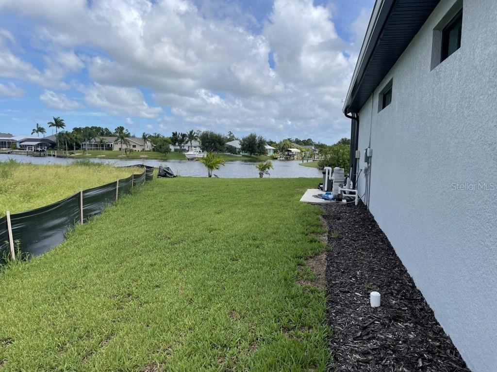 **NEW CONSTRUCTION **WATERFRONT** POOL HOME ** Custom built home with 3 bedrooms, den/office, 2 bathrooms and a 3 car garage with epoxy floor finish. The home is built on a oversized tip lot with magnificent water views of 4 intersecting canals and northwest exposure for great sunset viewing without blinding sun glare. The home is located in the upscale boating community of South Gulf Cove with access to Charlotte Harbor, Gulf of Mexico, Boca Grande and surrounding islands. Enjoy boating and fishing right from your very own backyard. This gorgeous home is for the distinguished buyer and features an open design floor plan with many upgrades. The gourmet kitchen is tastefully appointed with beautiful upgraded Dolomite countertops, (has the appearance of Marble, but harder and more durable) extra large island with breakfast bar, 42-inch upper cabinets with under cabinet lighting, stainless steel appliances, stunning cabinet hood vent, 36-inch cook top, built in oven/microwave unit, stainless steel farm sink, oversized pantry, large breakfast nook and more. Beautiful 24"X 24" Porcelain tile throughout the house with tray ceilings and crown molding in the living room, master bedroom, guest bedroom and den/office. The laundry room features a sink, wall cabinets, separate Dolomite folding counter and linen closet. Ceiling height in living room and kitchen is 11' 4", den/office 12'-4", bedrooms and laundry room area 9'-4". The home features Low E hurricane impact windows and doors, 0-degree sliders in the living room giving you an unobstructed view over the pool and waterway along with pocket sliders in the breakfast area, guest bedroom and master bedroom. All interior doors are 8' height swing doors or pocket doors (no bi-fold doors). Master suite features two large walk-in closets, linen closet, large vanity with double sink, six-foot free-standing tub, Dolomite countertops, a beautiful tiled walk-in shower with bench seat, a rain head and wall/handheld shower head. The home features energy efficient upgraded open cell foam insulation in the attic area, conditioned space for the air handler above the garage and foam insulation in the block walls. The home has upgraded wiring which includes interlock receptacle for generator,(just need to plug your generator in) receptacle for electric car, whole house surge protector, living room surround sound and lanai speakers. The lanai is very spacious featuring beautiful concrete pavers, outdoor shower, oversized pool with sun shelf, water bubbler feature, various color lighting schemes, bench seating and pool cage with picture frame viewing windows. Lanai area has been mechanically roughed for a summer kitchen including plumbing, electric, cable and venting for a grill. The home is professionally landscaped with St Augustine/floratam grass, planting beds, irrigation, riprap coral stone border along the water's edge, installed water and electric ready for future dock and a concrete paver driveway and walkways. South Gulf Cove community offers a public boat ramp, several parks and a nearby marina. Golf courses and world-class fishing are right out your back door. South Gulf Cove is only minutes to beautiful Southwest Florida beaches in Boca Grande and Manasota Key.
