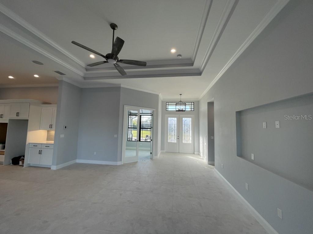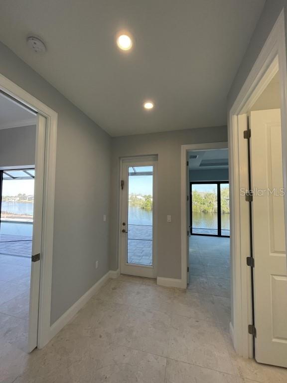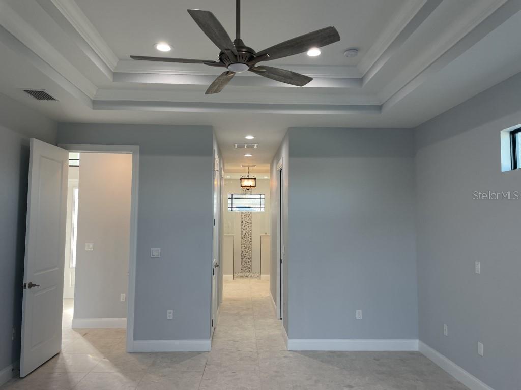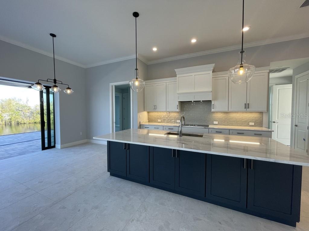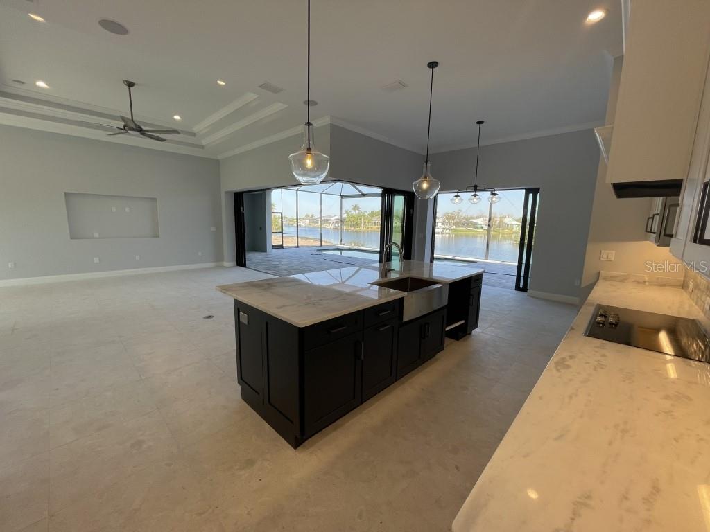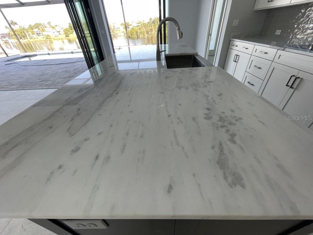 **NEW CONSTRUCTION **WATERFRONT** POOL HOME ** Custom built home with 3 bedrooms, den/office, 2 bathrooms and a 3 car garage with epoxy floor finish. The home is built on a oversized tip lot with magnificent water views of 4 intersecting canals and northwest exposure for great sunset viewing without blinding sun glare. The home is located in the upscale boating community of South Gulf Cove with access to Charlotte Harbor, Gulf of Mexico, Boca Grande and surrounding islands. Enjoy boating and fishing right from your very own backyard. This gorgeous home is for the distinguished buyer and features an open design floor plan with many upgrades. The gourmet kitchen is tastefully appointed with beautiful upgraded Dolomite countertops, (has the appearance of Marble, but harder and more durable) extra large island with breakfast bar, 42-inch upper cabinets with under cabinet lighting, stainless steel appliances, stunning cabinet hood vent, 36-inch cook top, built in oven/microwave unit, stainless steel farm sink, oversized pantry, large breakfast nook and more. Beautiful 24"X 24" Porcelain tile throughout the house with tray ceilings and crown molding in the living room, master bedroom, guest bedroom and den/office. The laundry room features a sink, wall cabinets, separate Dolomite folding counter and linen closet. Ceiling height in living room and kitchen is 11' 4", den/office 12'-4", bedrooms and laundry room area 9'-4". The home features Low E hurricane impact windows and doors, 0-degree sliders in the living room giving you an unobstructed view over the pool and waterway along with pocket sliders in the breakfast area, guest bedroom and master bedroom. All interior doors are 8' height swing doors or pocket doors (no bi-fold doors). Master suite features two large walk-in closets, linen closet, large vanity with double sink, six-foot free-standing tub, Dolomite countertops, a beautiful tiled walk-in shower with bench seat, a rain head and wall/handheld shower head. The home features energy efficient upgraded open cell foam insulation in the attic area, conditioned space for the air handler above the garage and foam insulation in the block walls. The home has upgraded wiring which includes interlock receptacle for generator,(just need to plug your generator in) receptacle for electric car, whole house surge protector, living room surround sound and lanai speakers. The lanai is very spacious featuring beautiful concrete pavers, outdoor shower, oversized pool with sun shelf, water bubbler feature, various color lighting schemes, bench seating and pool cage with picture frame viewing windows. Lanai area has been mechanically roughed for a summer kitchen including plumbing, electric, cable and venting for a grill. The home is professionally landscaped with St Augustine/floratam grass, planting beds, irrigation, riprap coral stone border along the water's edge, installed water and electric ready for future dock and a concrete paver driveway and walkways. South Gulf Cove community offers a public boat ramp, several parks and a nearby marina. Golf courses and world-class fishing are right out your back door. South Gulf Cove is only minutes to beautiful Southwest Florida beaches in Boca Grande and Manasota Key.