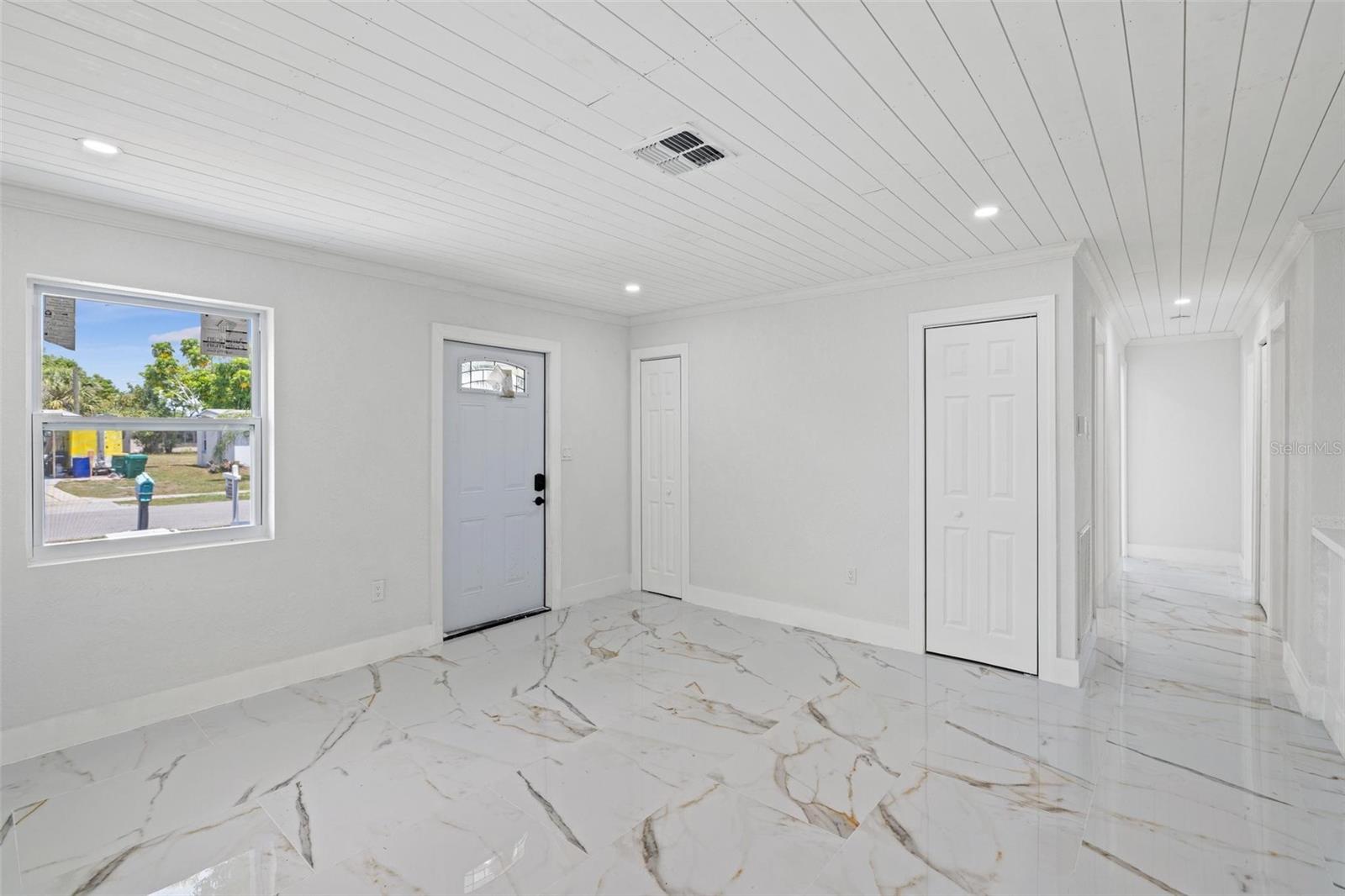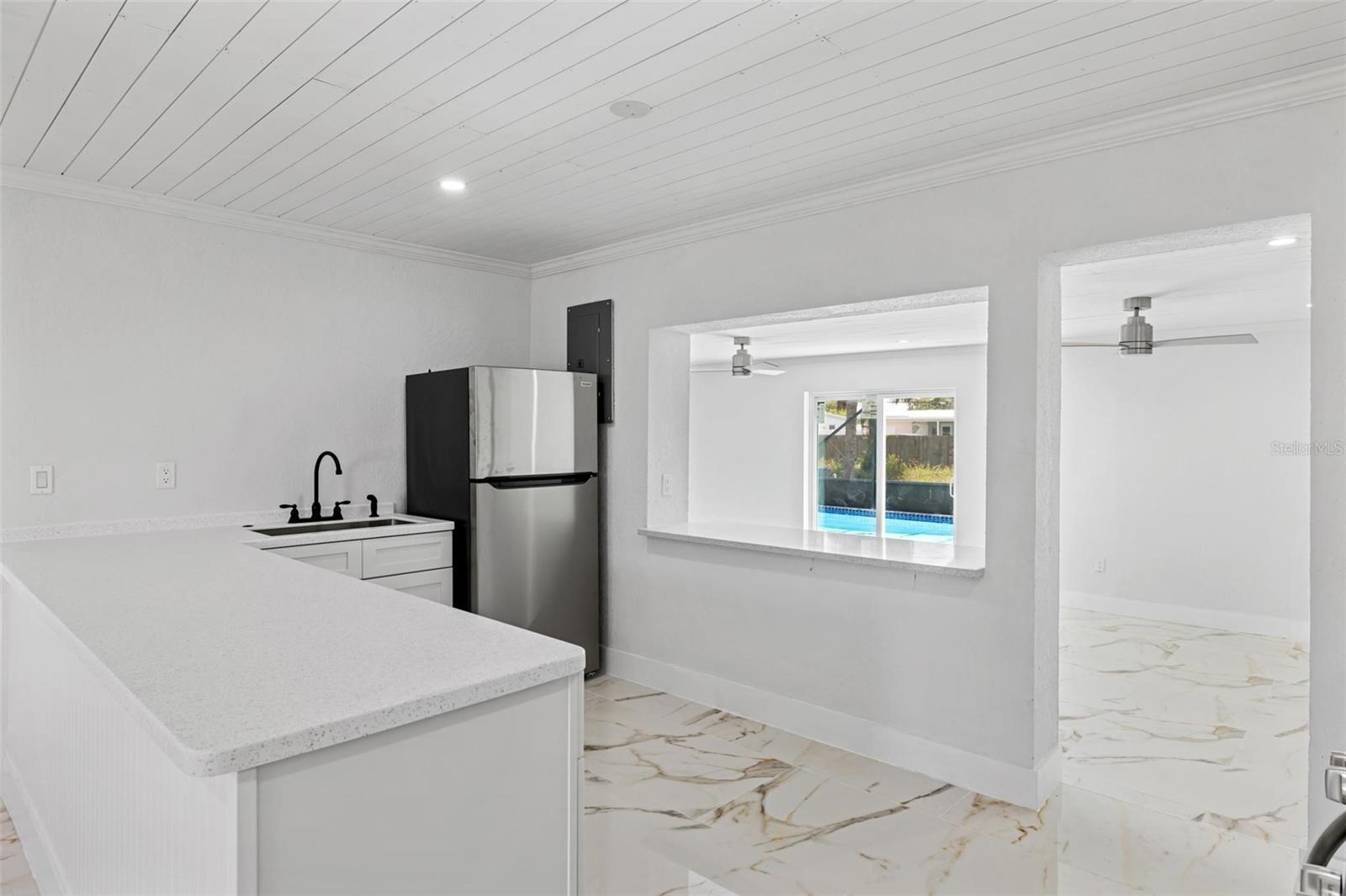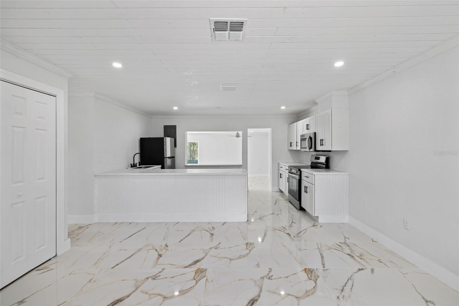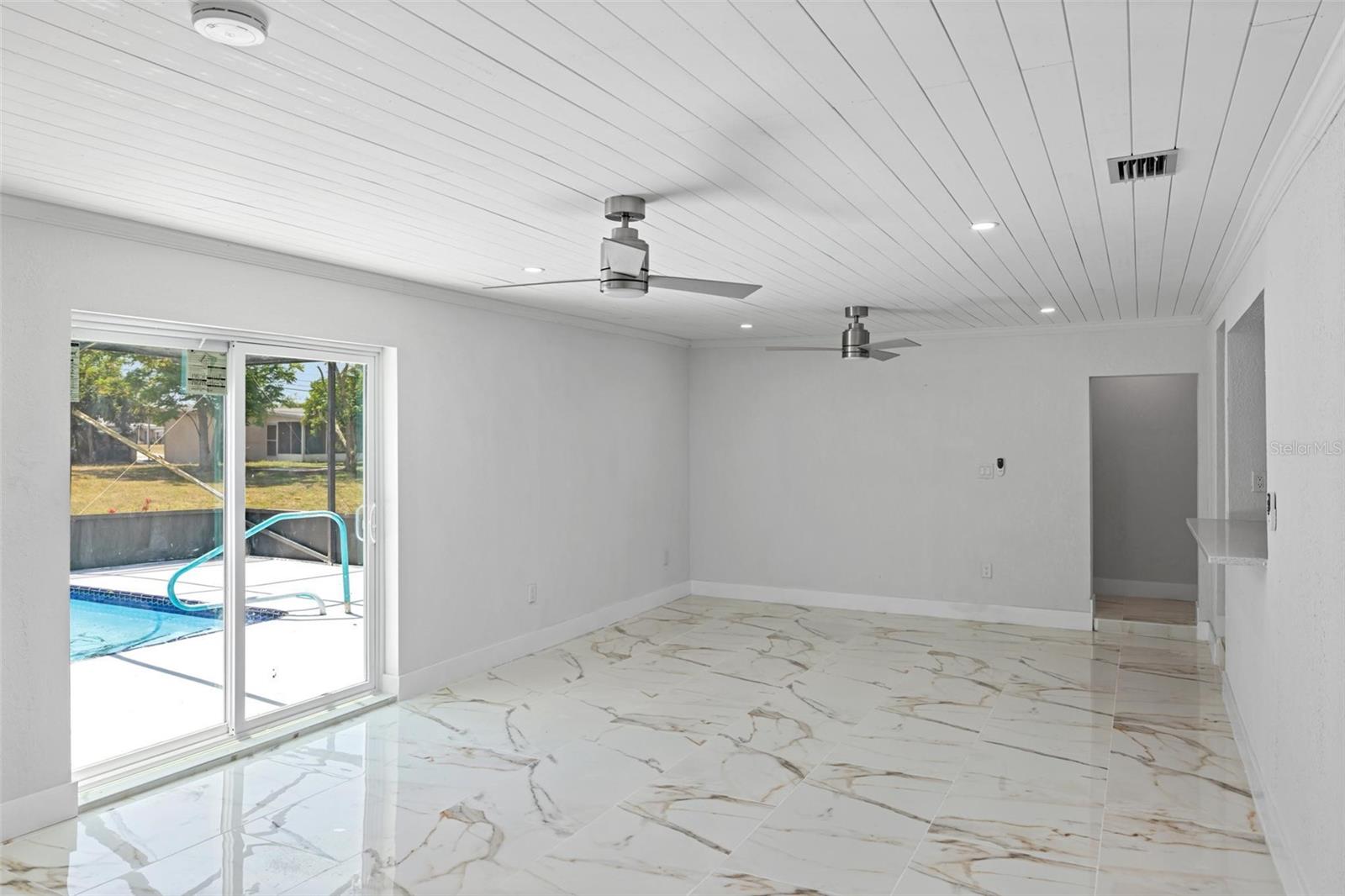 Step into this stunning renovated 4-bedroom, 2-bathroom pool home in the heart of Port Charlotte, FL. Spanning 1,868 sq ft, this property has been meticulously upgraded to offer a modern living experience. Enjoy peace of mind with a new roof, A/C system, hurricane-impact windows and doors, and an energy-efficient tankless water heater. The interior boasts exquisite 24 x 48 luxury porcelain tiles that extend throughout the entire home, enhancing its elegant appeal. The heart of the home, the kitchen, features new appliances and stylish cabinetry, perfect for culinary adventures. Bathrooms are transformed with luxurious fixtures, including motion-censored toilets, floor-to-ceiling tile, and walk-in showers, combining convenience with sophistication. The primary bedroom features its own ensuite bathroom and huge walk-in closet. Step outside to a refreshing enclosed pool, providing an ideal setting for relaxation and entertainment. Conveniently located in a non-flood zone and central to all that Port Charlotte has to offer, this home is a perfect blend of comfort, style, and security. Don’t miss the opportunity to own a piece of paradise!